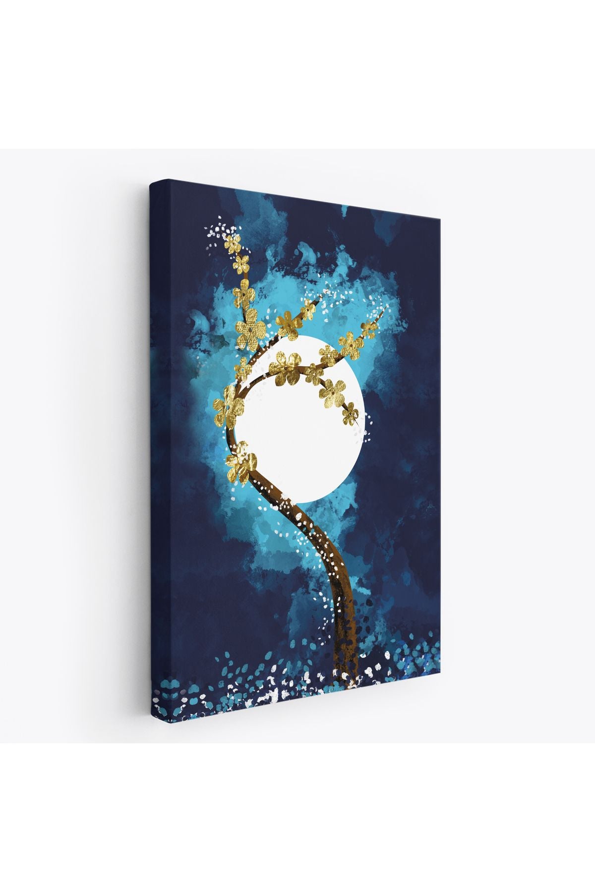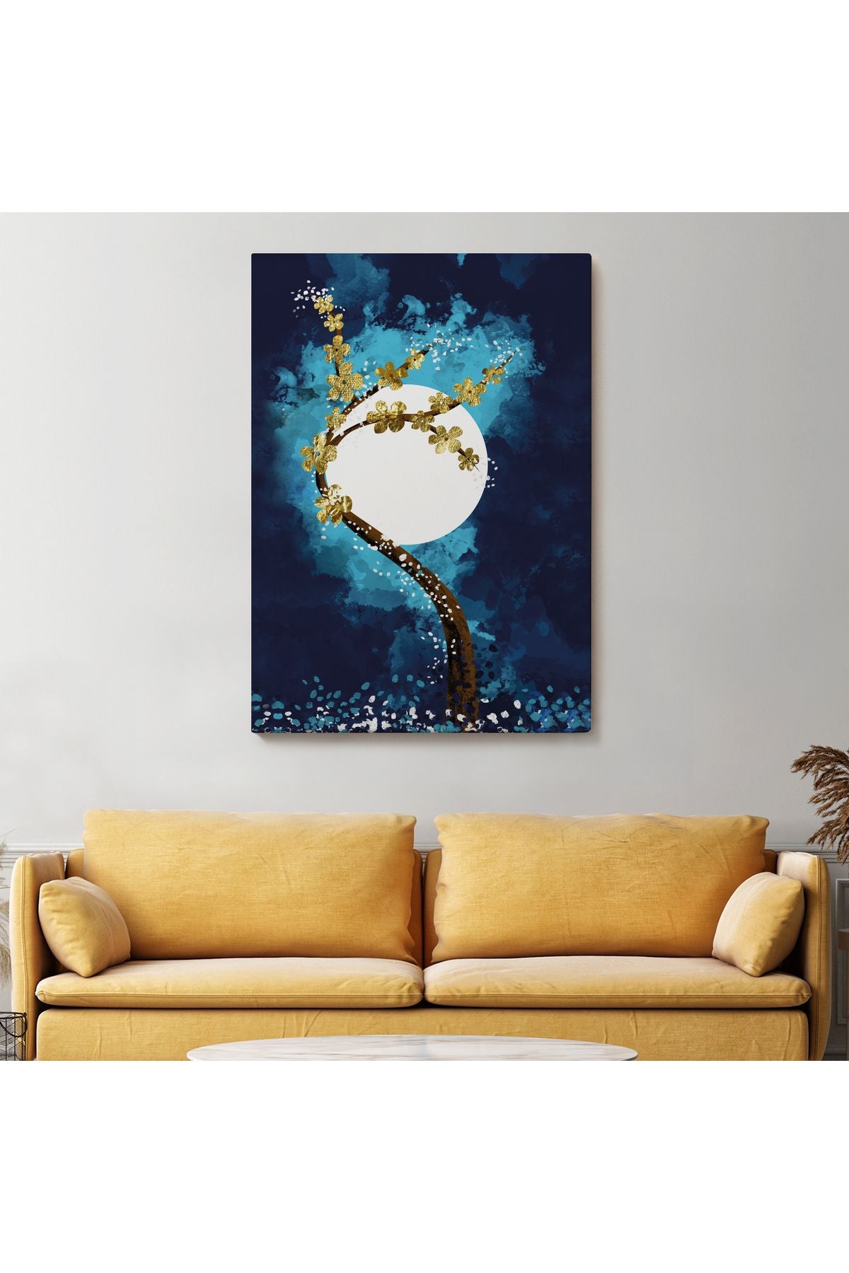Altın Çiçekli Ağaç ve Ve Ay Kanva Tablo, Soyut Çağdaş Sanat Örneği-4971
