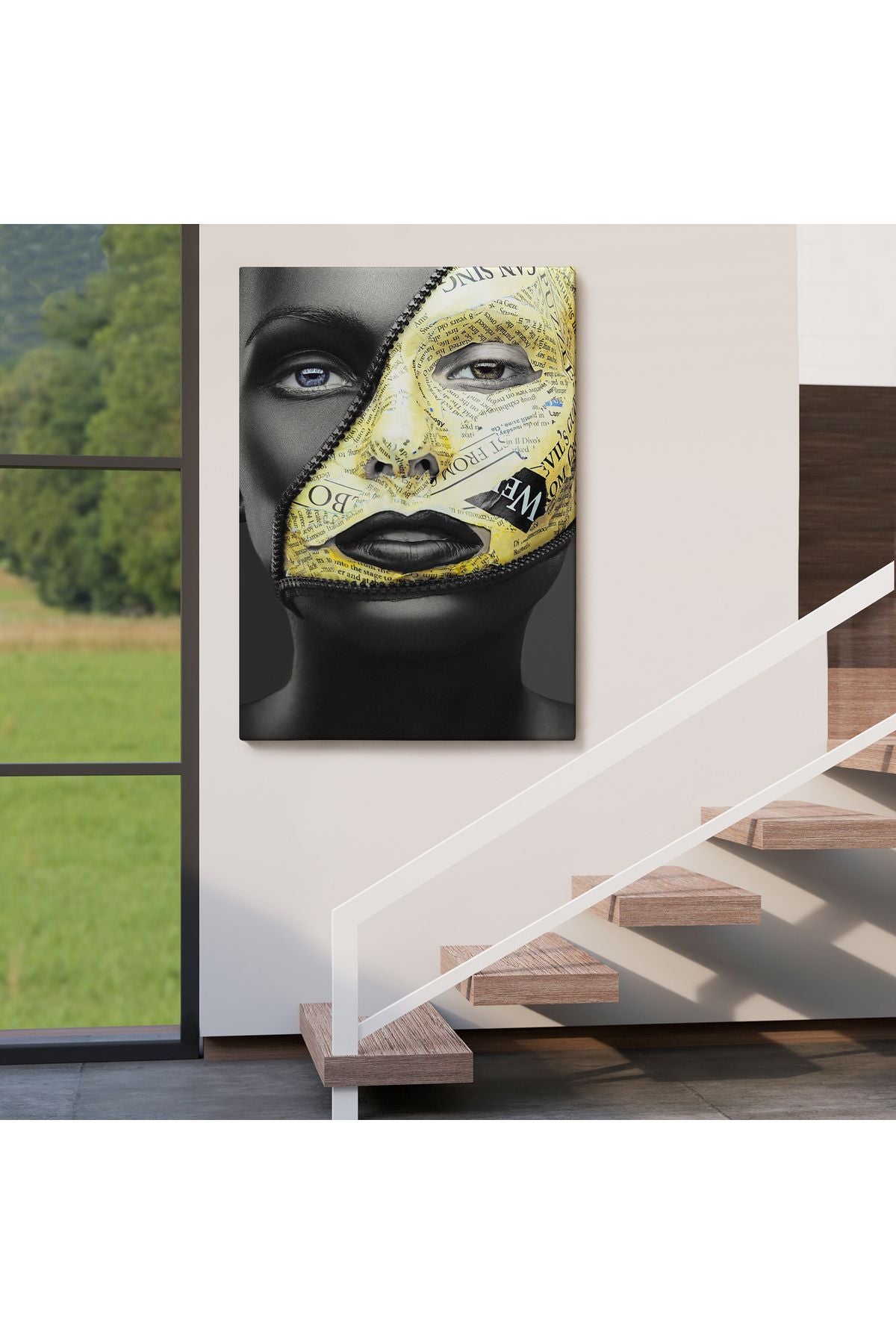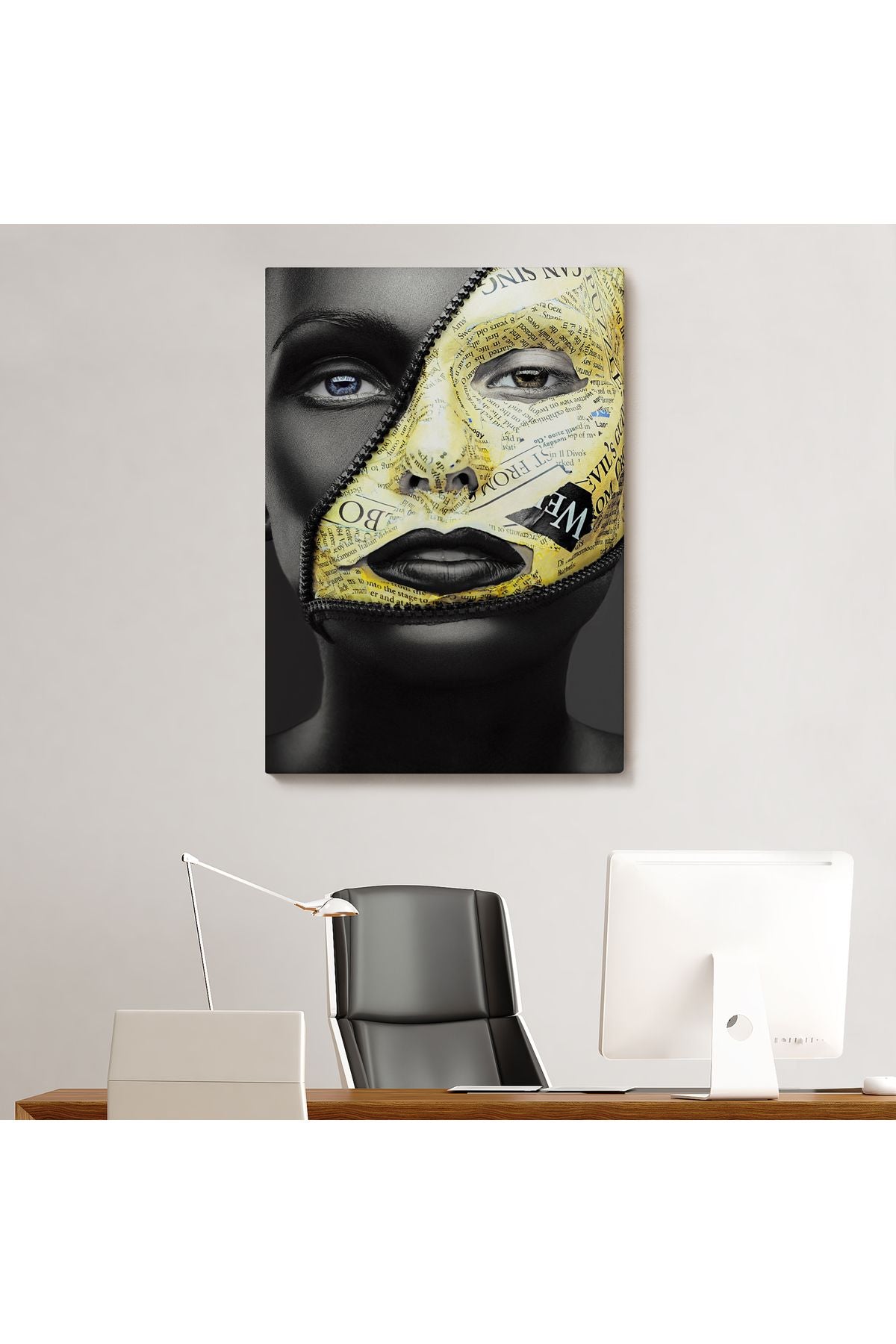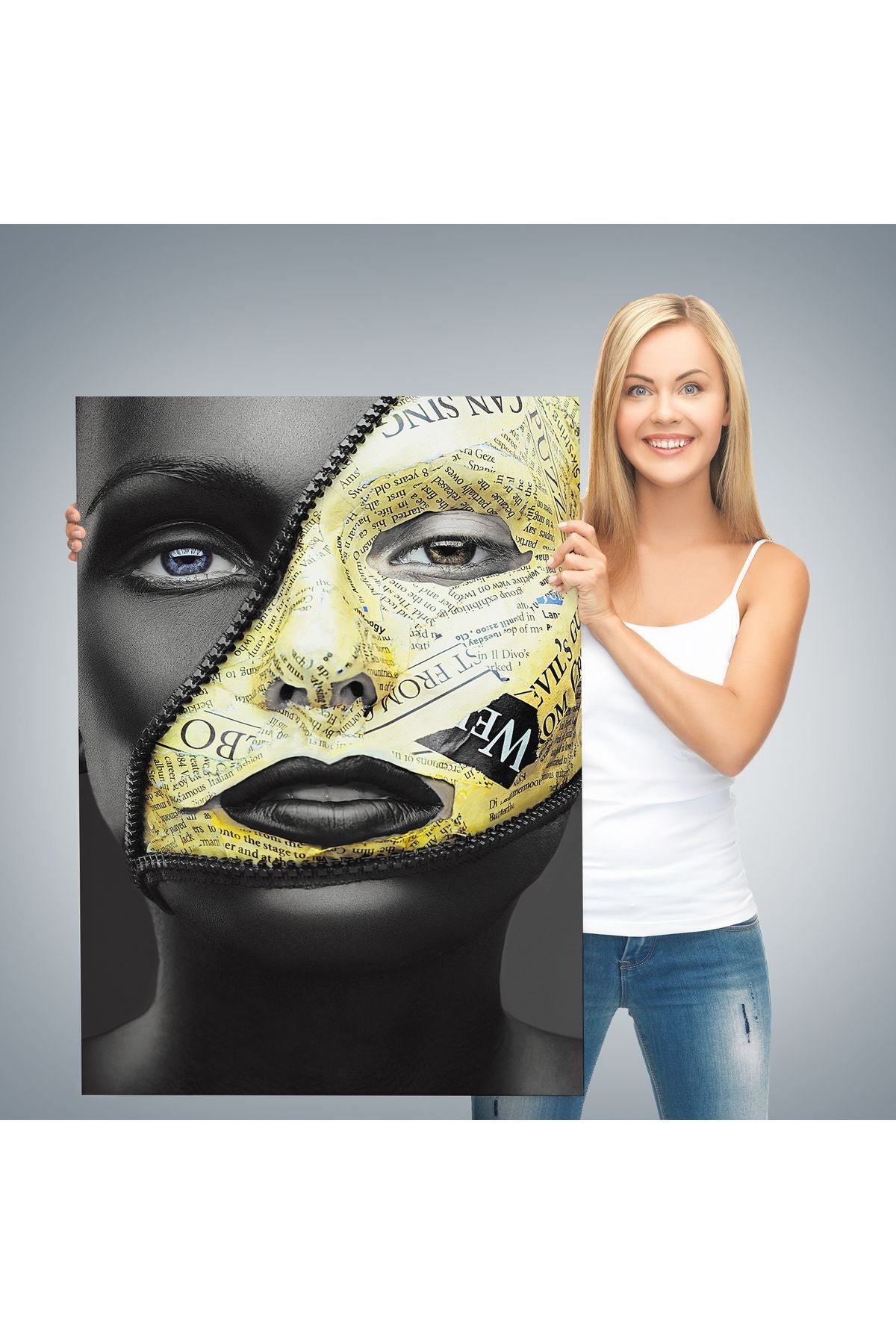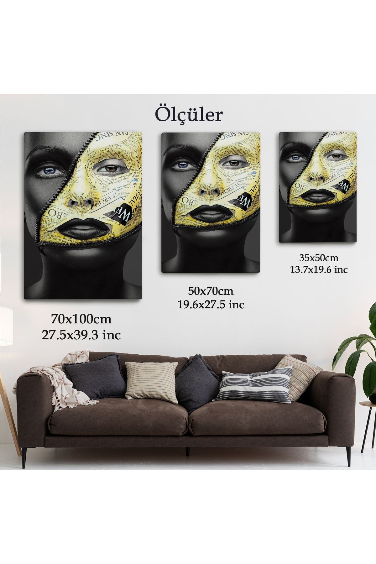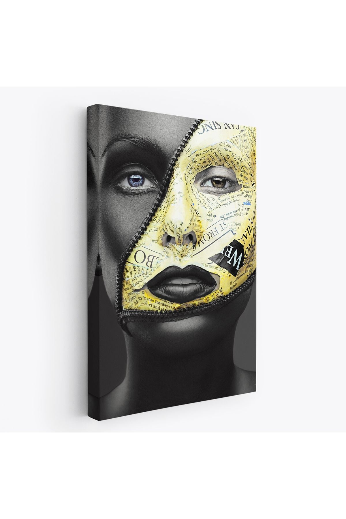 Fermuar Makyajlı Güzel Kızın Yakın Çekim Portresi Kanvas Tablo-4973