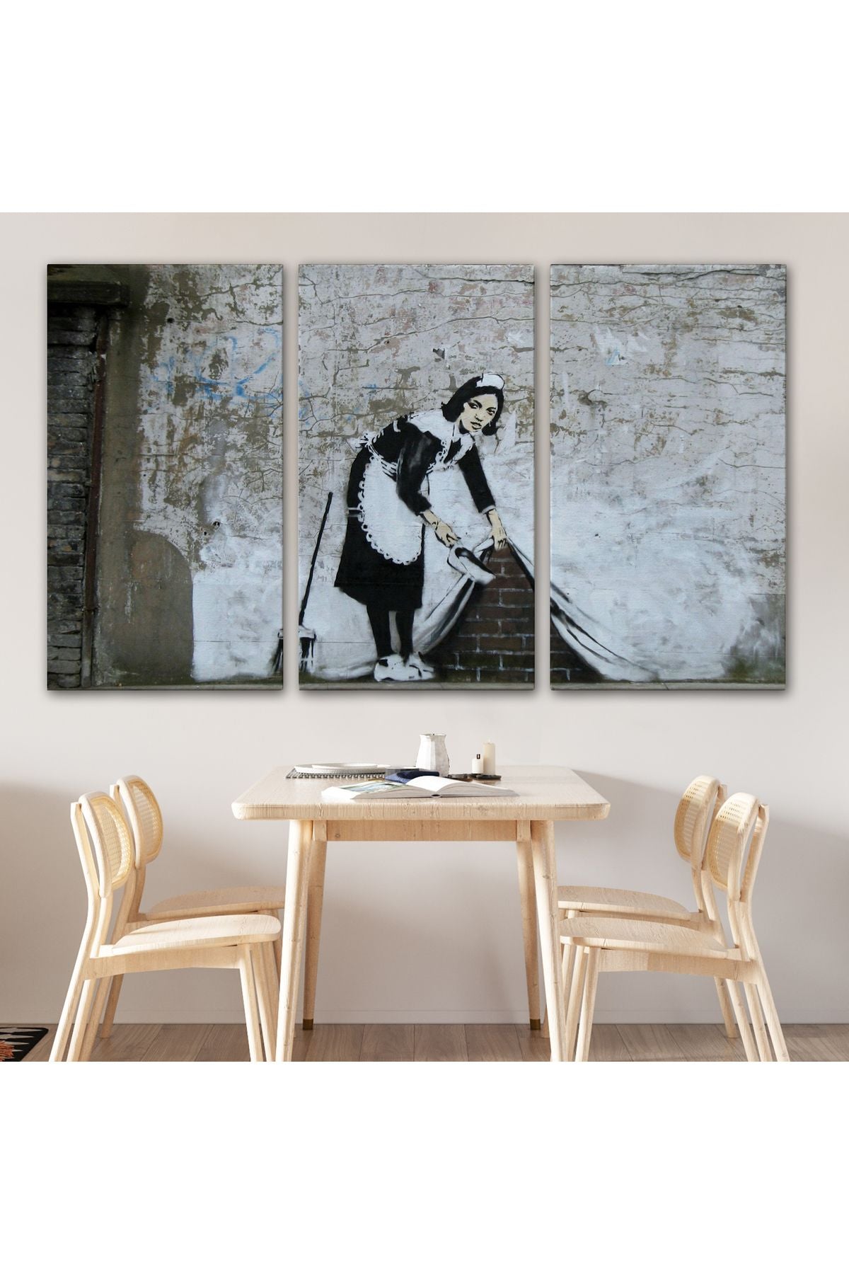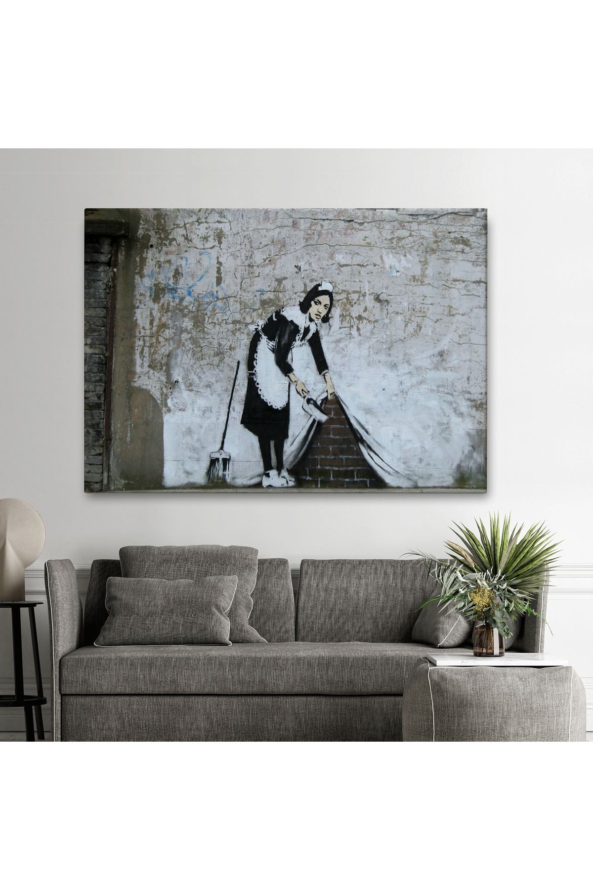 Banksy'nin Londra Sokaklarını Süpüren Temizlikçi Kadın Kanvas Tablosu-5004