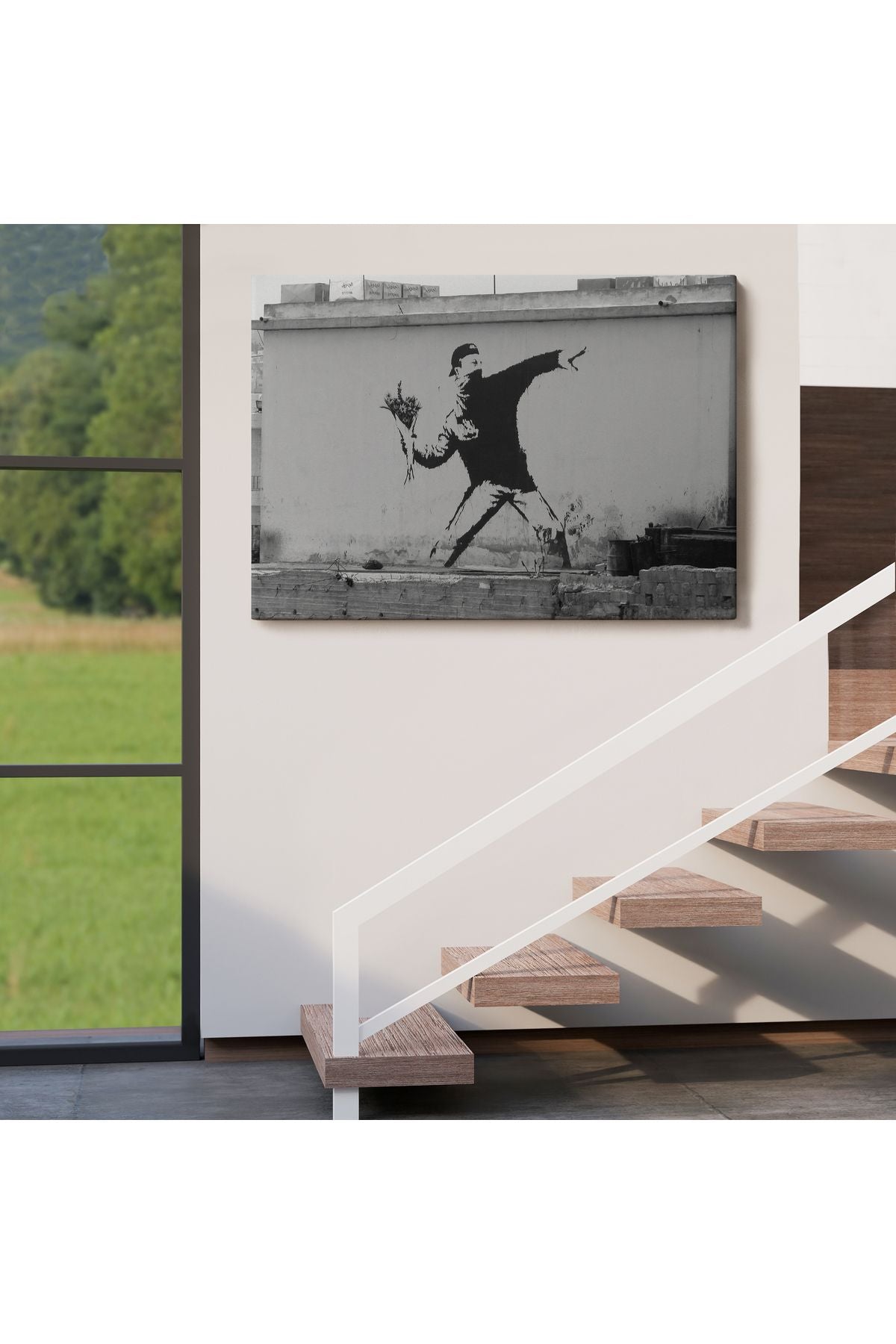 Bansky'nin Çiçek Atan Adam Eseri Kanvas Tablo-5014
