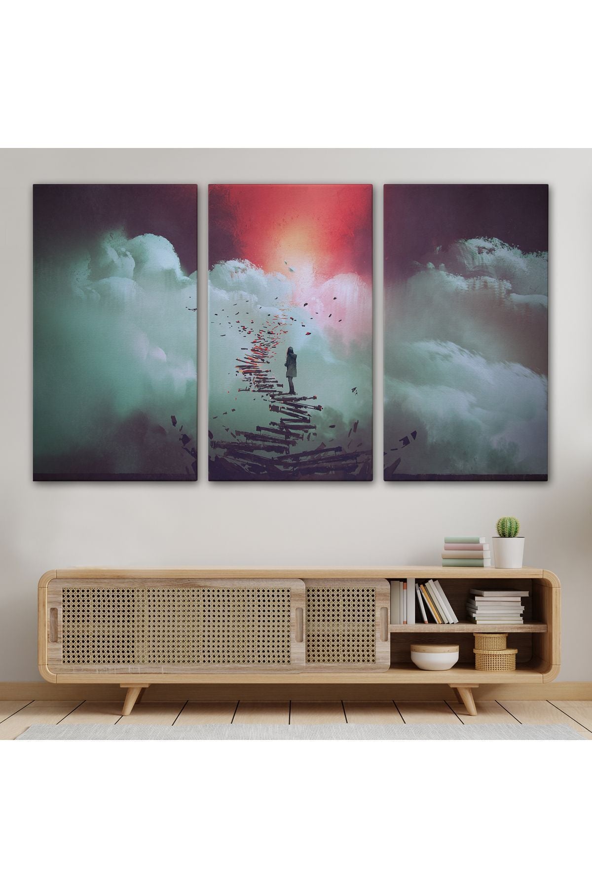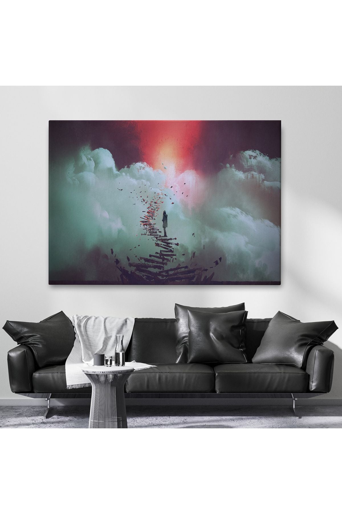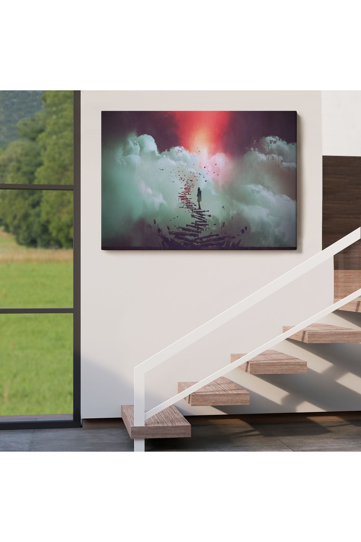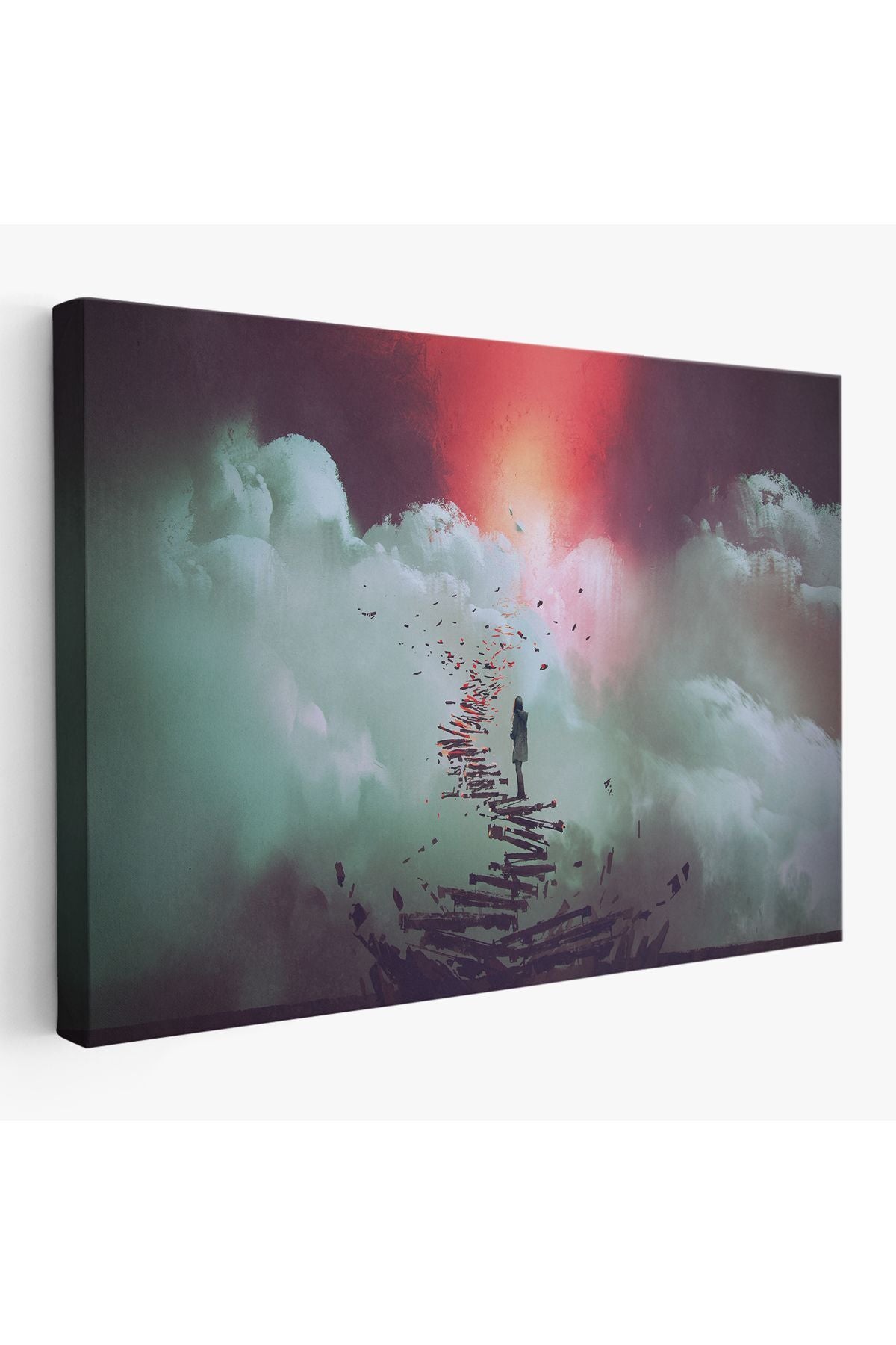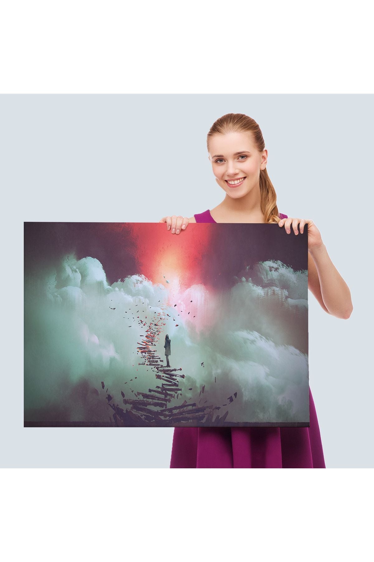 Gökyüzüne Giden Kırık Merdivenlerde Duran Genç Kadın Kanvas Tablosu-5029