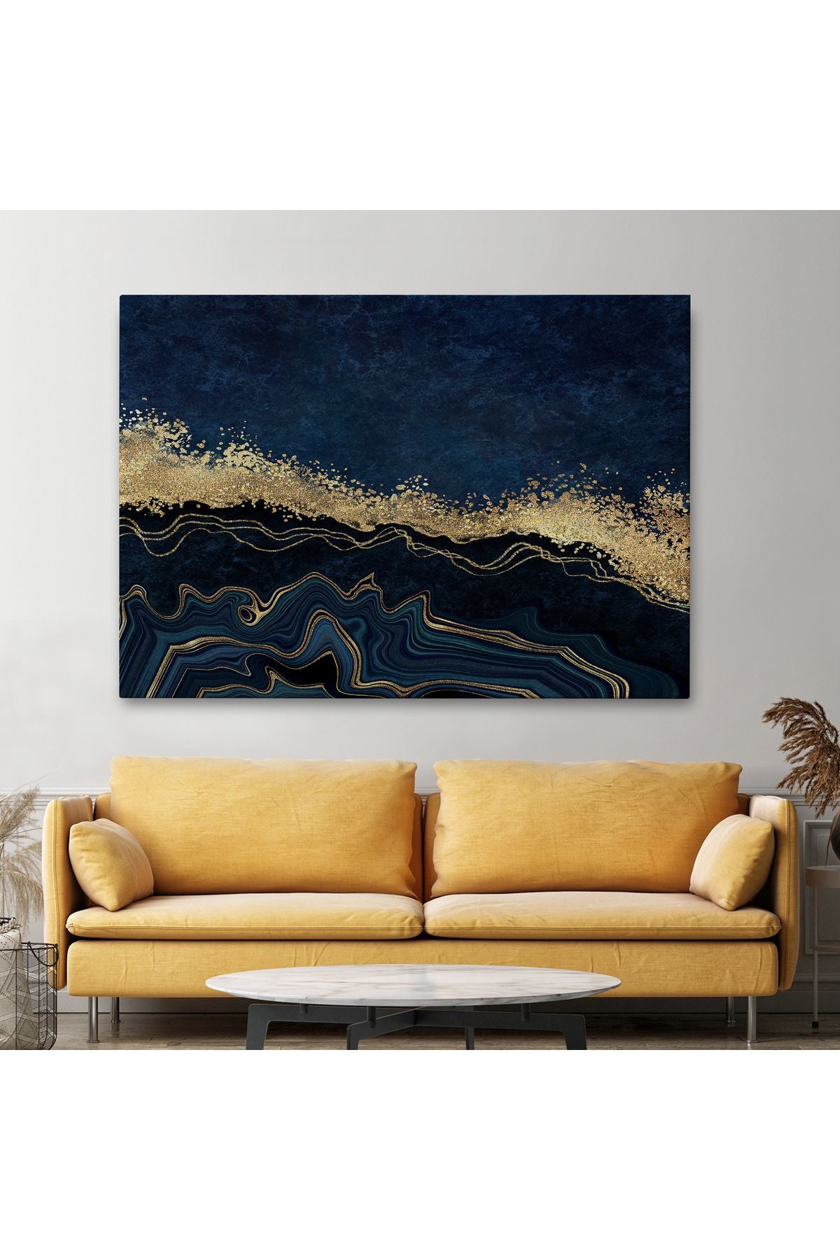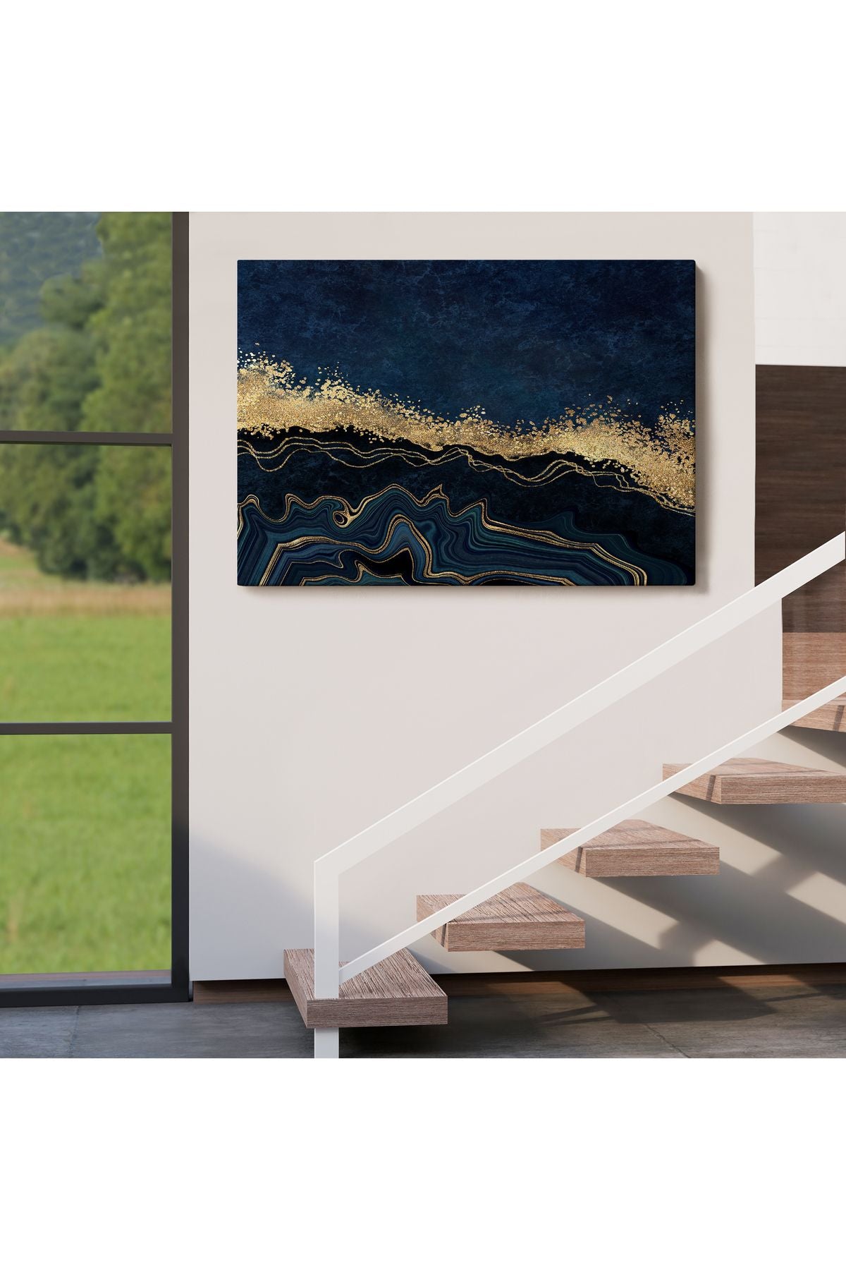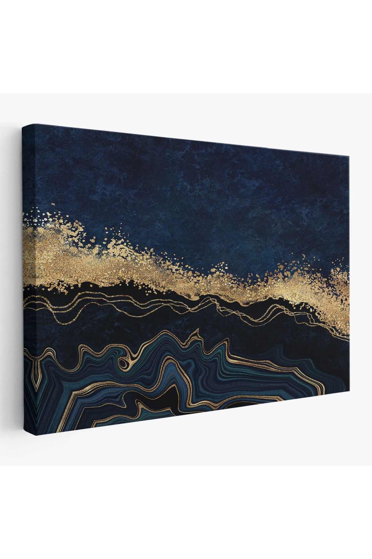 Mavi ve Gold'un Müthiş Uyumu Mermer Görünümlü Modern Kanvas Tablo-5062