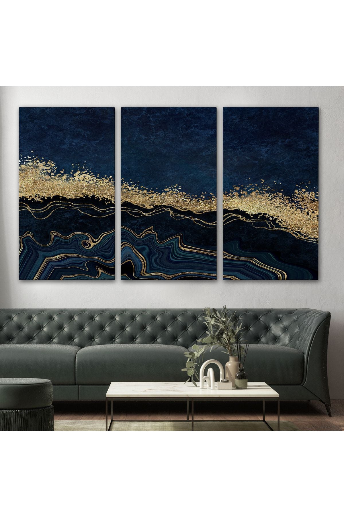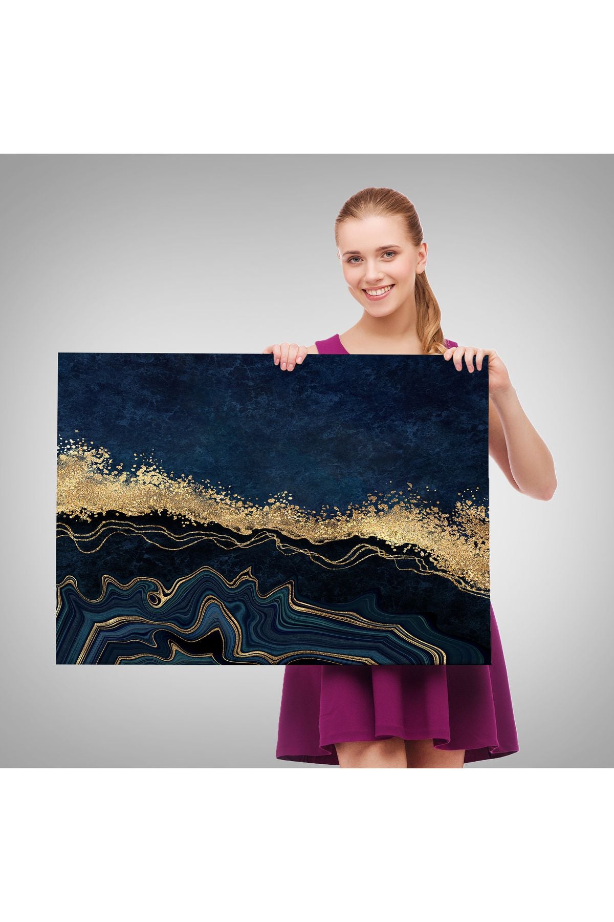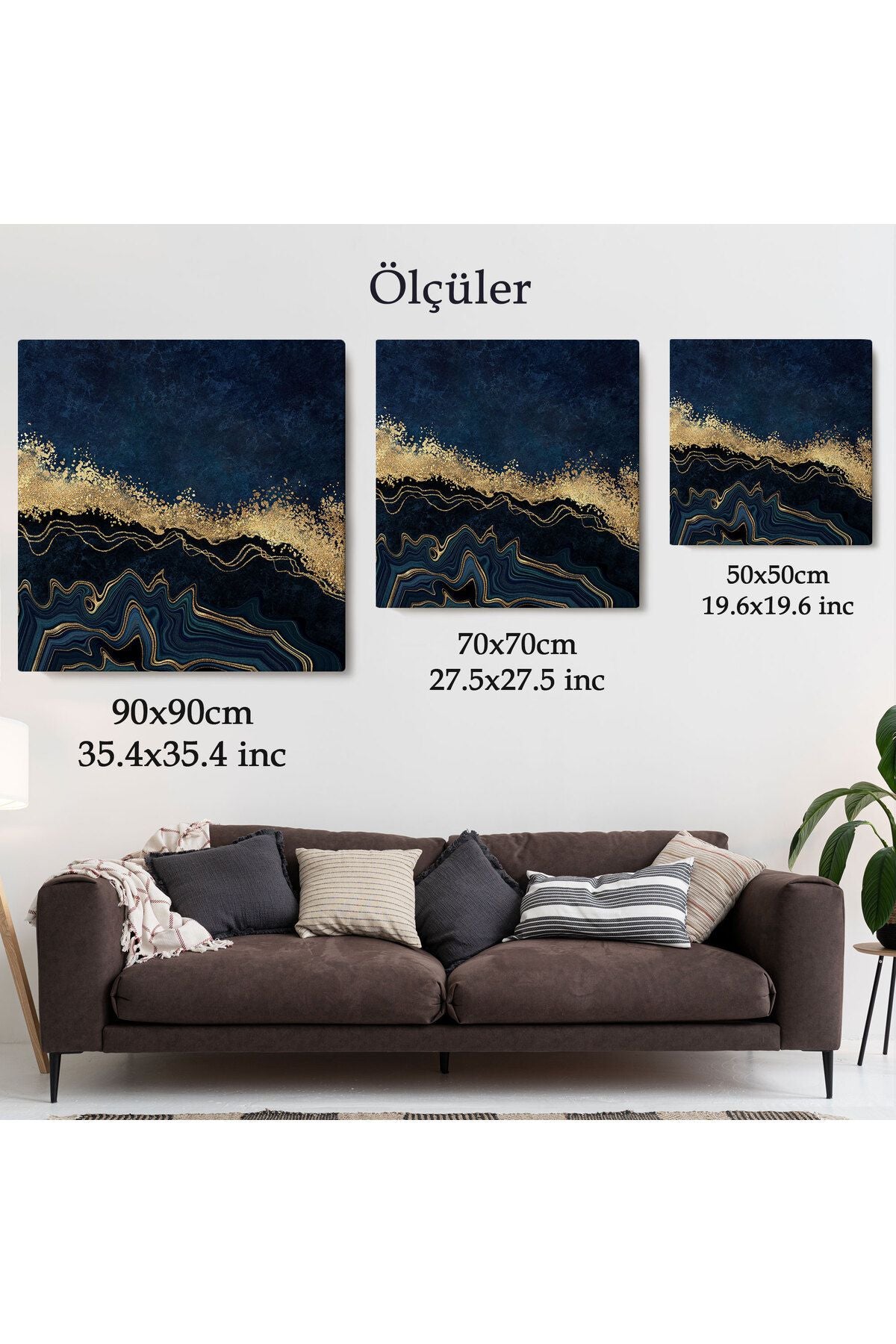 Mavi ve Gold'un Müthiş Uyumu Mermer Görünümlü Modern Kanvas Tablo-5062