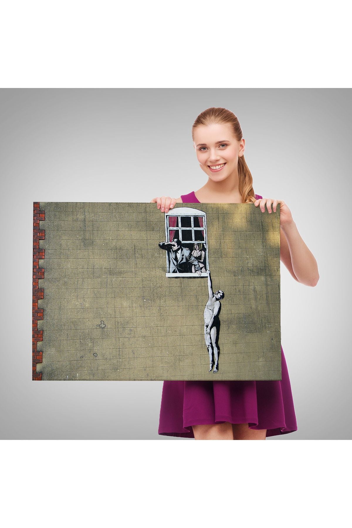 Banksy, Kocası Tarafından Basılan Kadın Kanvas Tablo-5093