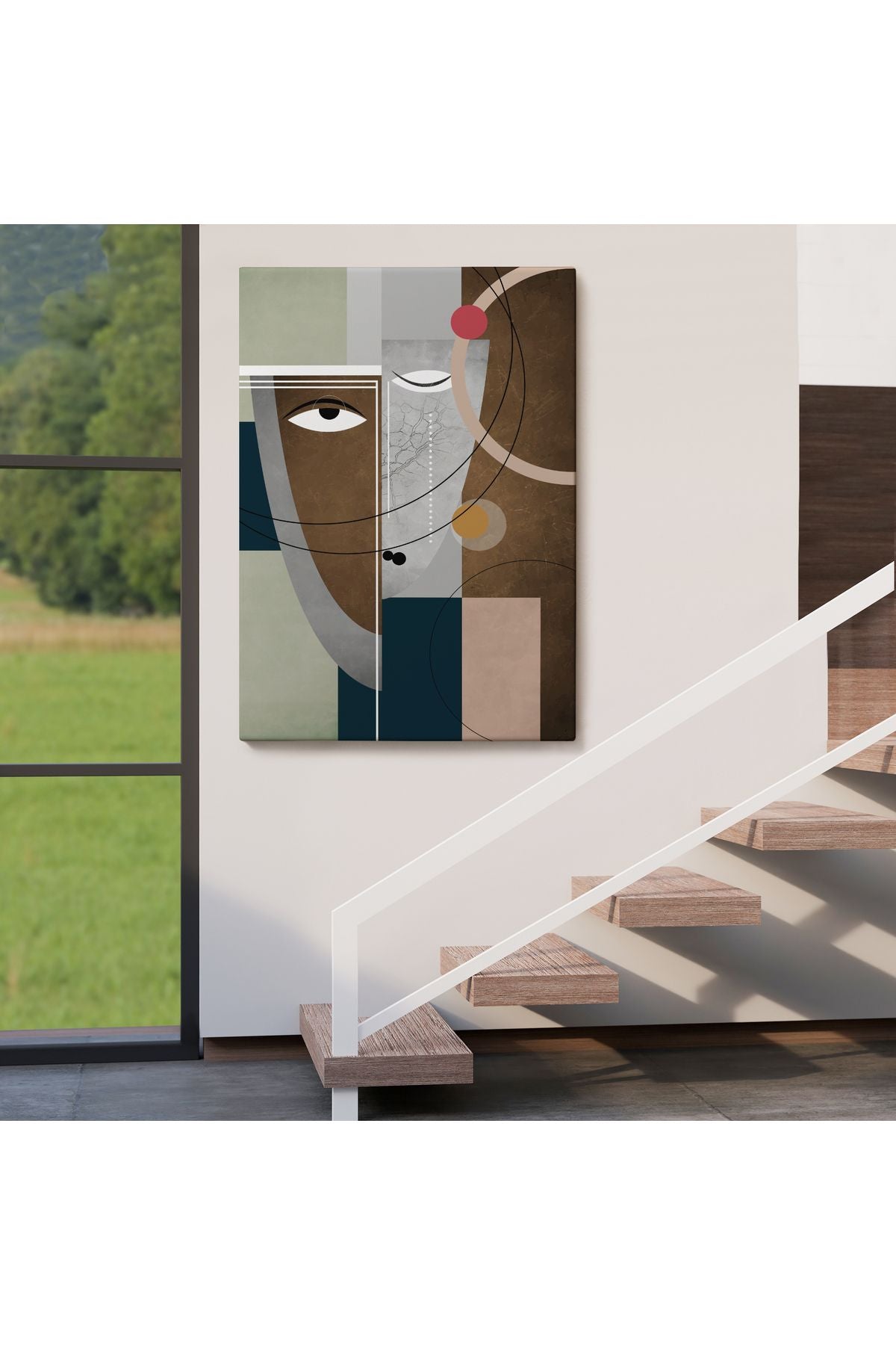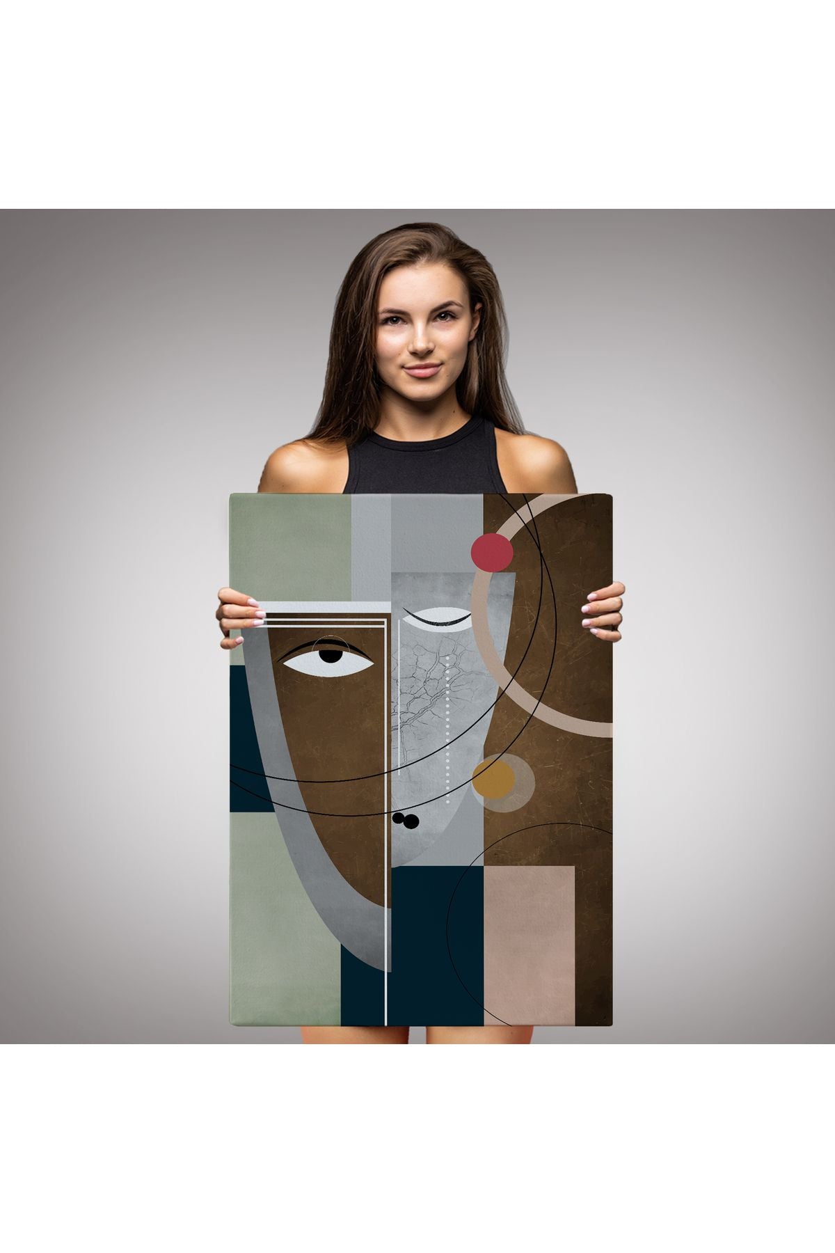 Modern Soyut Geometri El Boyaması Güzel Yüz Kanvas Duvar Tablosu-5112