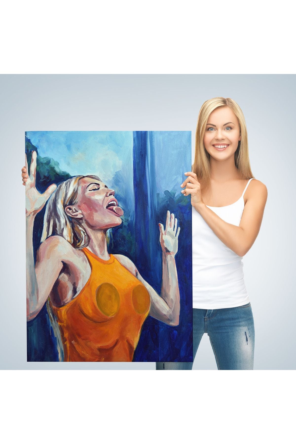 Camı Yalayan Kadın Kanvas Tablosu-5130