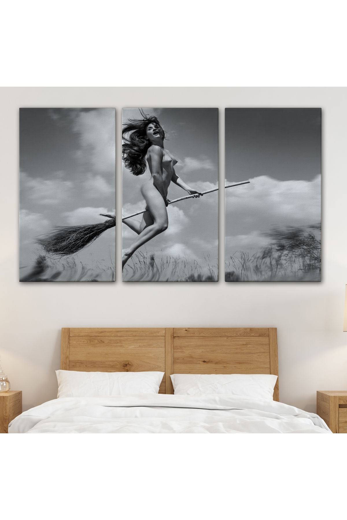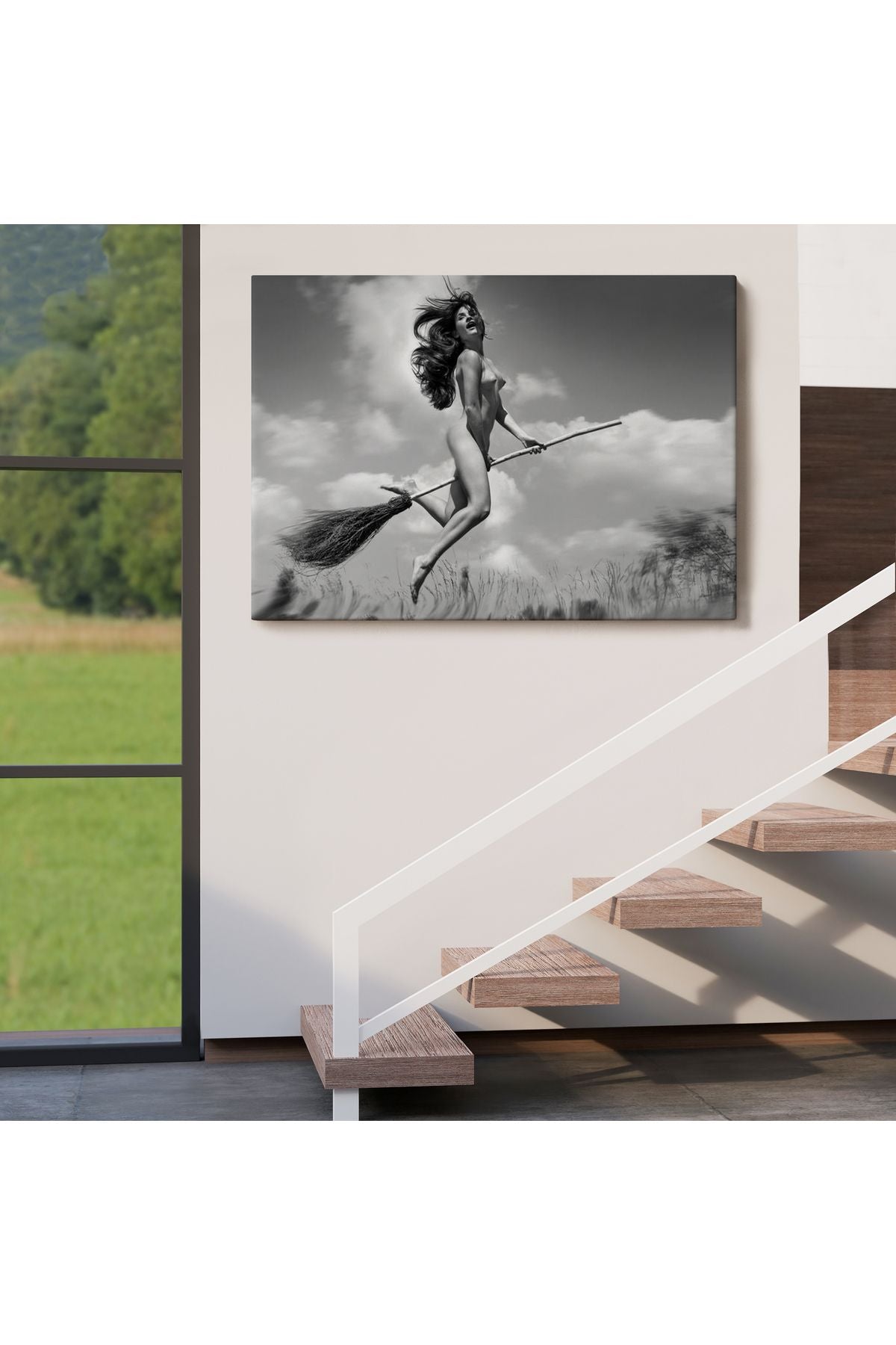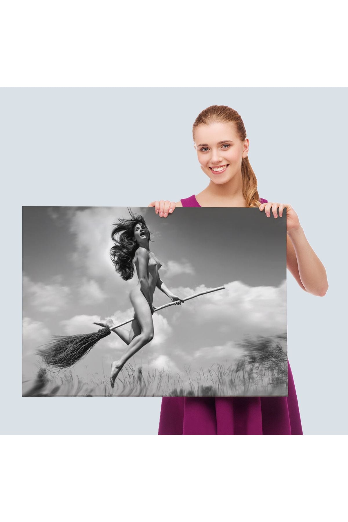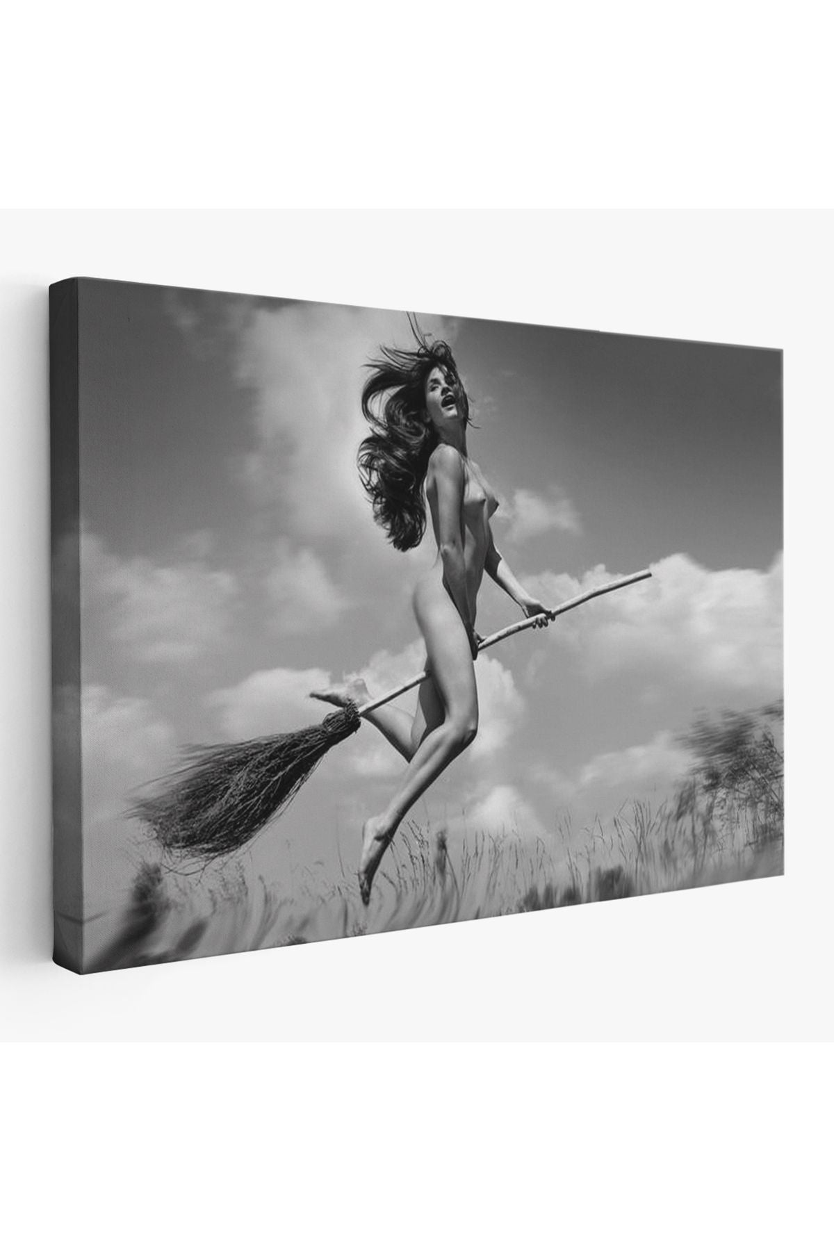 Süpürge İle Uçan Çıplak Kandın Kanvas Tablo-5145