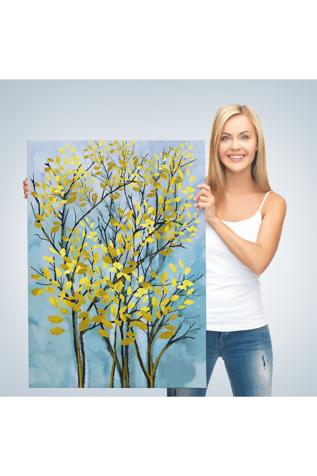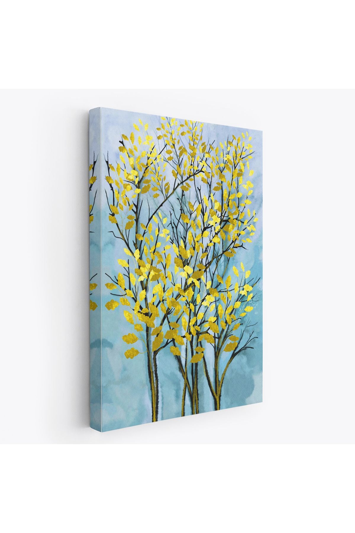 Sarı Yapraklar Soyut Dekoratif Kanvas Tablo-5178