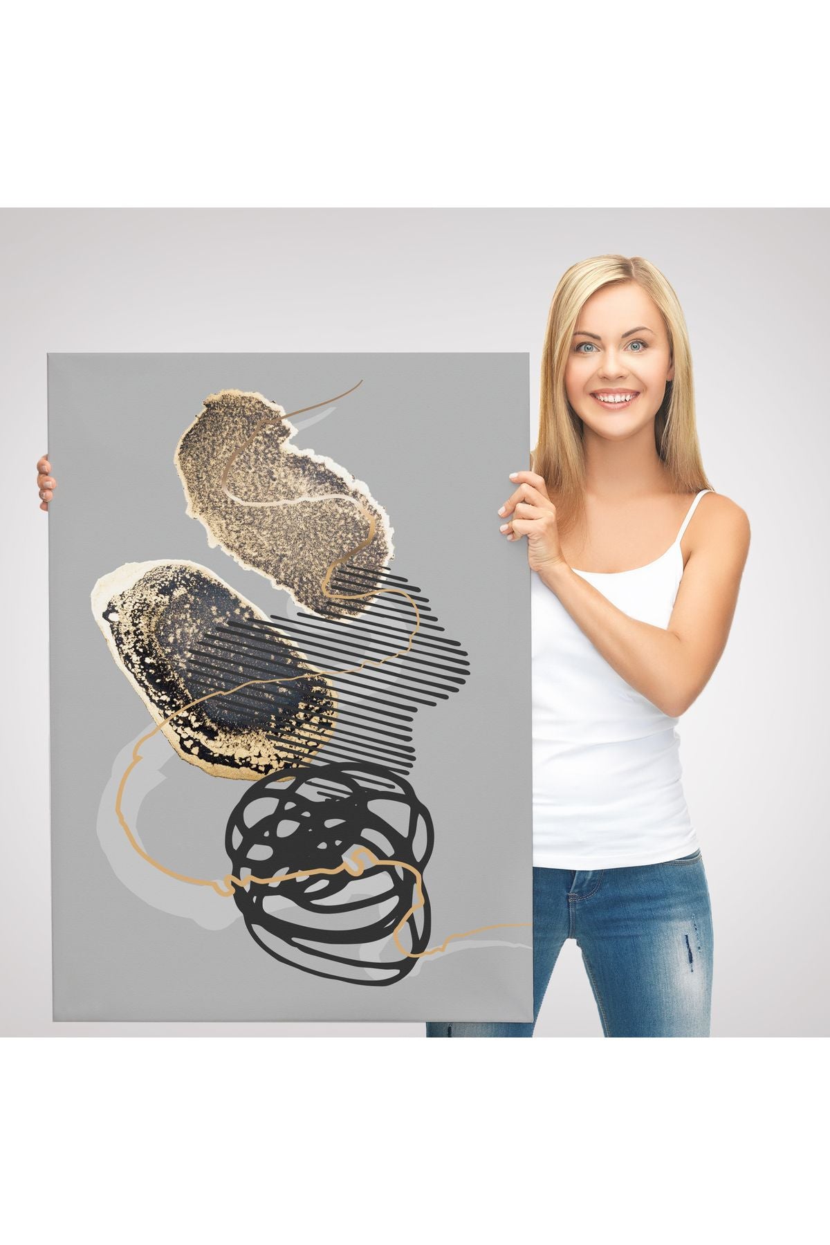 Geometrik Formda Mürekkep ve Alkol Elementli Kanvas Tablo-5180