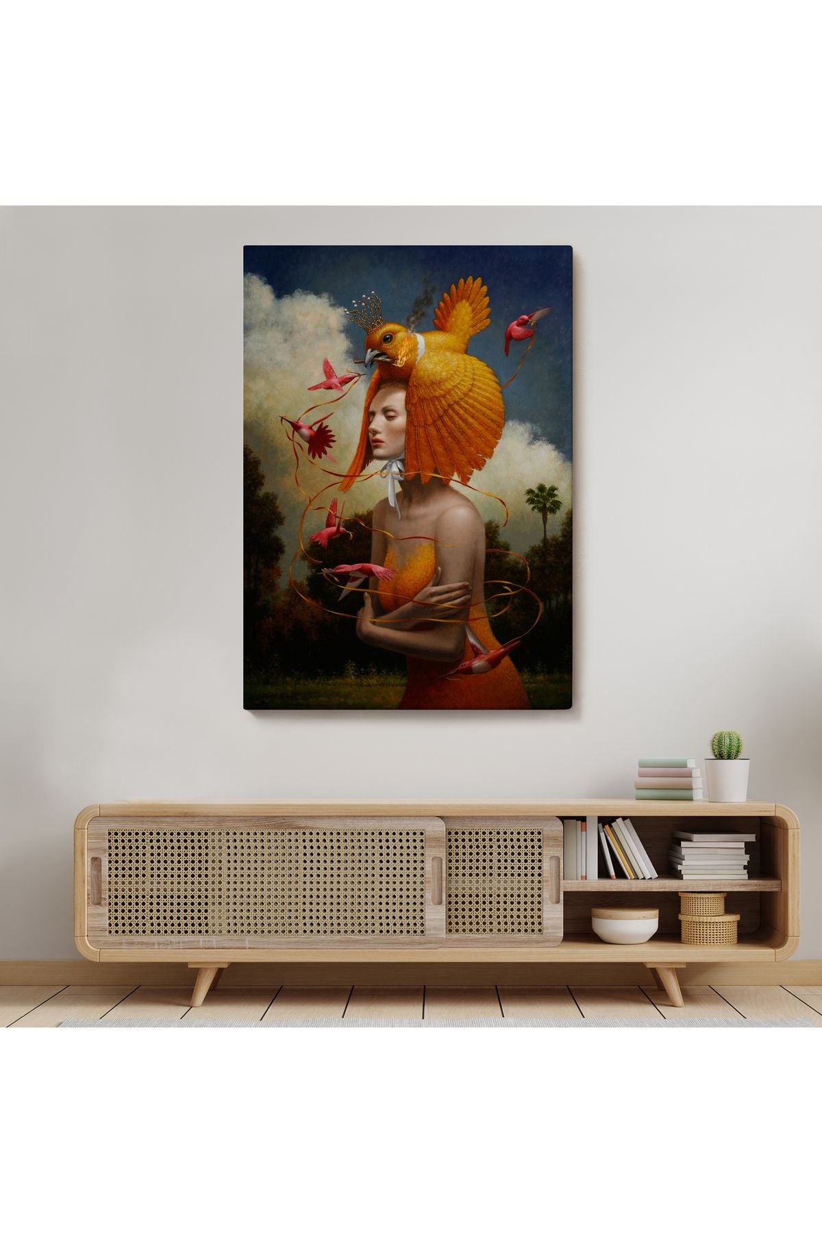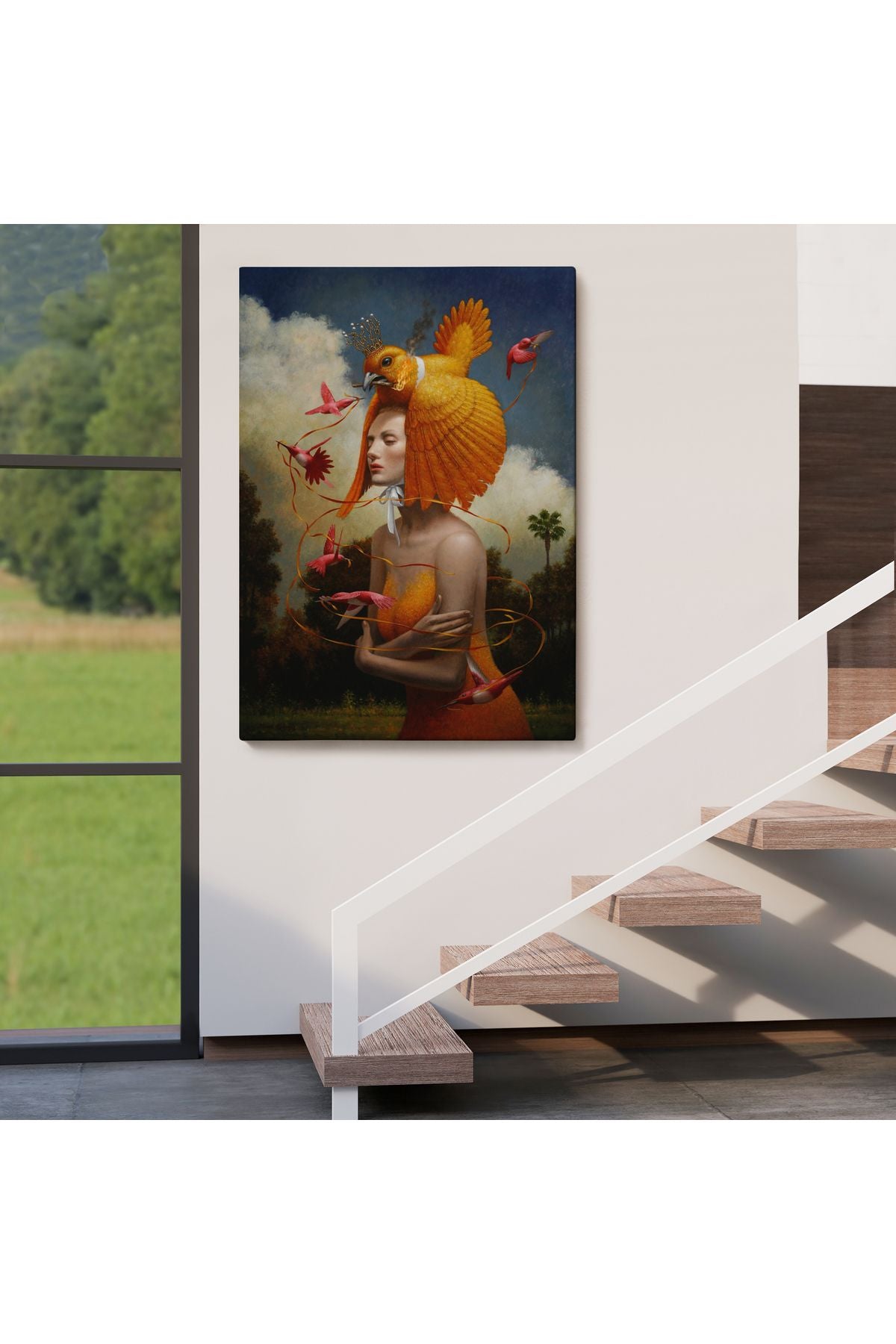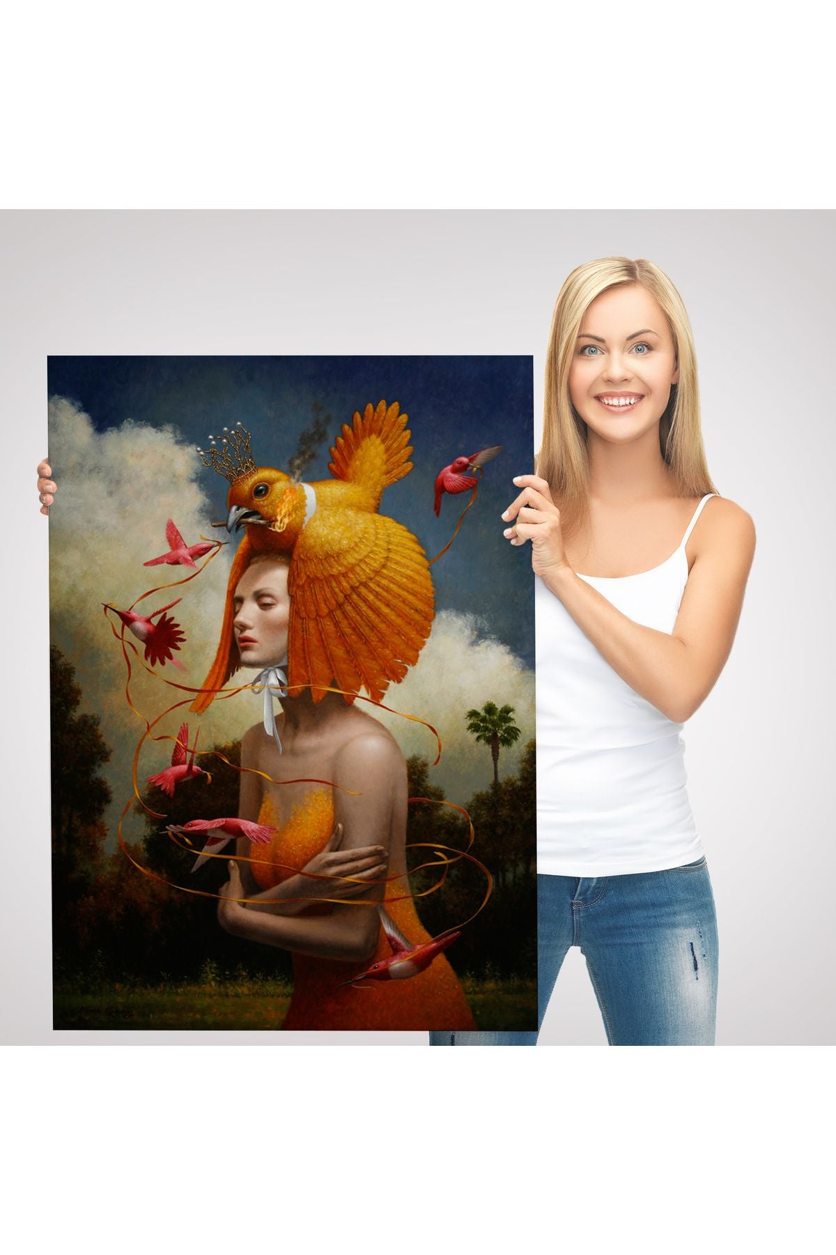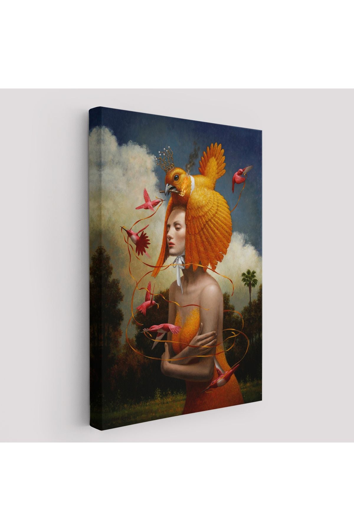 Gerçeküstü Yağlıboya Kadın Kuş Steven Kenny Kanvas Tablo-5225