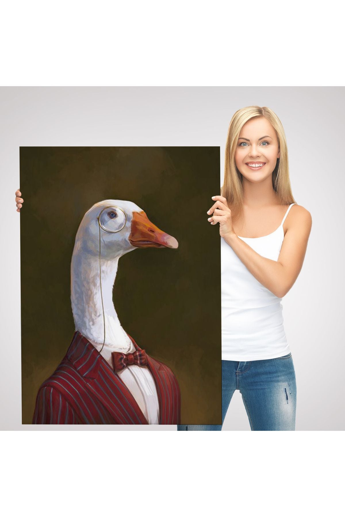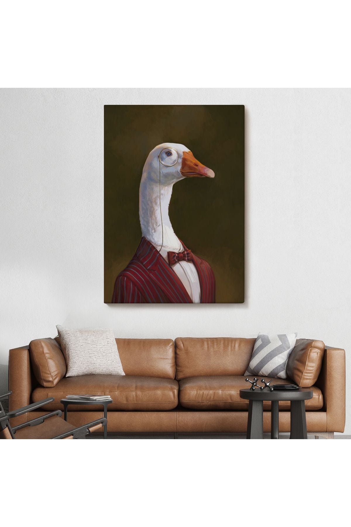 Gözlüklü İnsan Vücutlu Kaz Pop Art Kanvas Tablo-5245