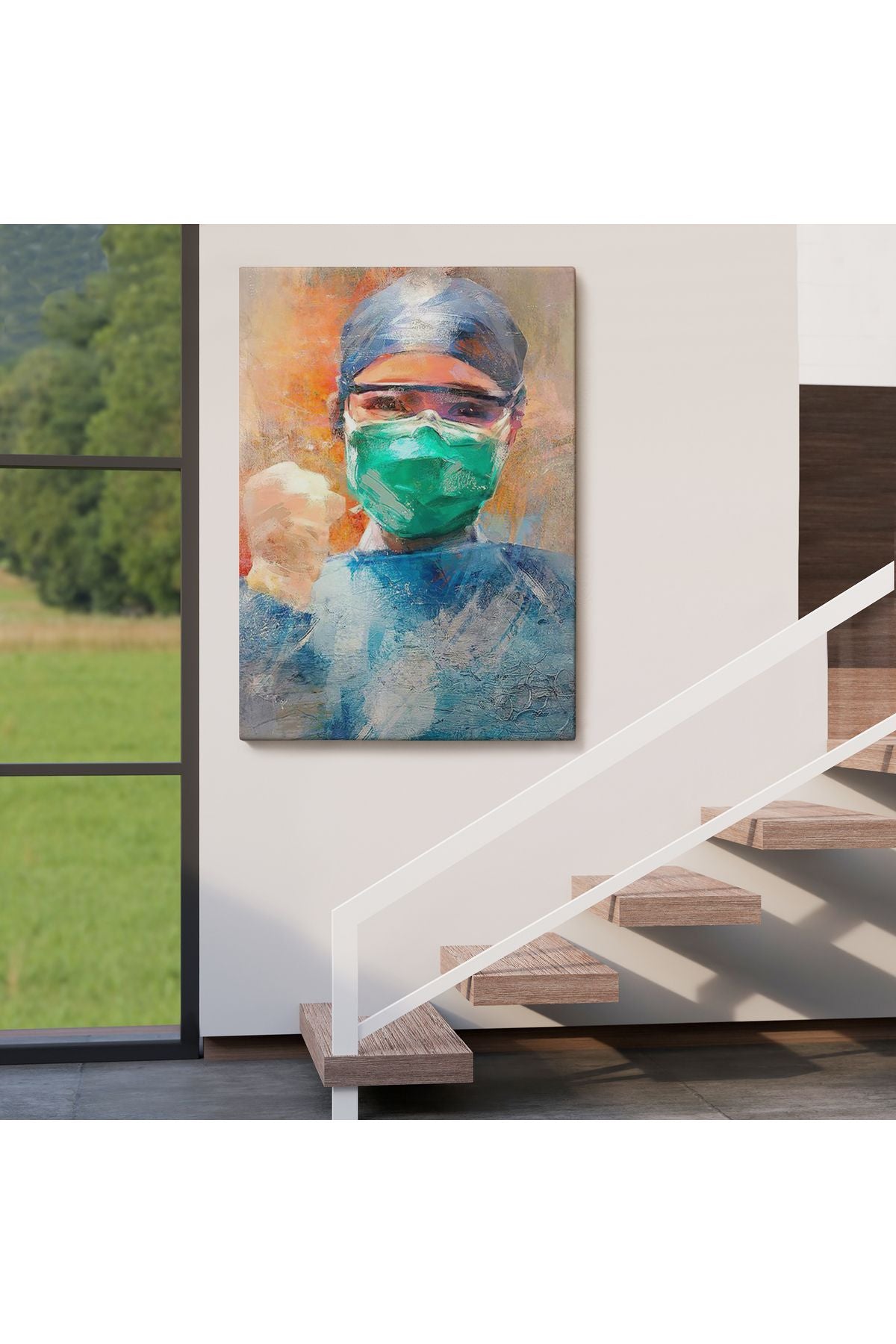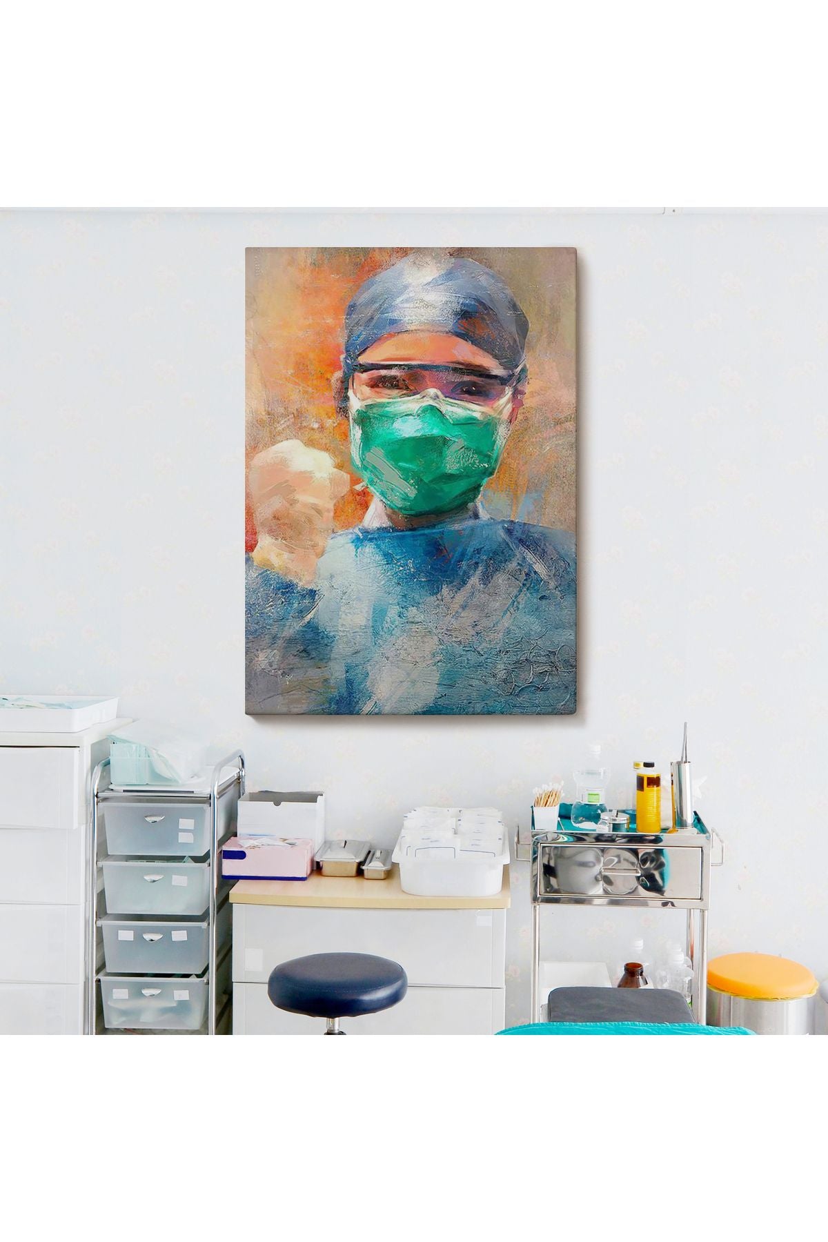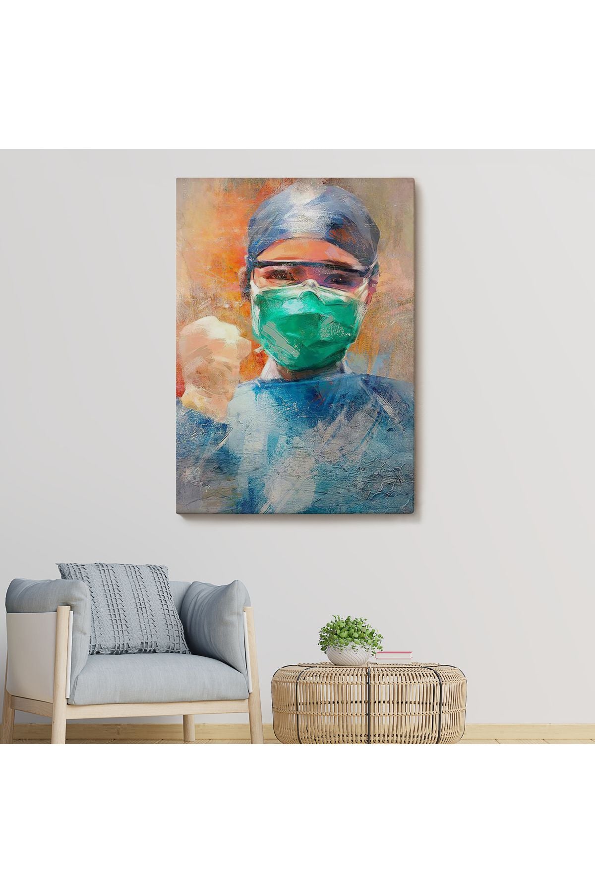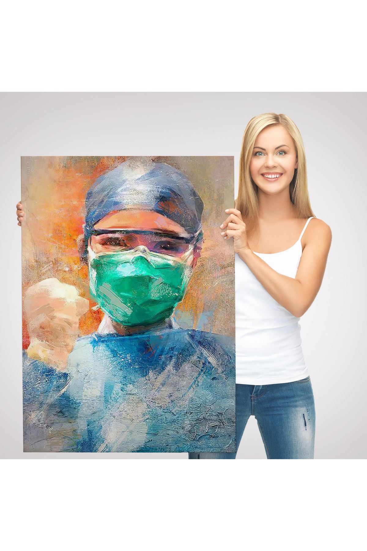 Covid 19 Dövüşen Soyut Hemşire Portresi, Tıbbi Soyut Kanvas Tablo-5246