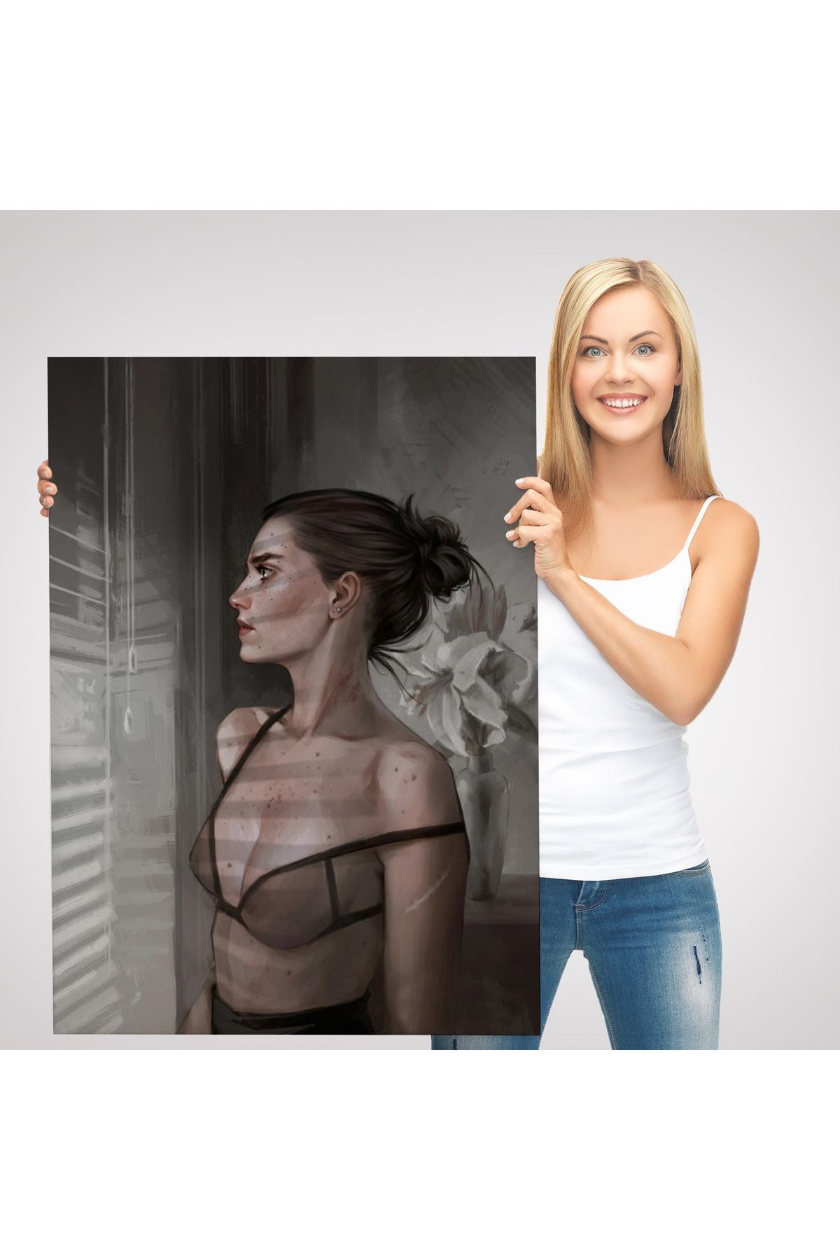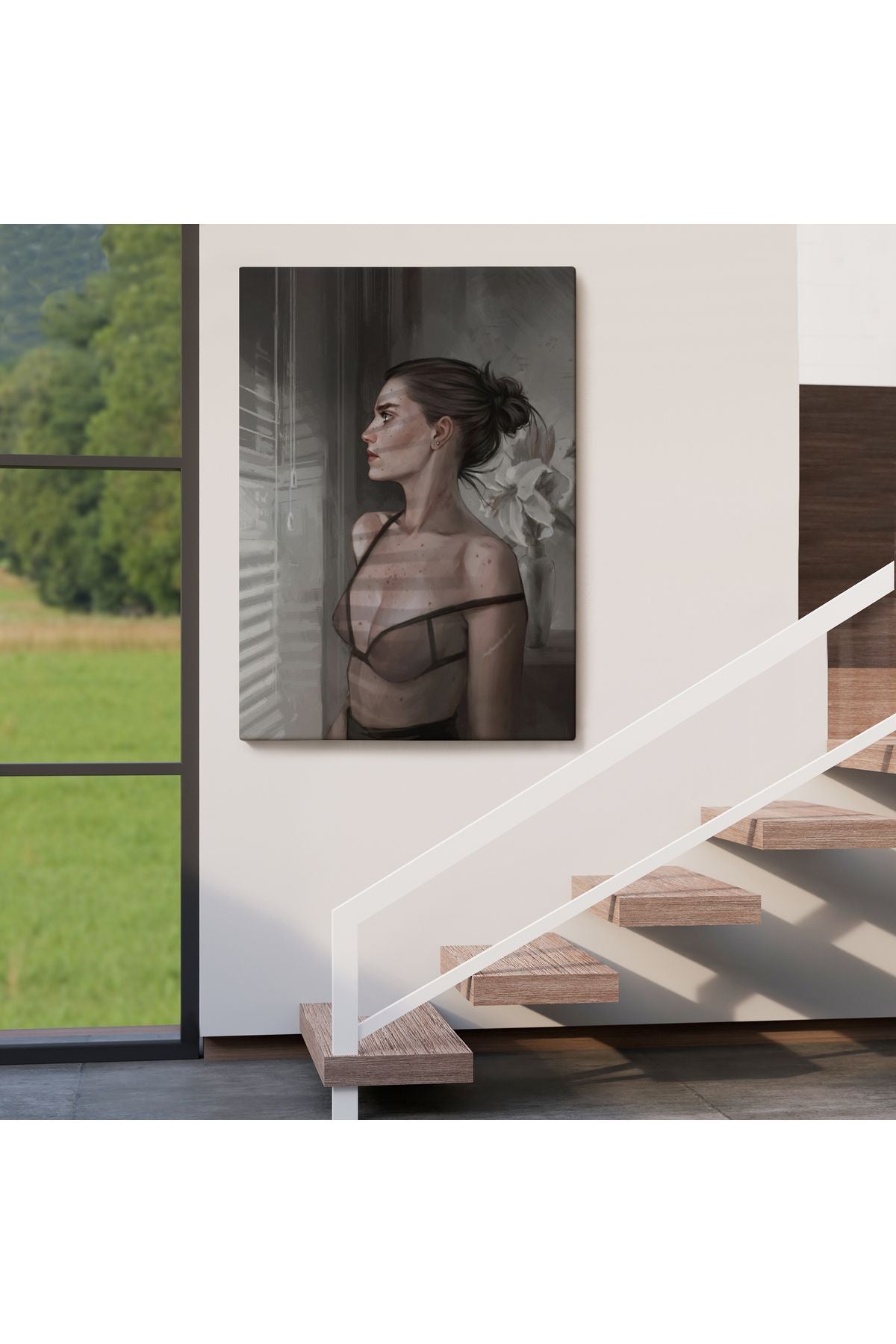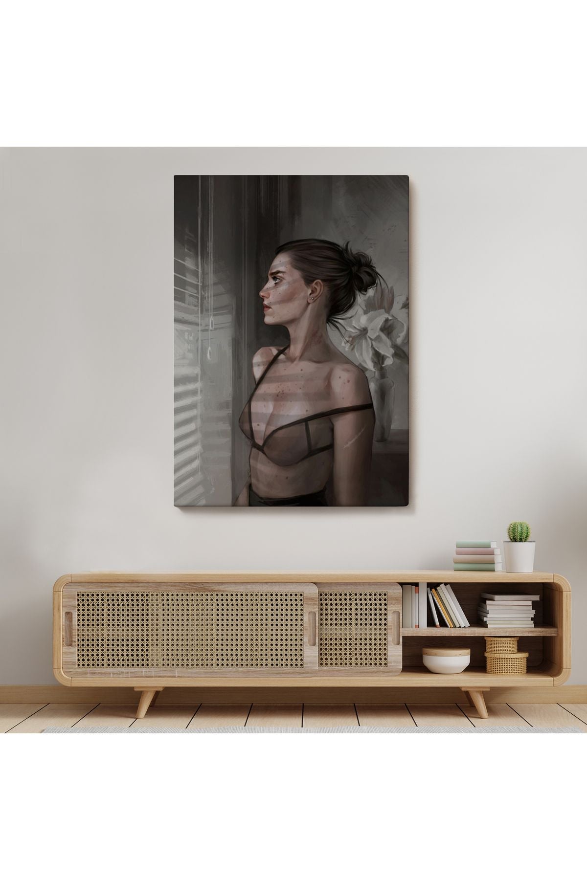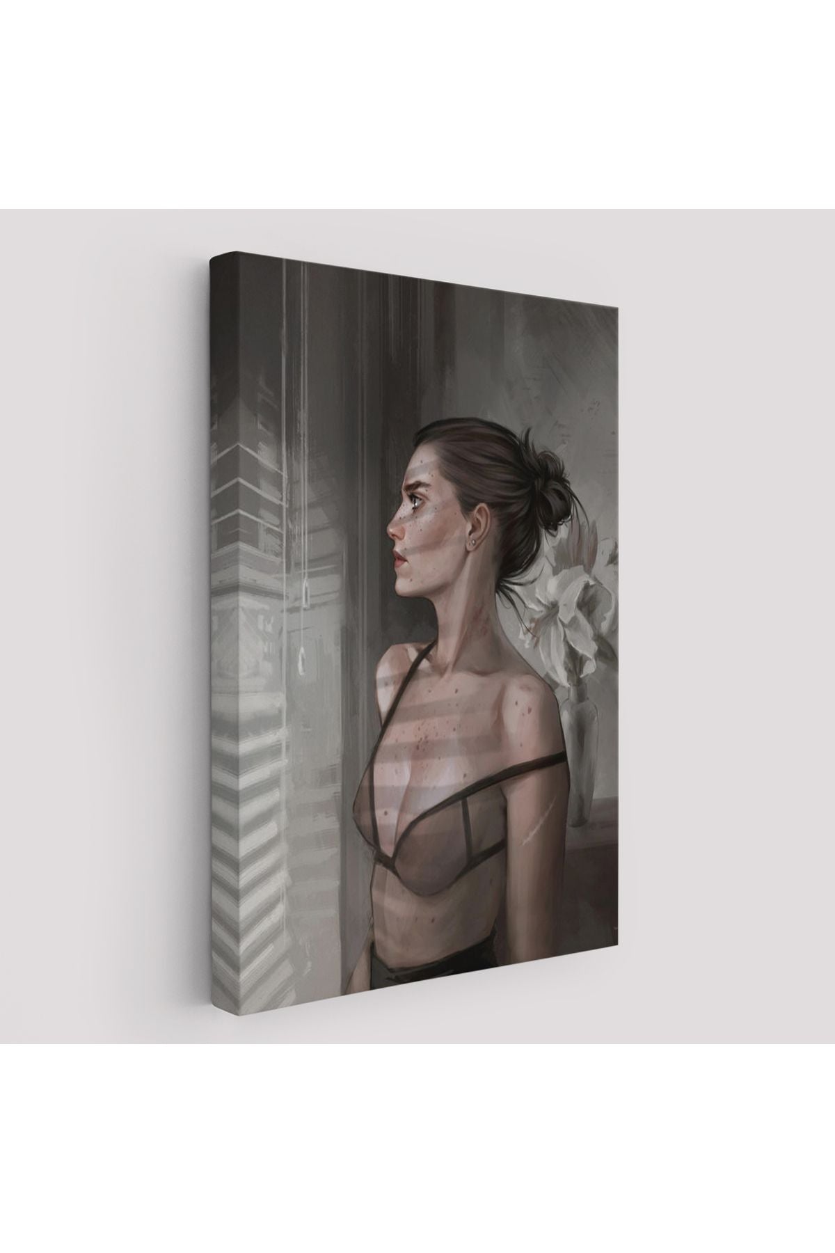 Güzel Kadın Pencereden Dışarı Bakıyor Kanvas Tablosu-5257