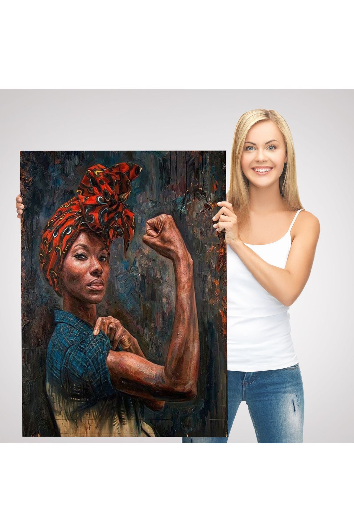 Güçlü Siyah Kadın, Hippi Tarzı Kızlar Güç Feminist Kanvas Tablo-5273