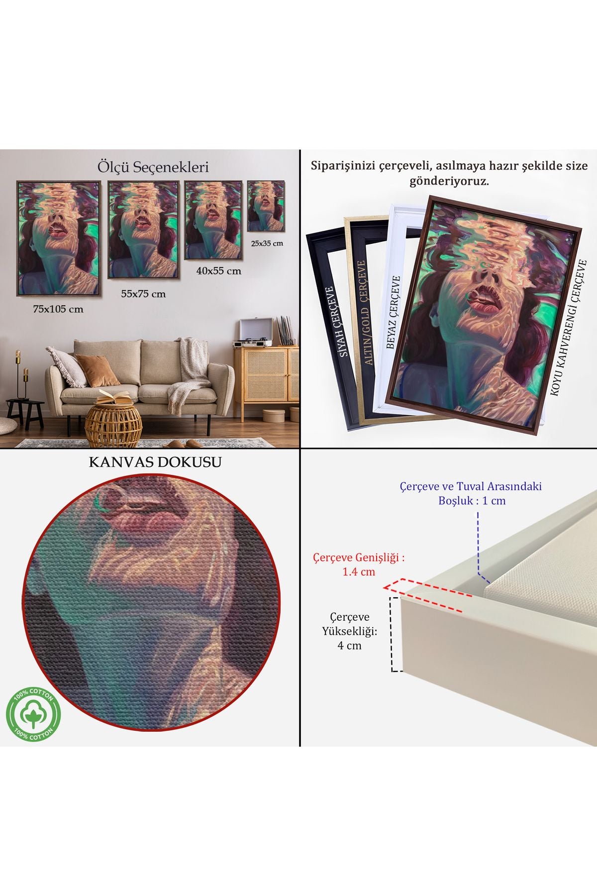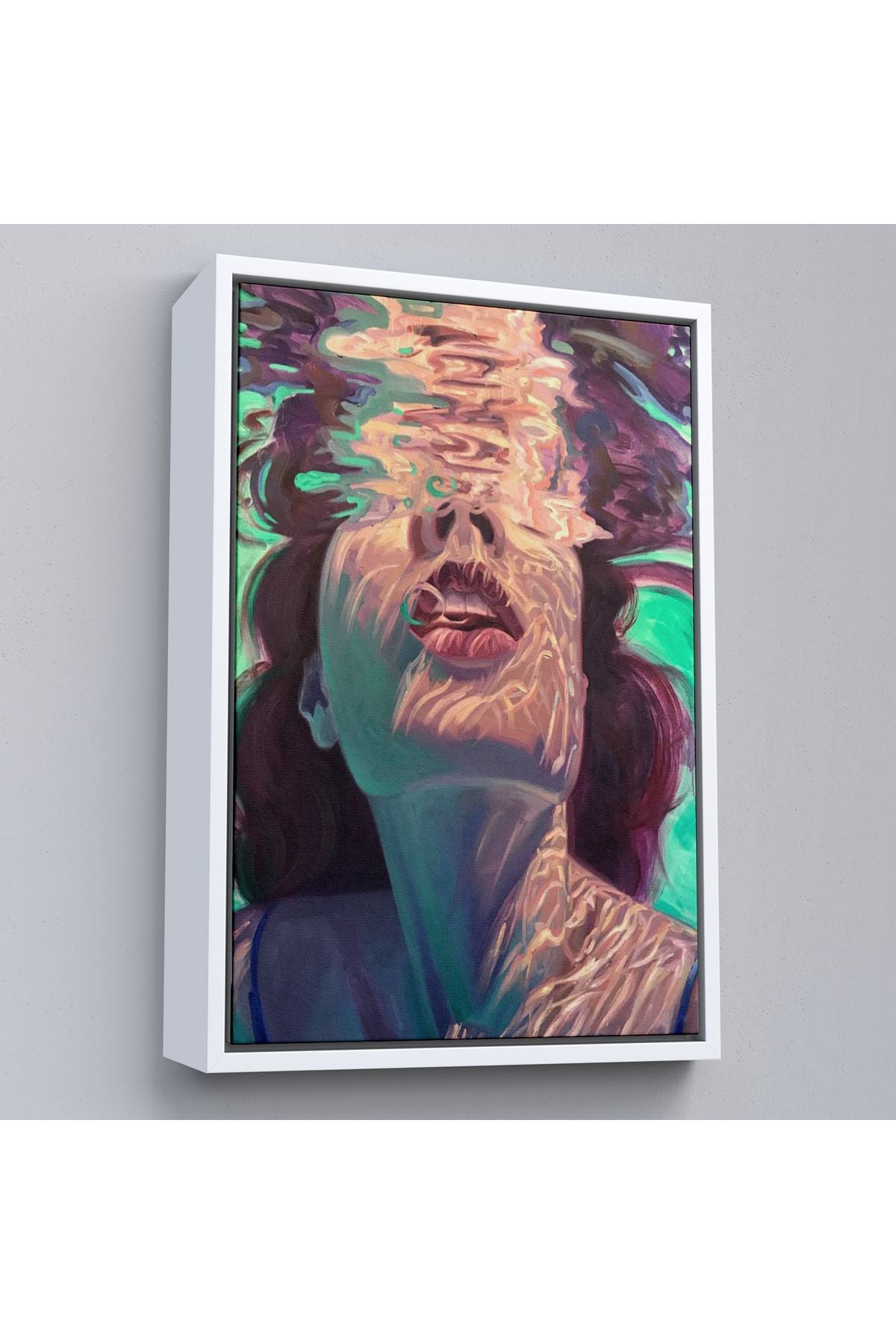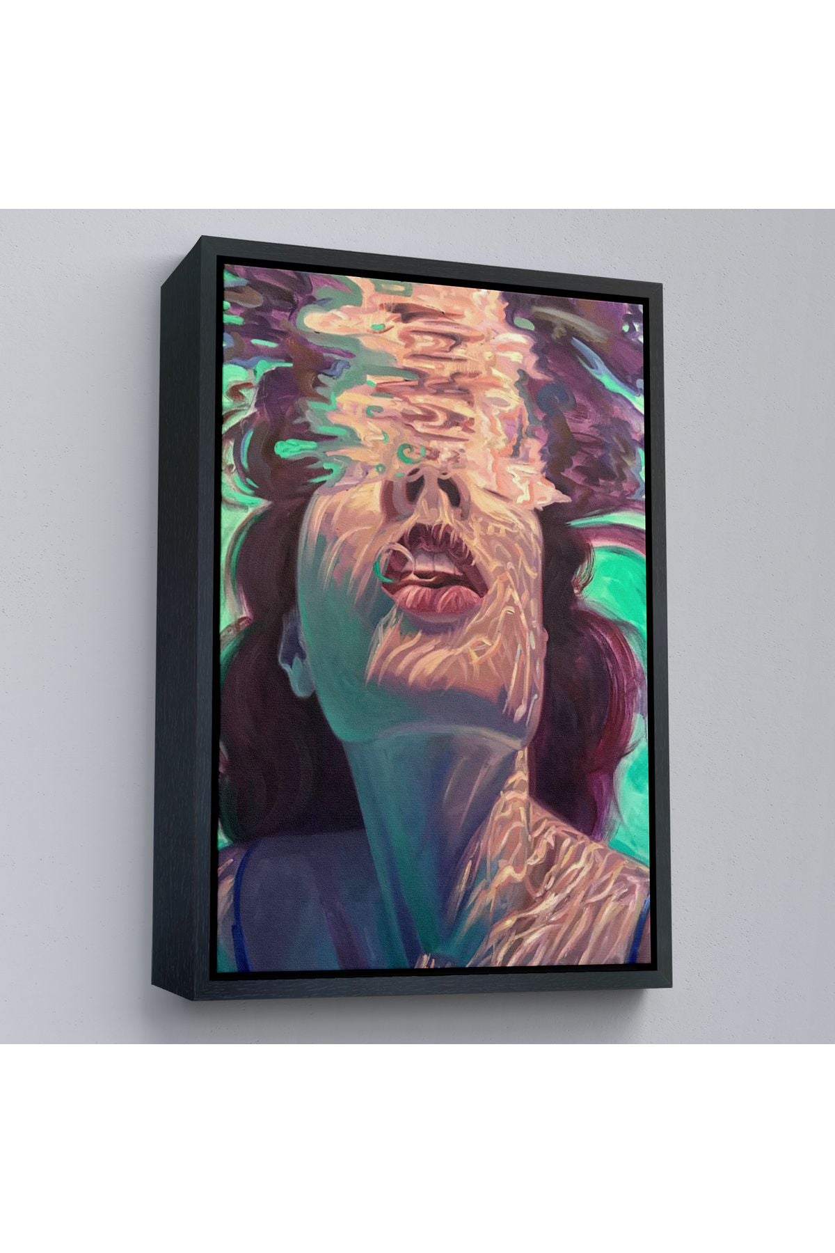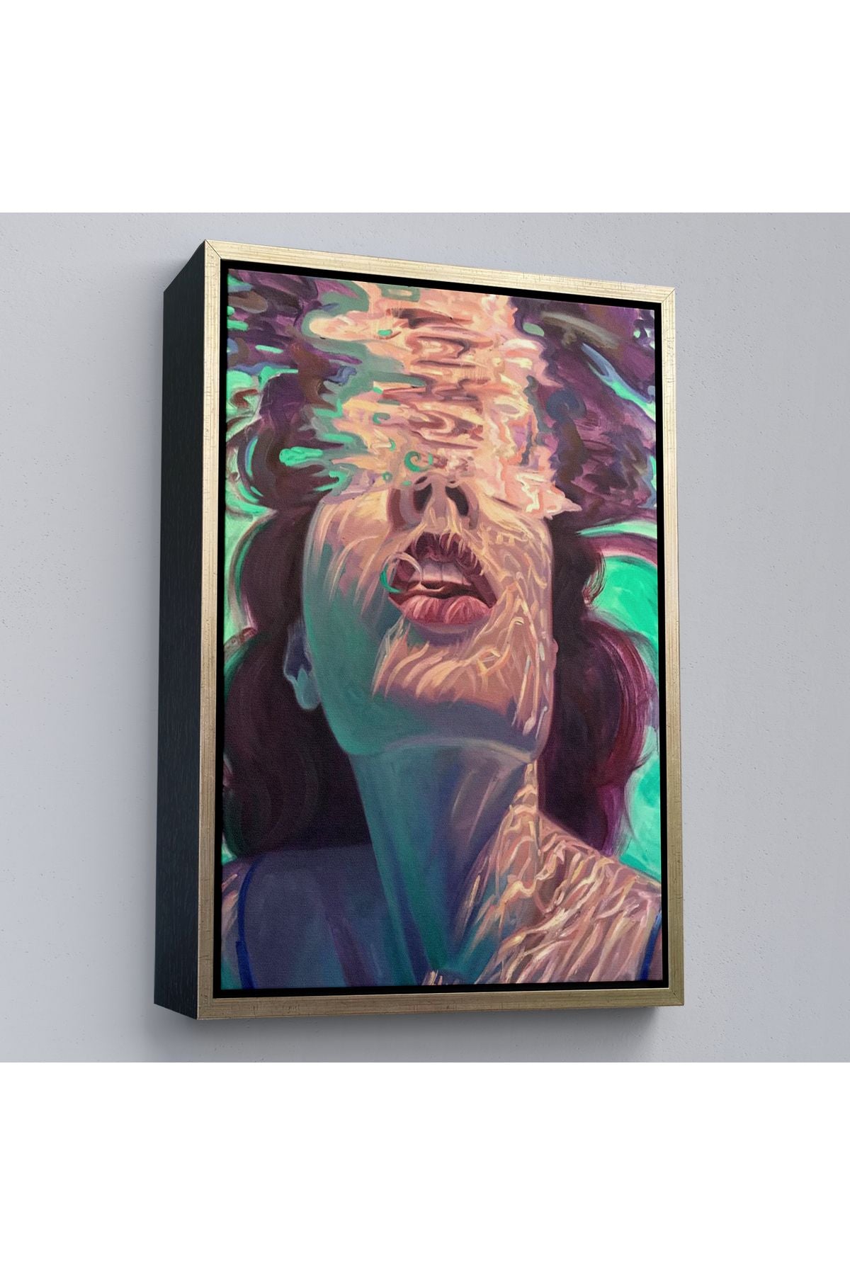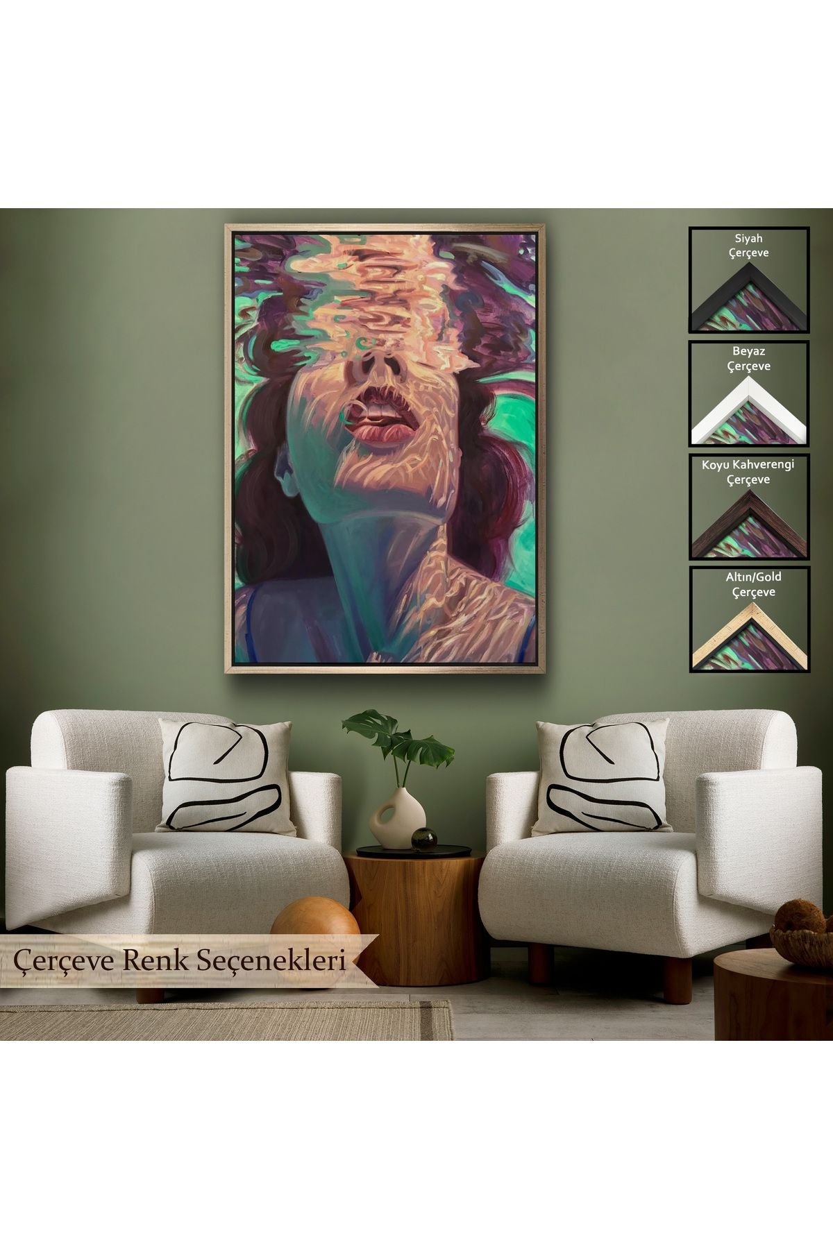 Çerçeveli Su Altında Kadın Kanvas Tablo, Sualtı Yağlıboya Tablo Efektli Tablo-5280