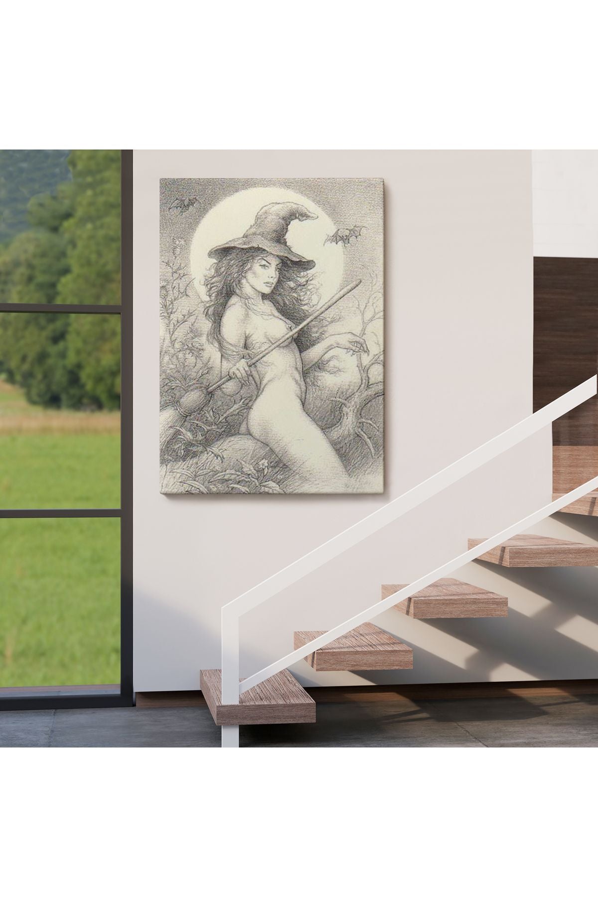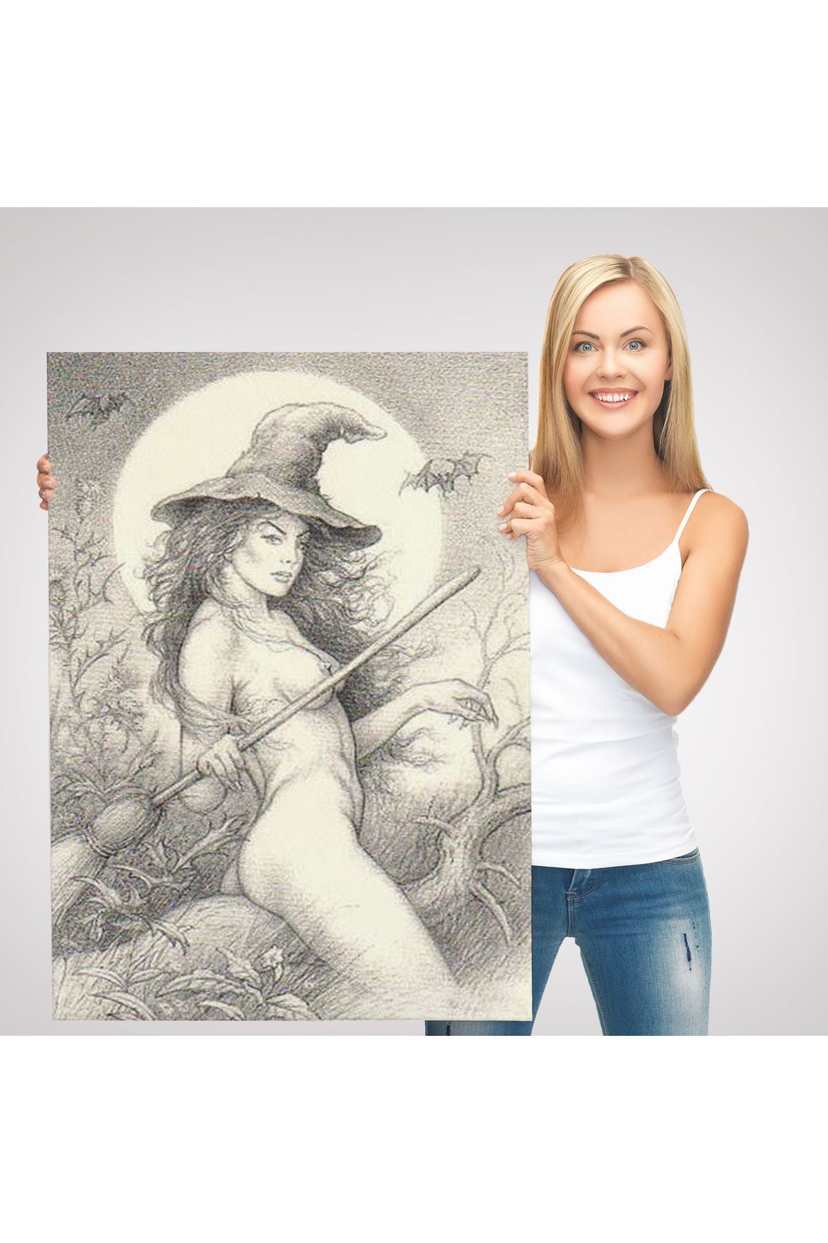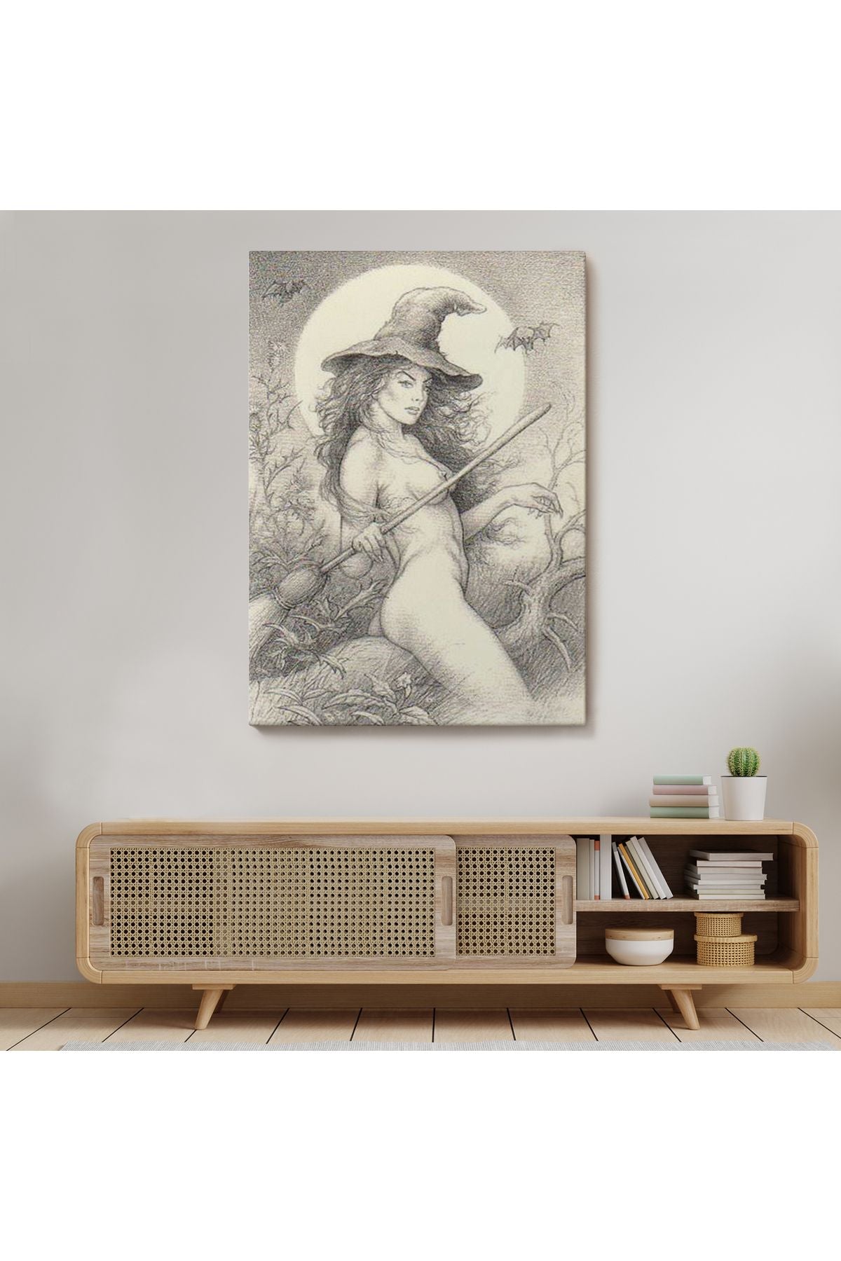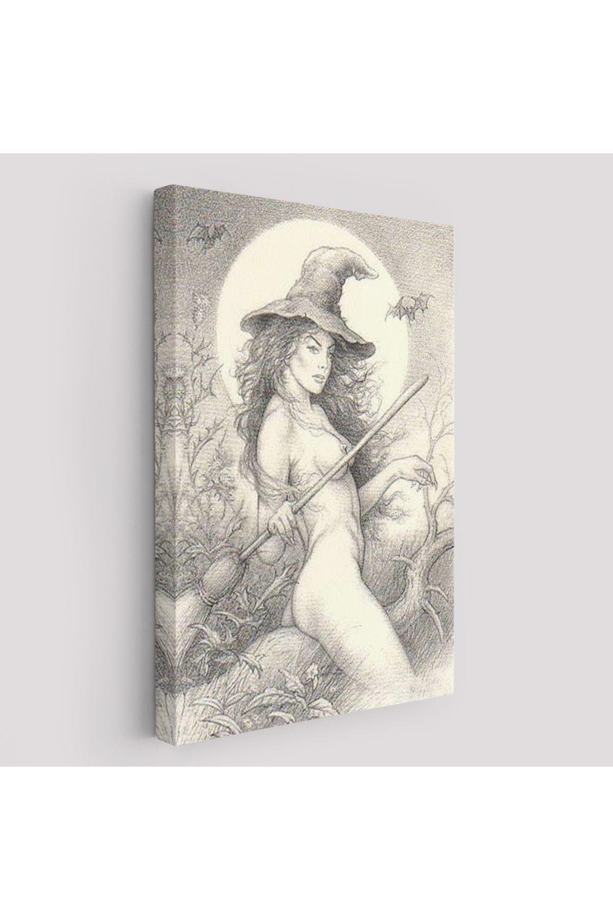 Şabat'a Cadı Uçuşu, Vintage Cadılar Bayramı, Wiccan Tuhaflıkları Kanvas Tablo-5284