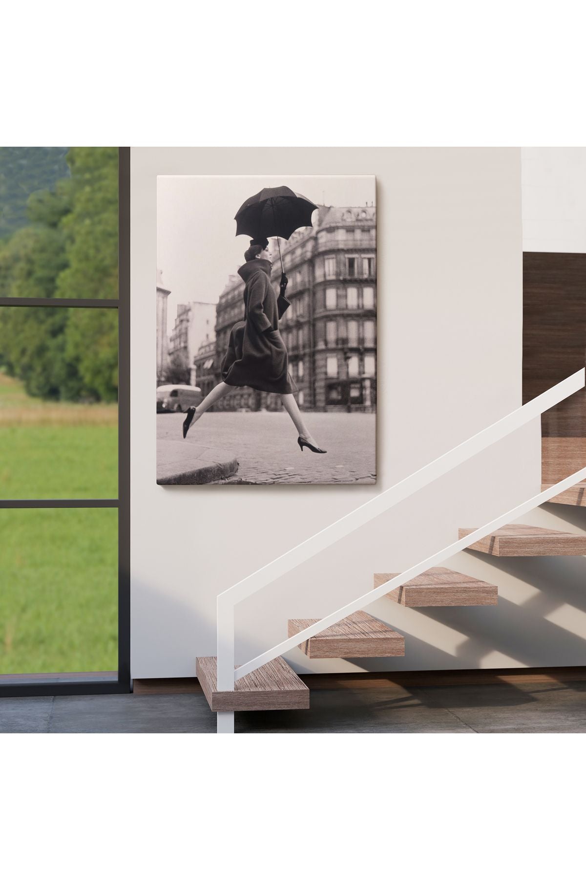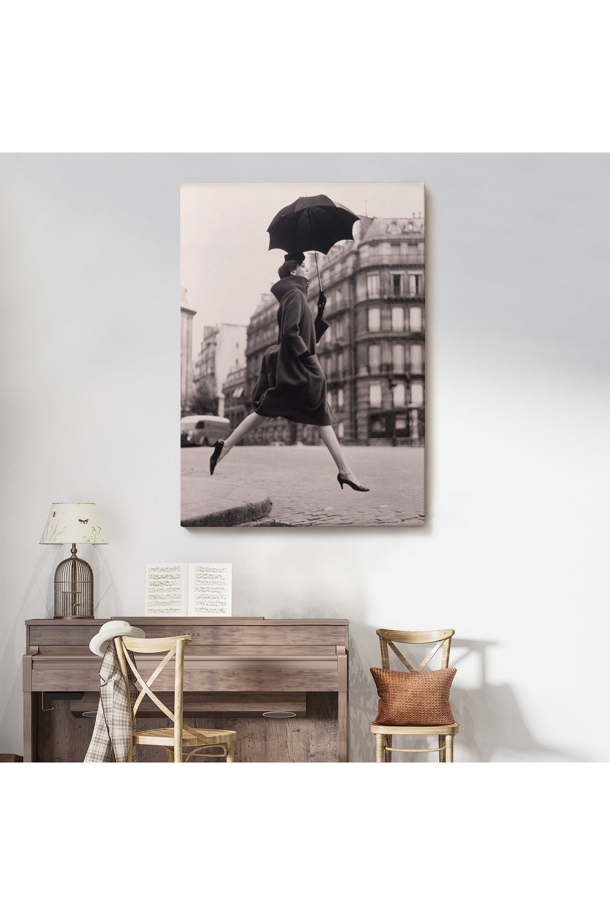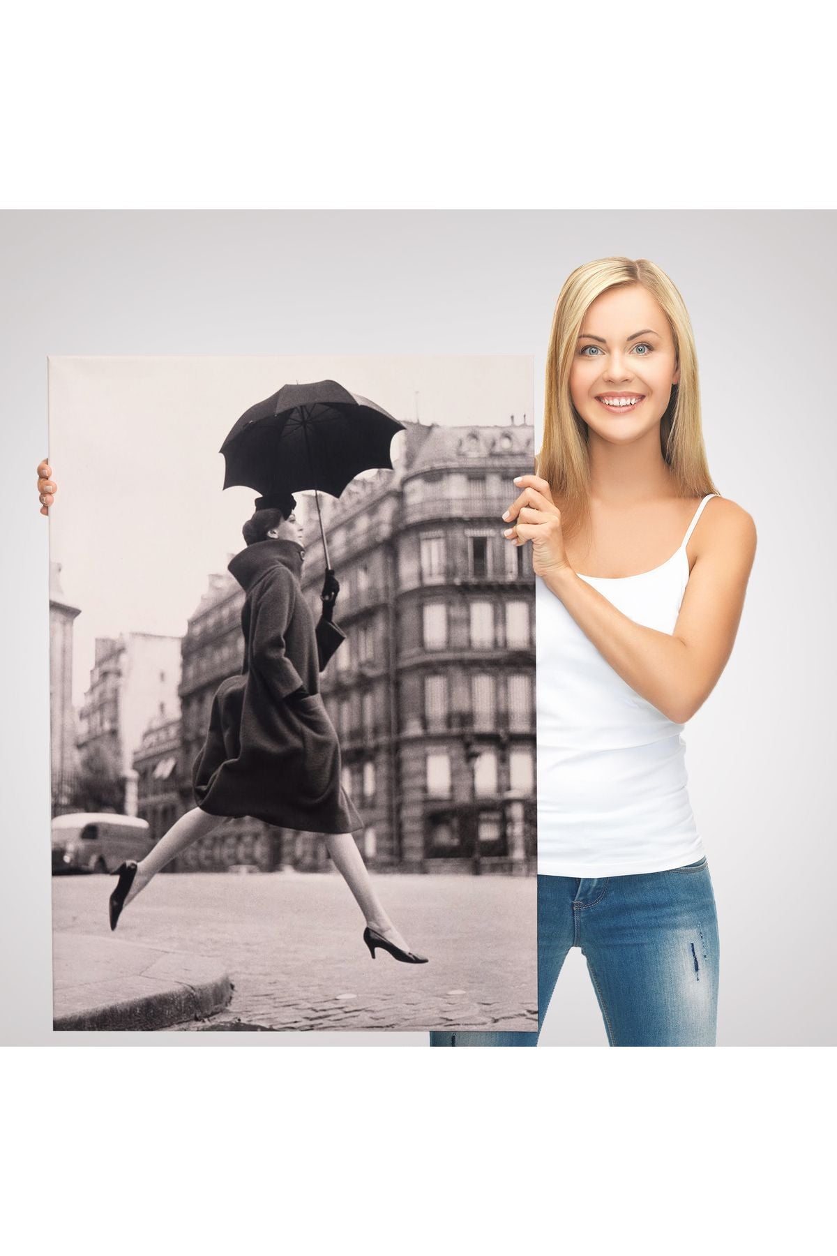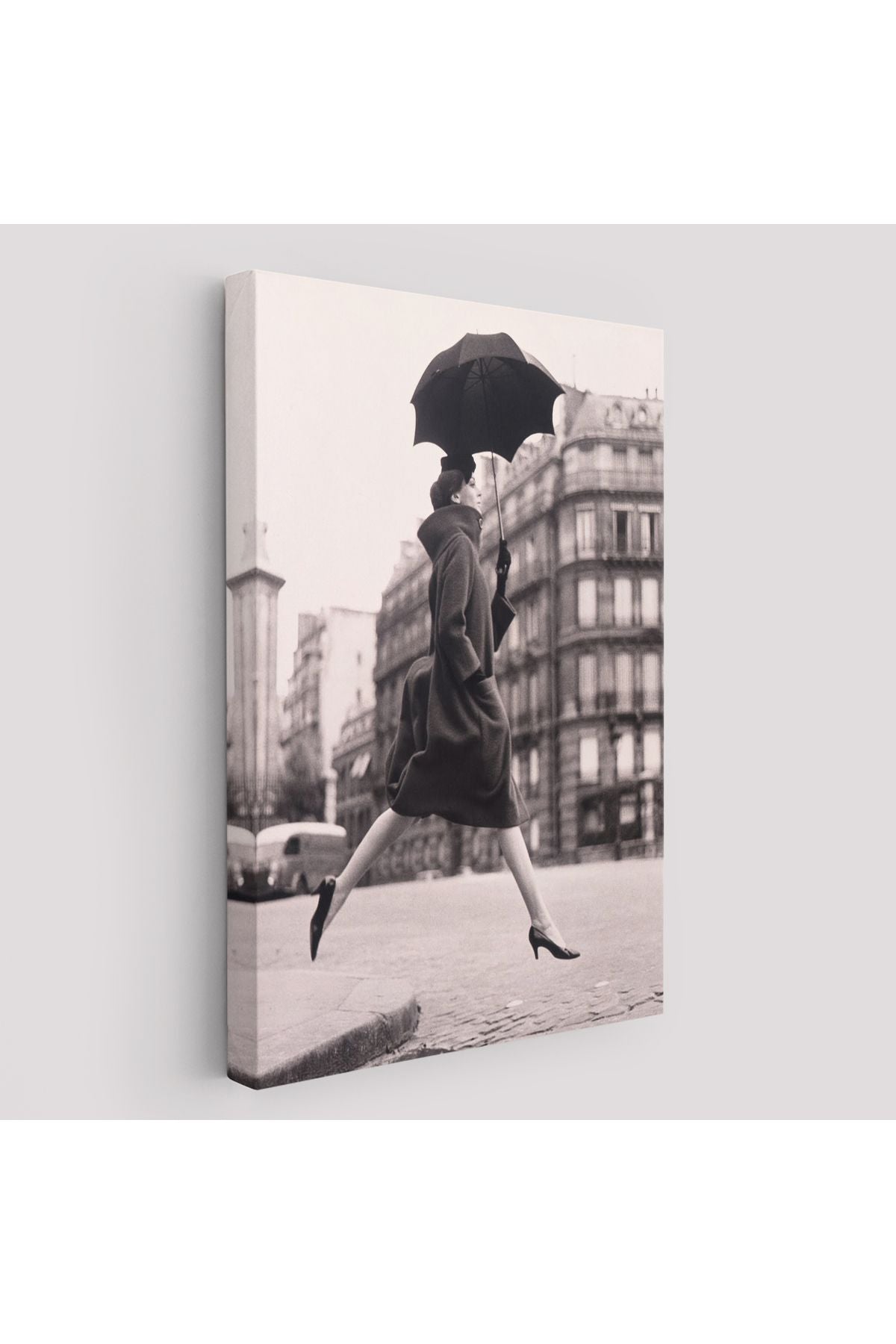 Carmen Sokakta Bir Su Birikintisinin Üzerinden Şemsiyeyle Atlıyor Kanvas Tablo-5286