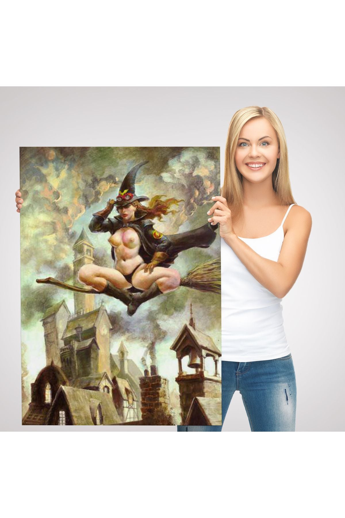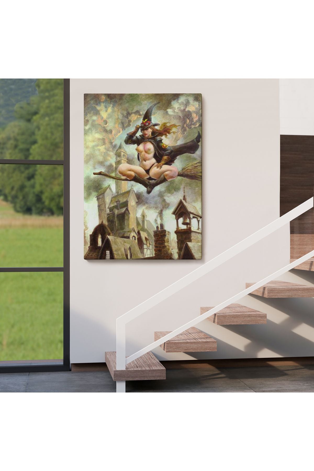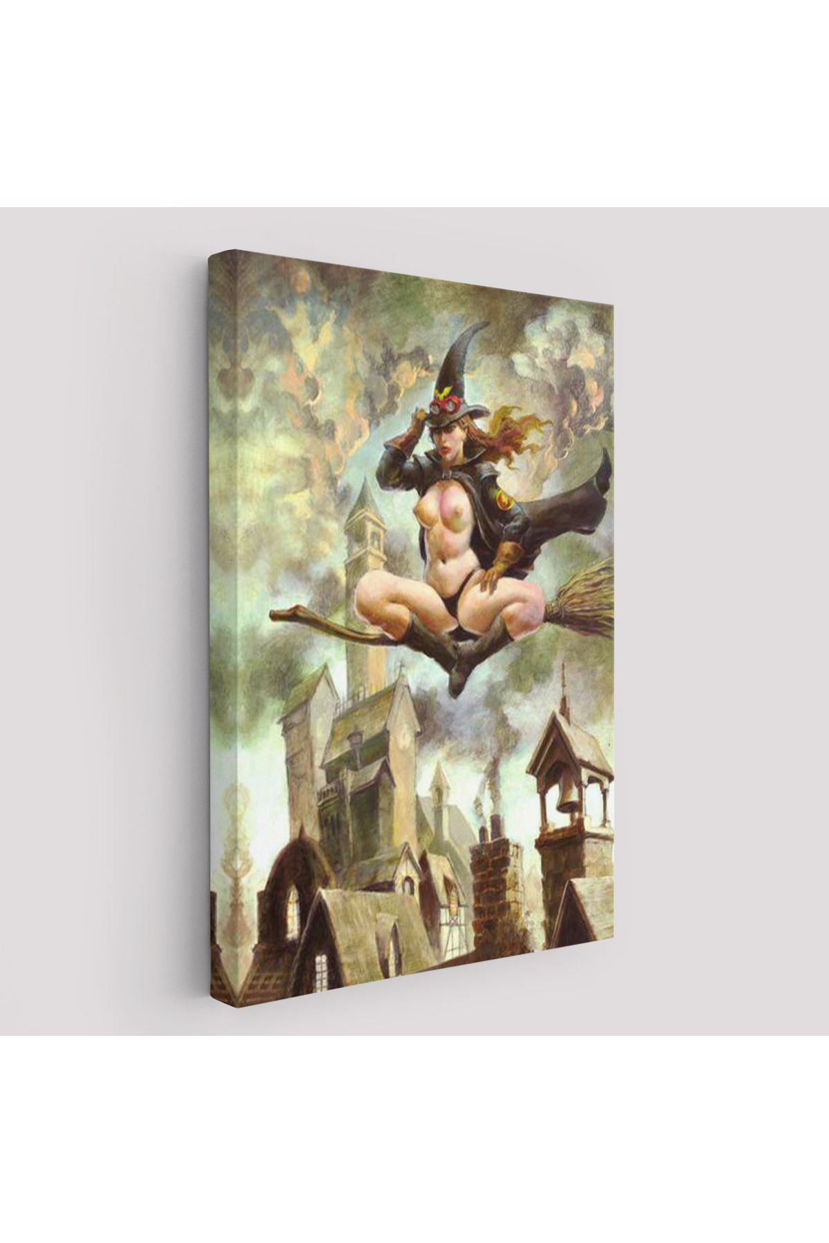 Çıplak Cadı Süpürgeye Biniyor, Cadılar Bayramı Gotik Sanatı, Kanvas Tablo-5288