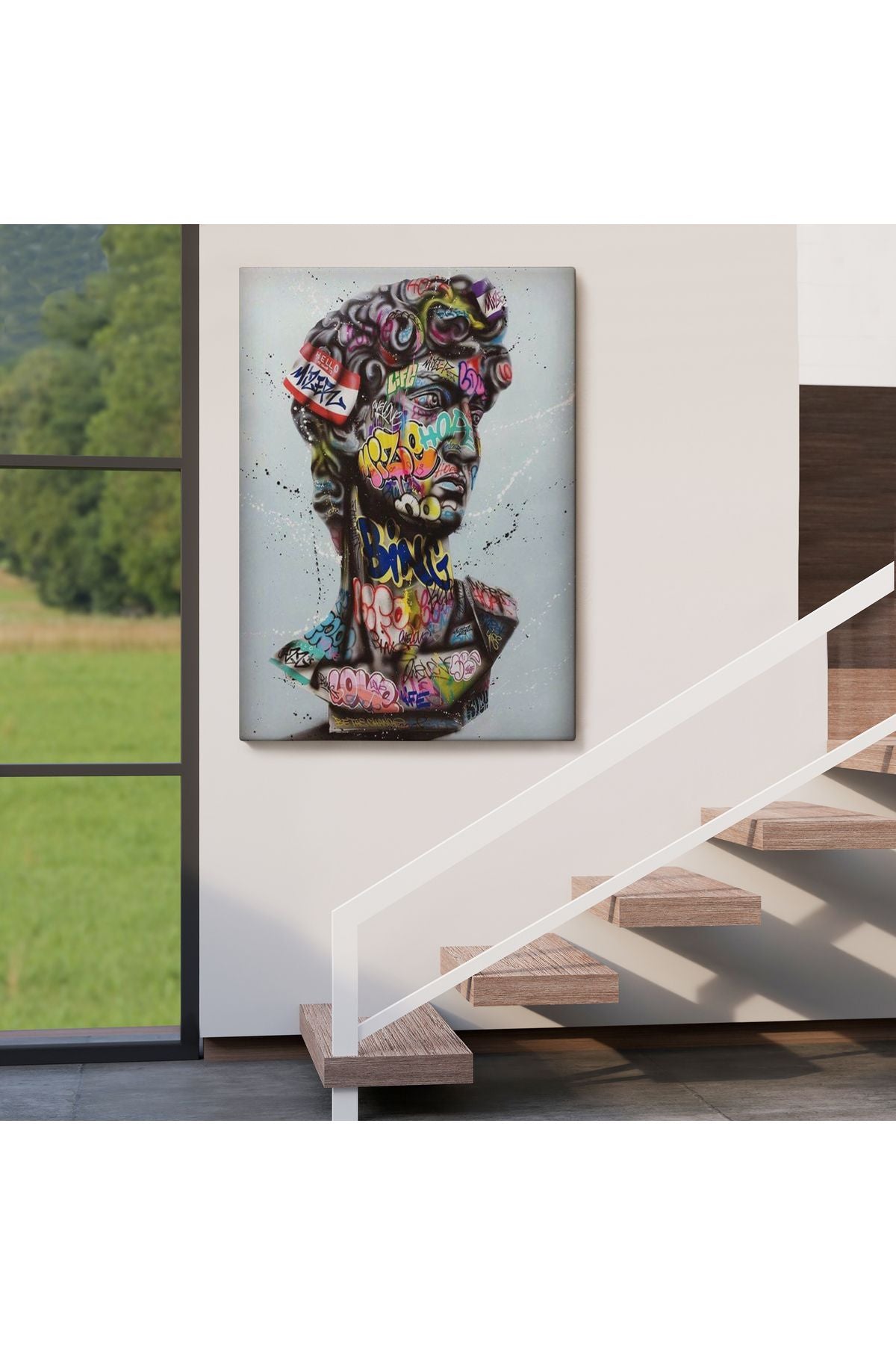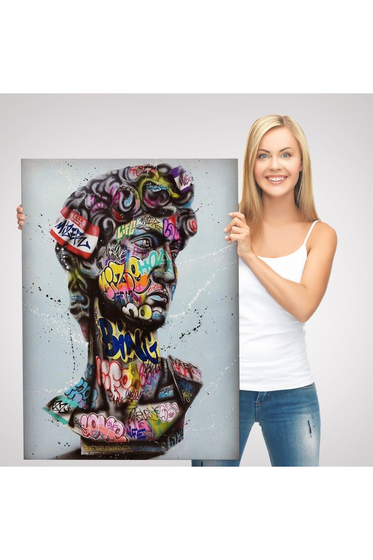 Banksy Antik Kafa Çizimi Renkli Poster, Michelangelo Sokak Sanatı Kanvas Tablo-5318