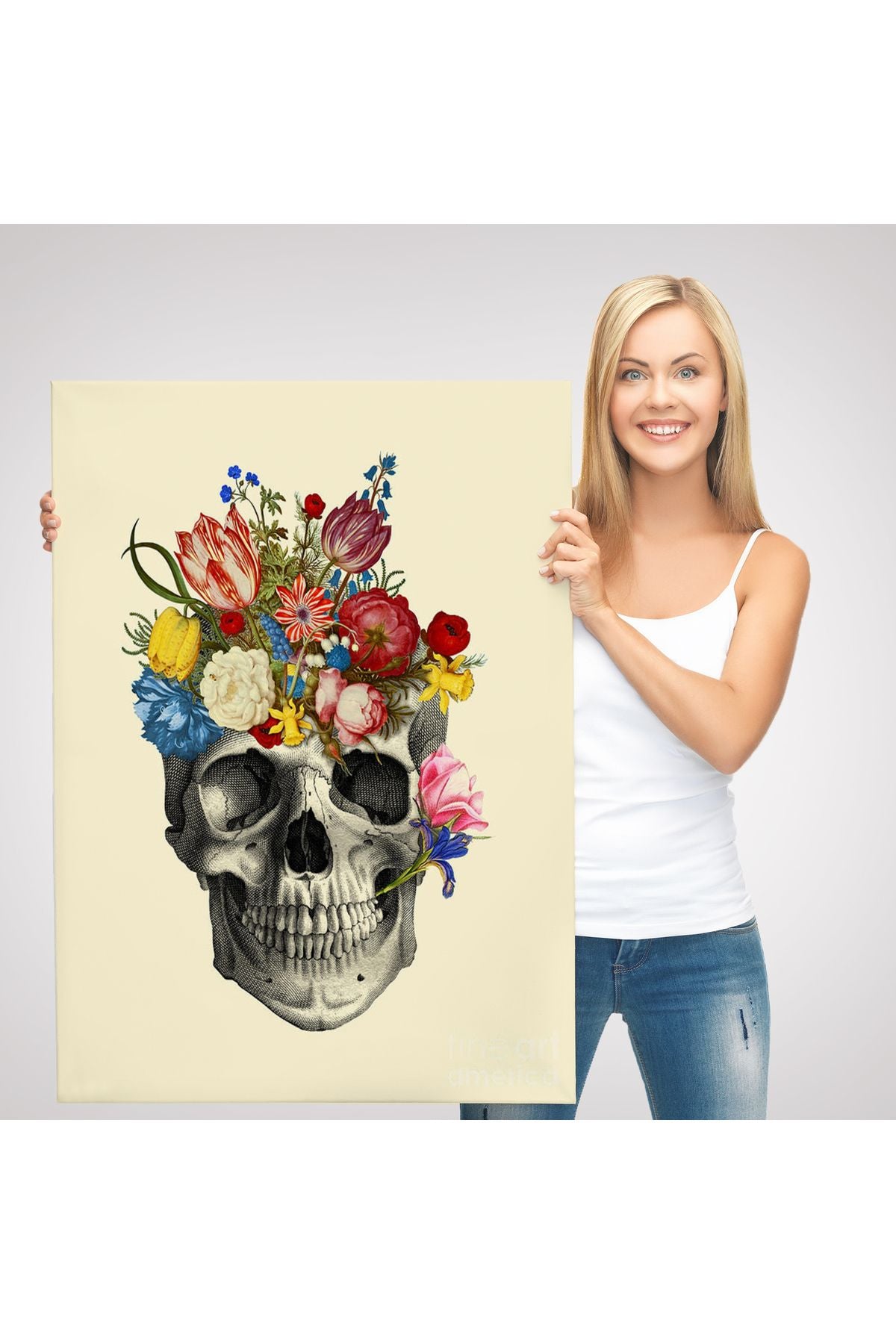 Çiçekli Kafatası Madame Memento Kanvas Tablo, Kafatası Ölülerin Günü Kanvas Tablo-5321