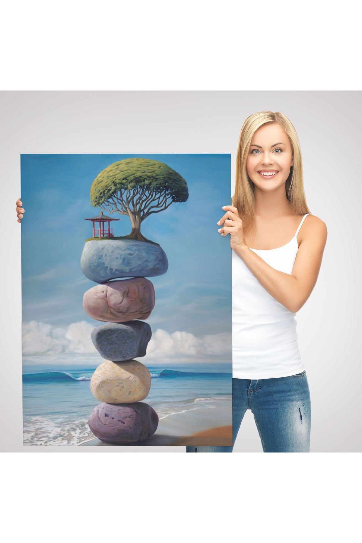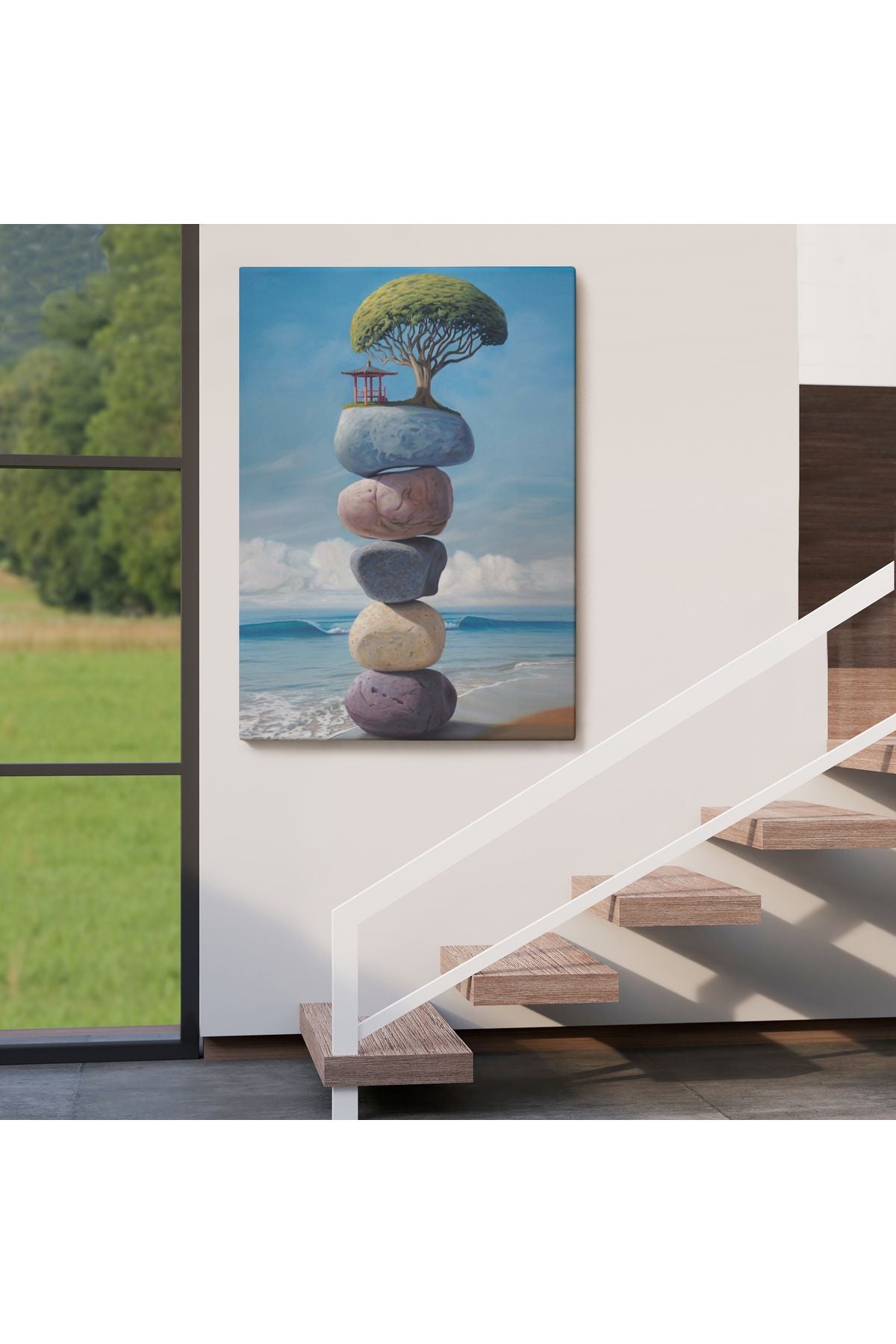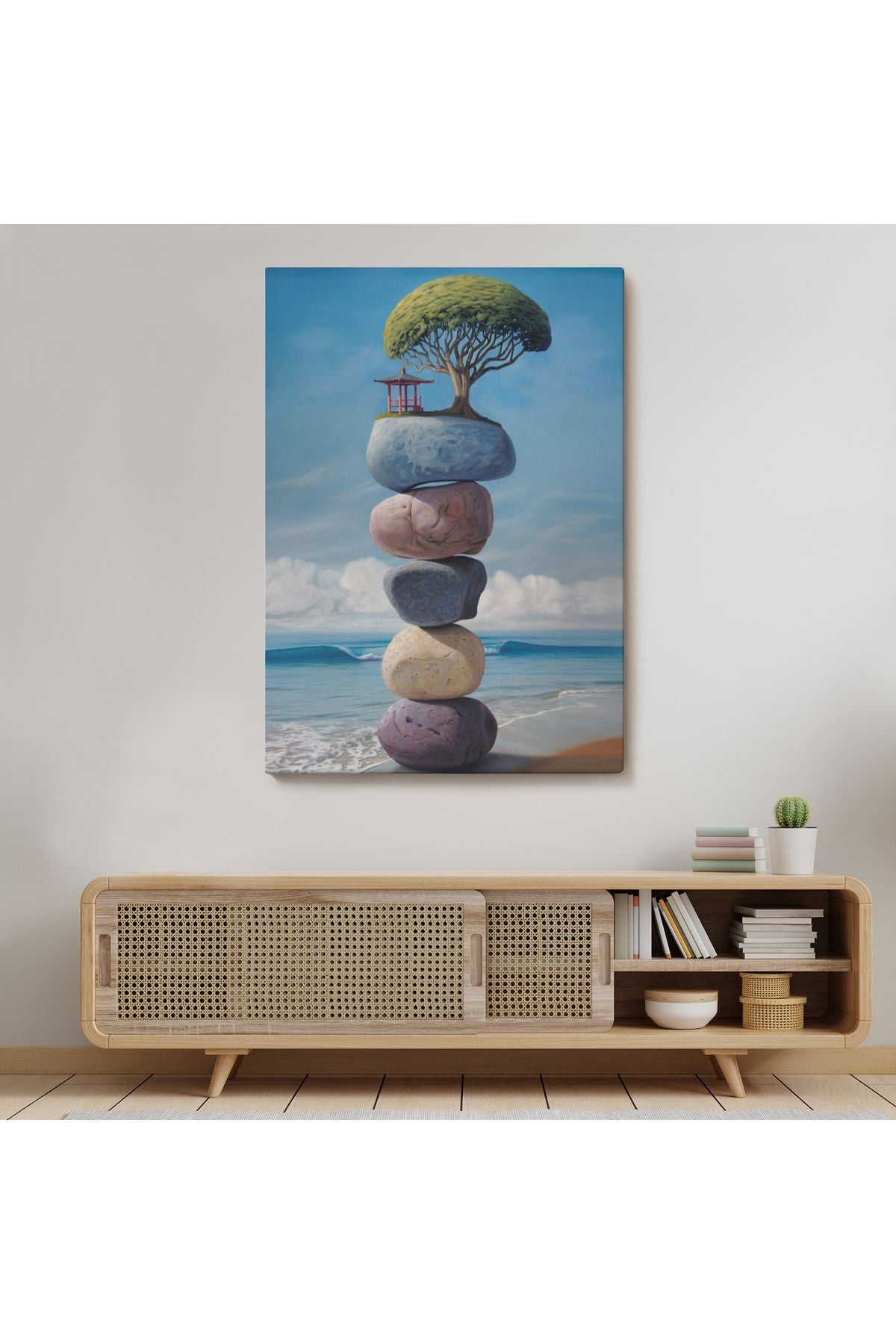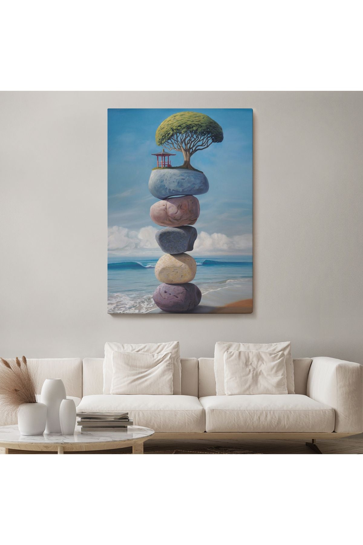 Sahilde Renkli Denge Taşları Kanvas Tablo, Terapi, Meditasyon, Yoga Baskısı-5322