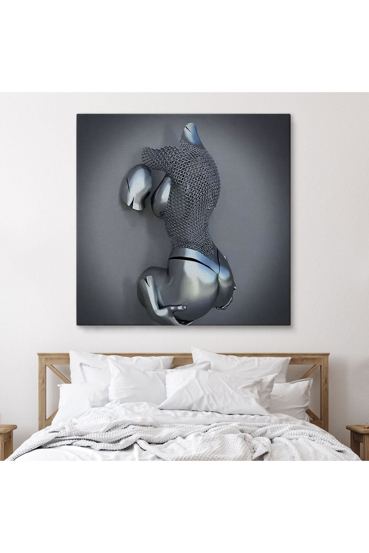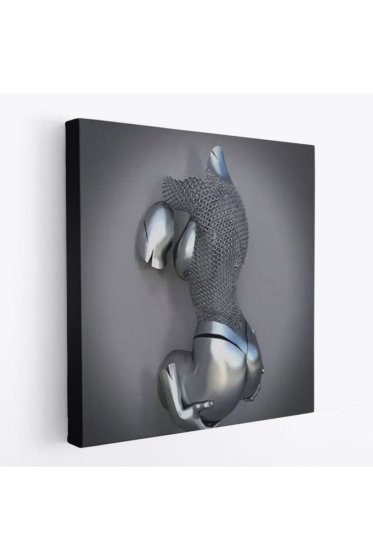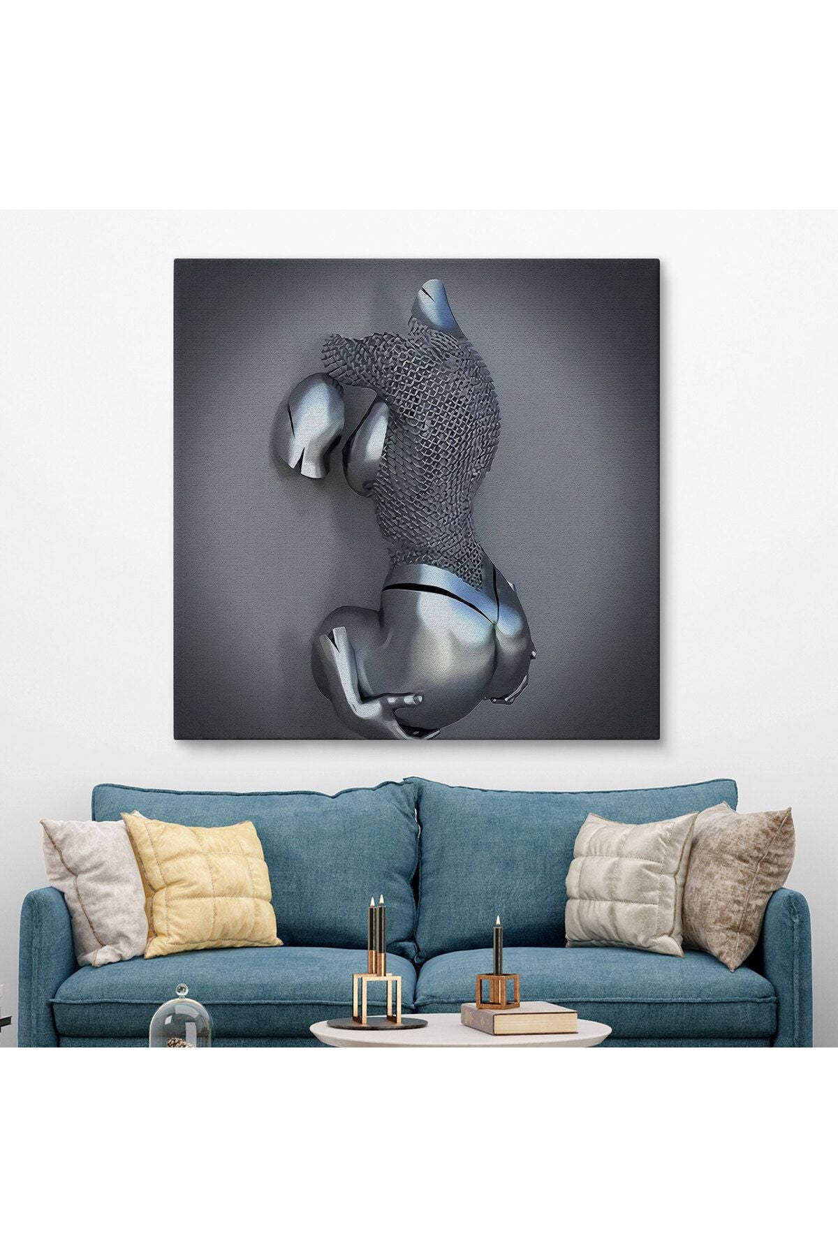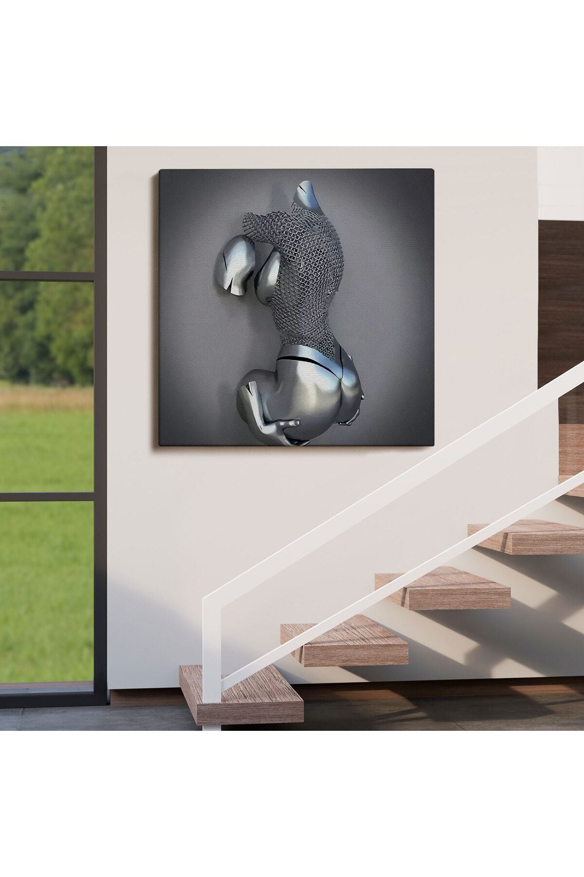 Kanvas Tablo, Gri Ve Gümüş Duvar Dekoru, Aşk Sanatı, 3D Efektli Gümüş İnsan-5349