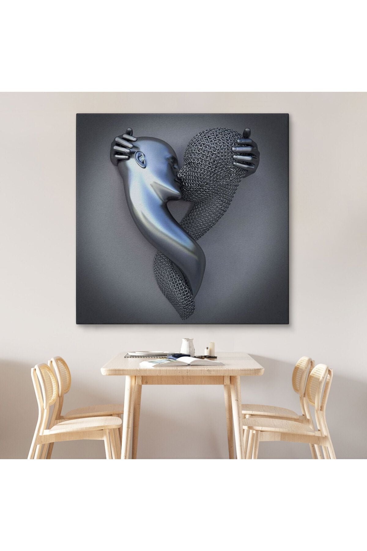 Metalik Efektli Kanvas Tablo, Romantik Beden, Aşk Sanatı, 3D Efektli Gümüş İnsan-5350