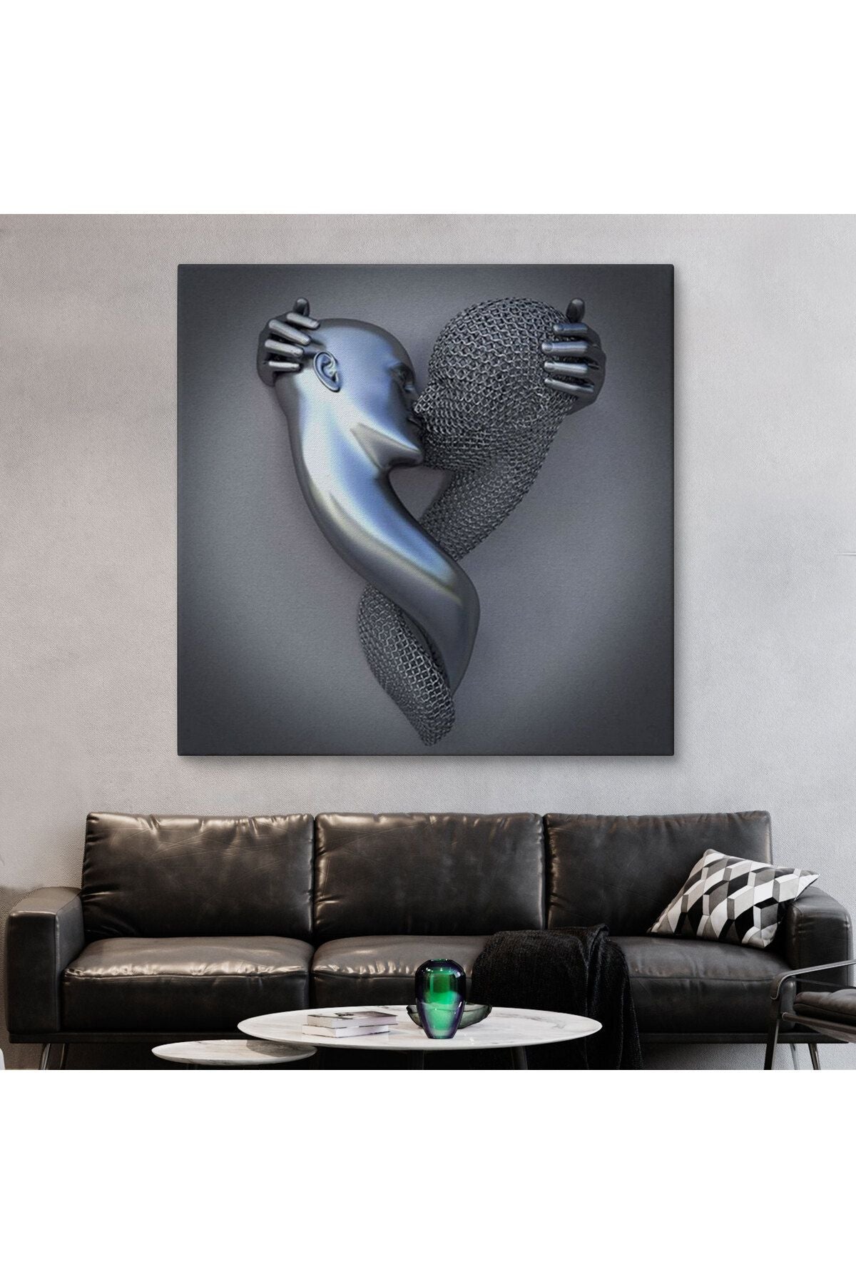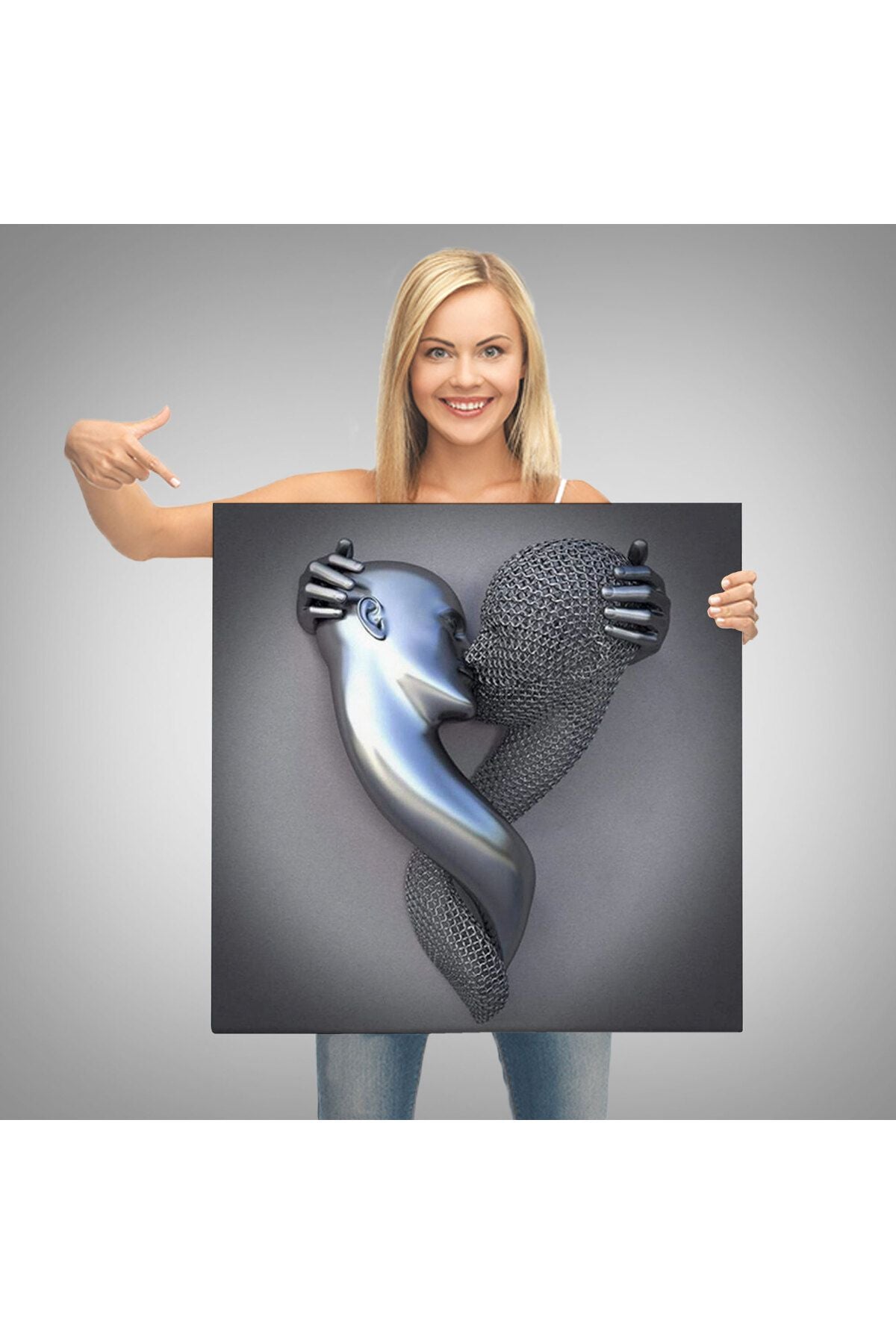 Metalik Efektli Kanvas Tablo, Romantik Beden, Aşk Sanatı, 3D Efektli Gümüş İnsan-5350
