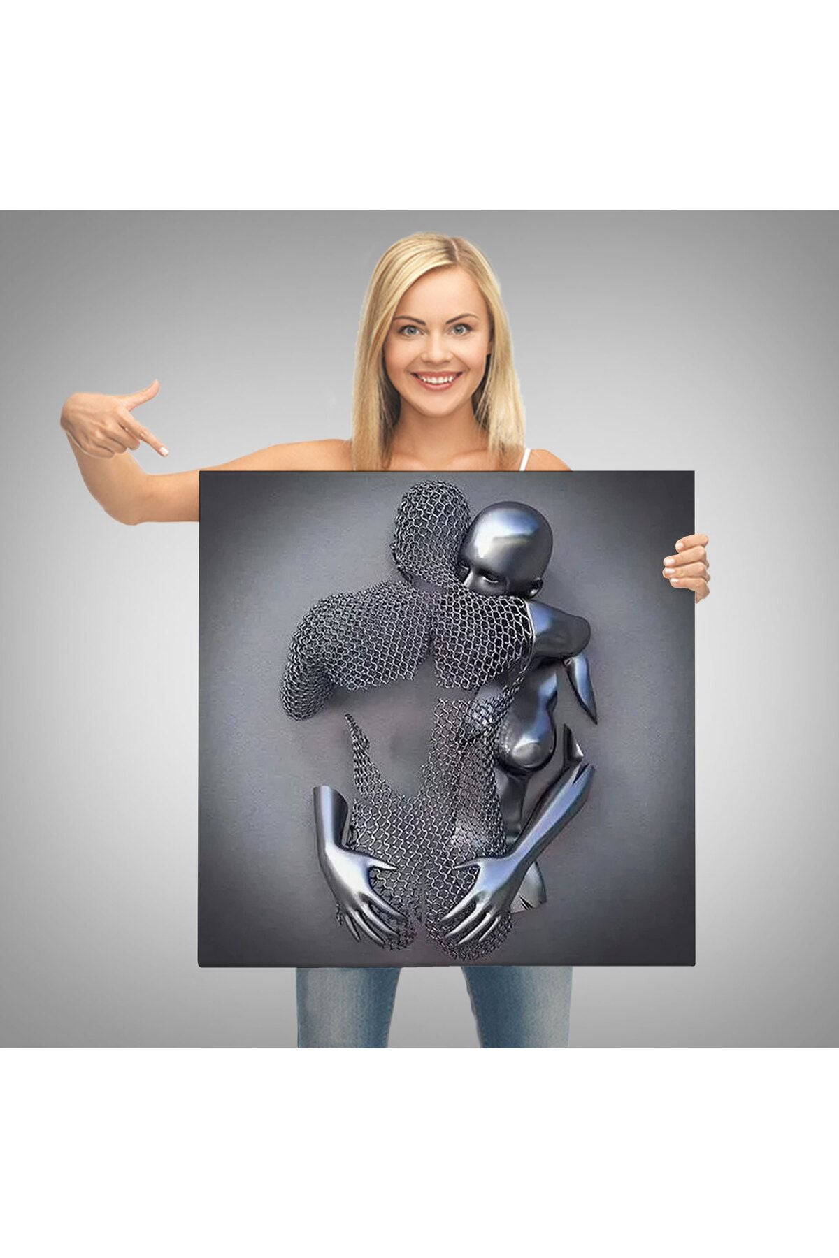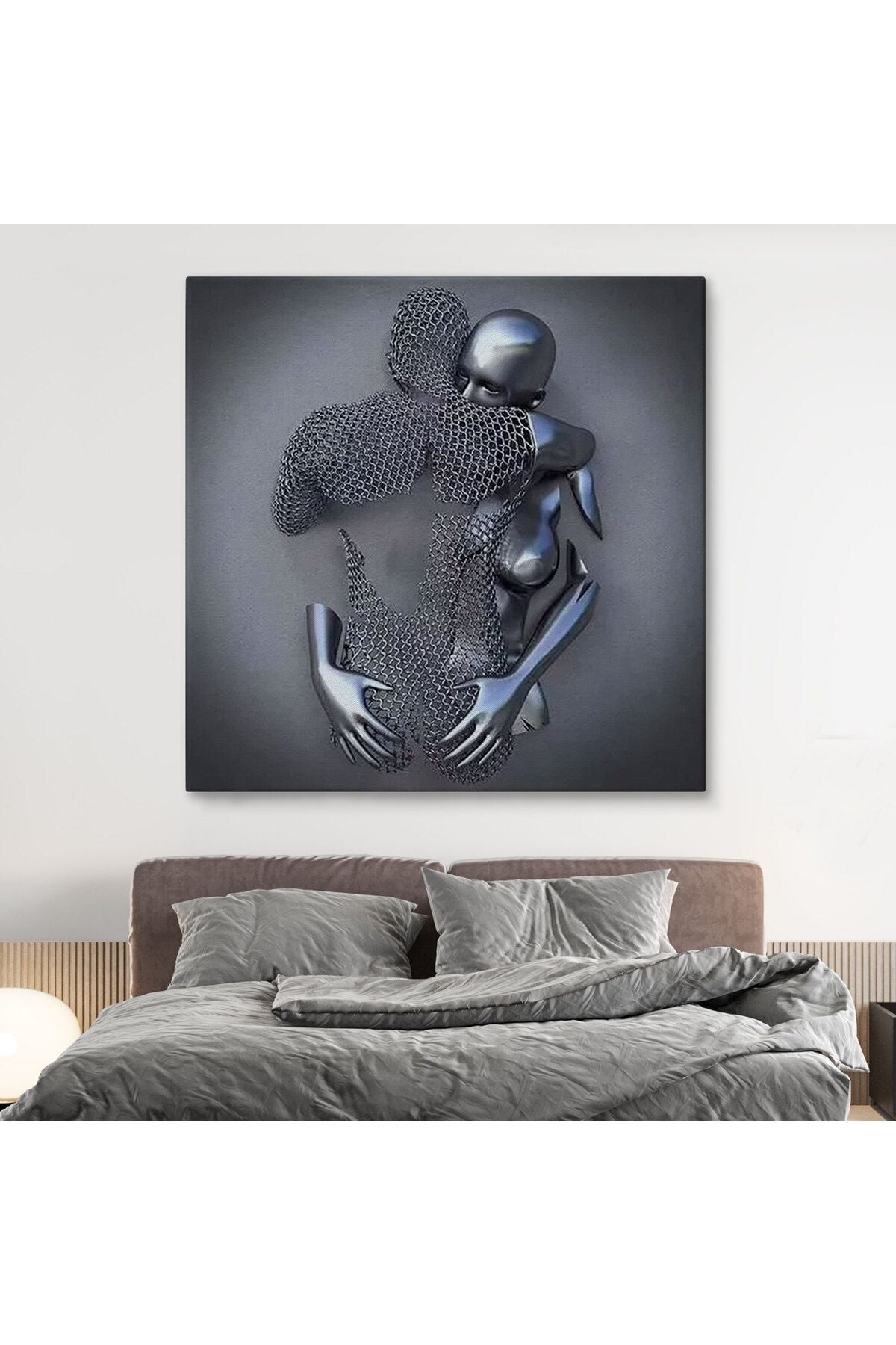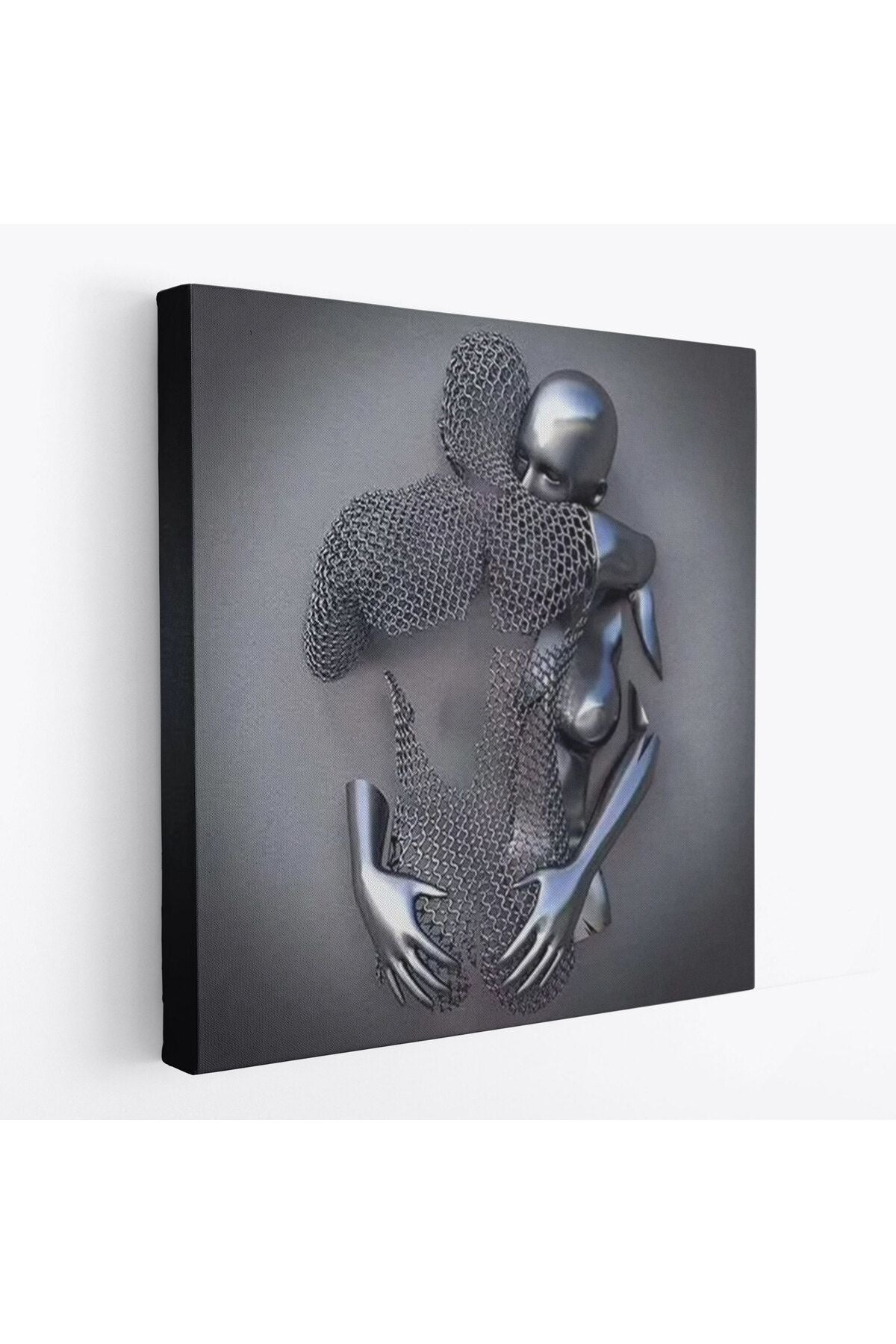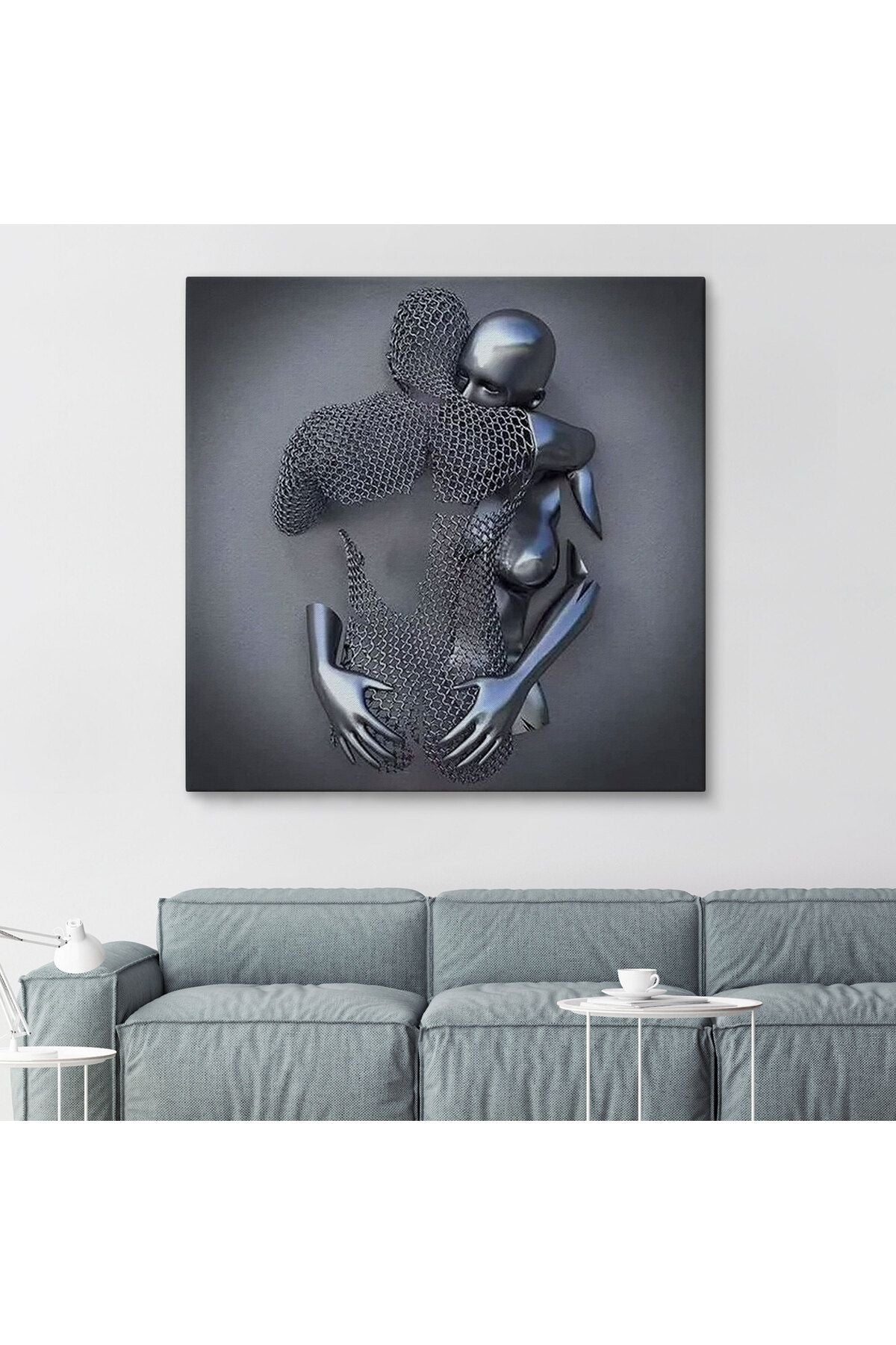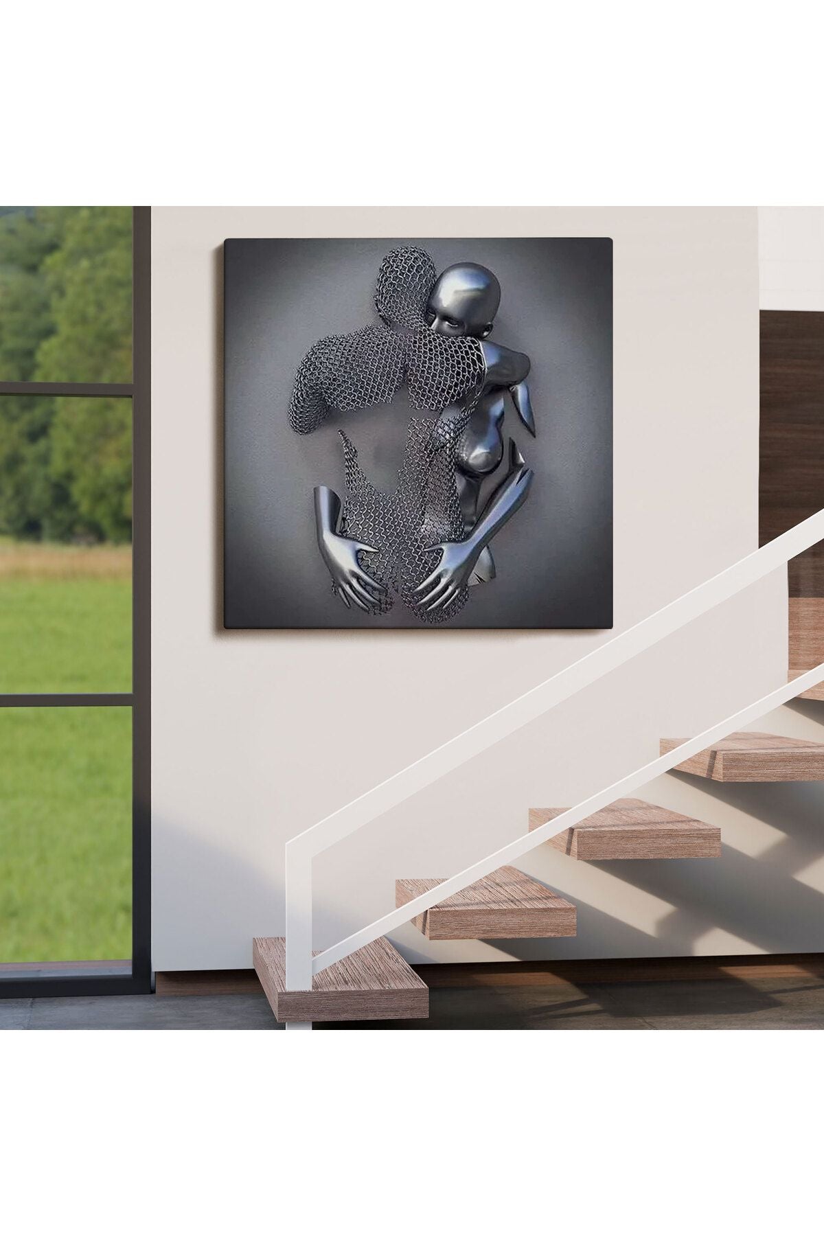Kanvas Tablo Gri ve Gümüş Duvar Dekoru, Metalik Efektli Kanvas Tablo-5356