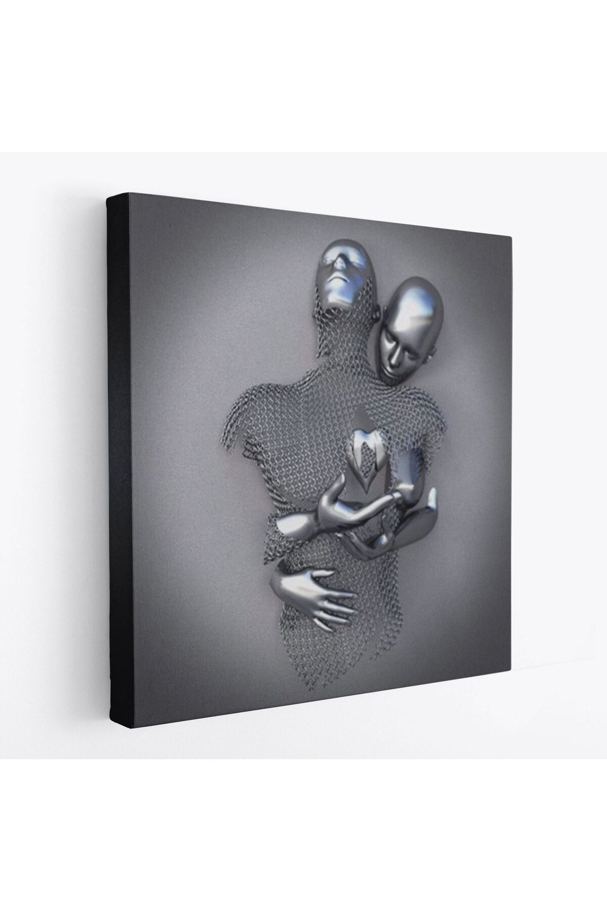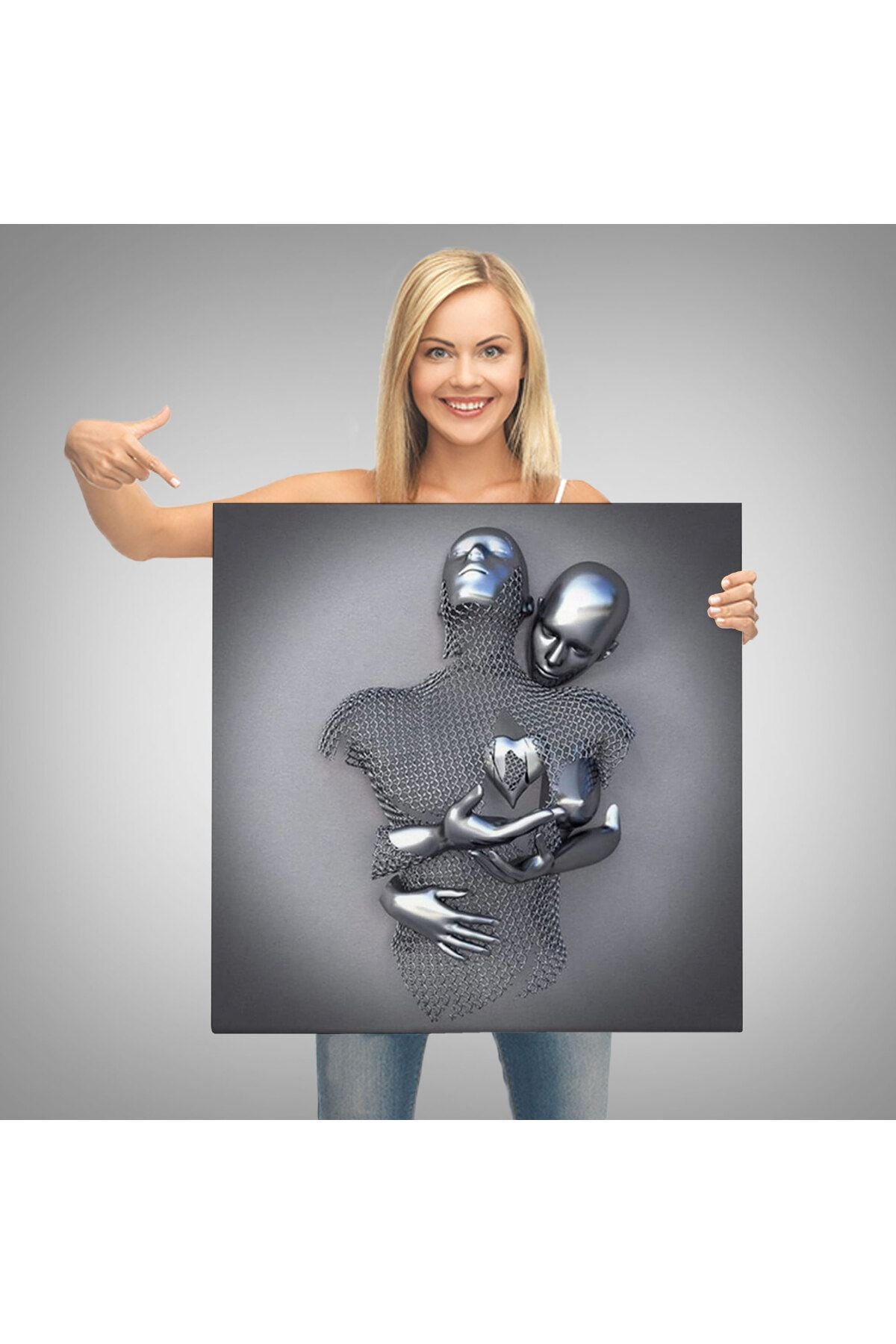 Modern Duvar Dekoru, Romantik Beden, Aşk Sanatı, 3D Efektli Gümüş Kanvas Tablo-5358
