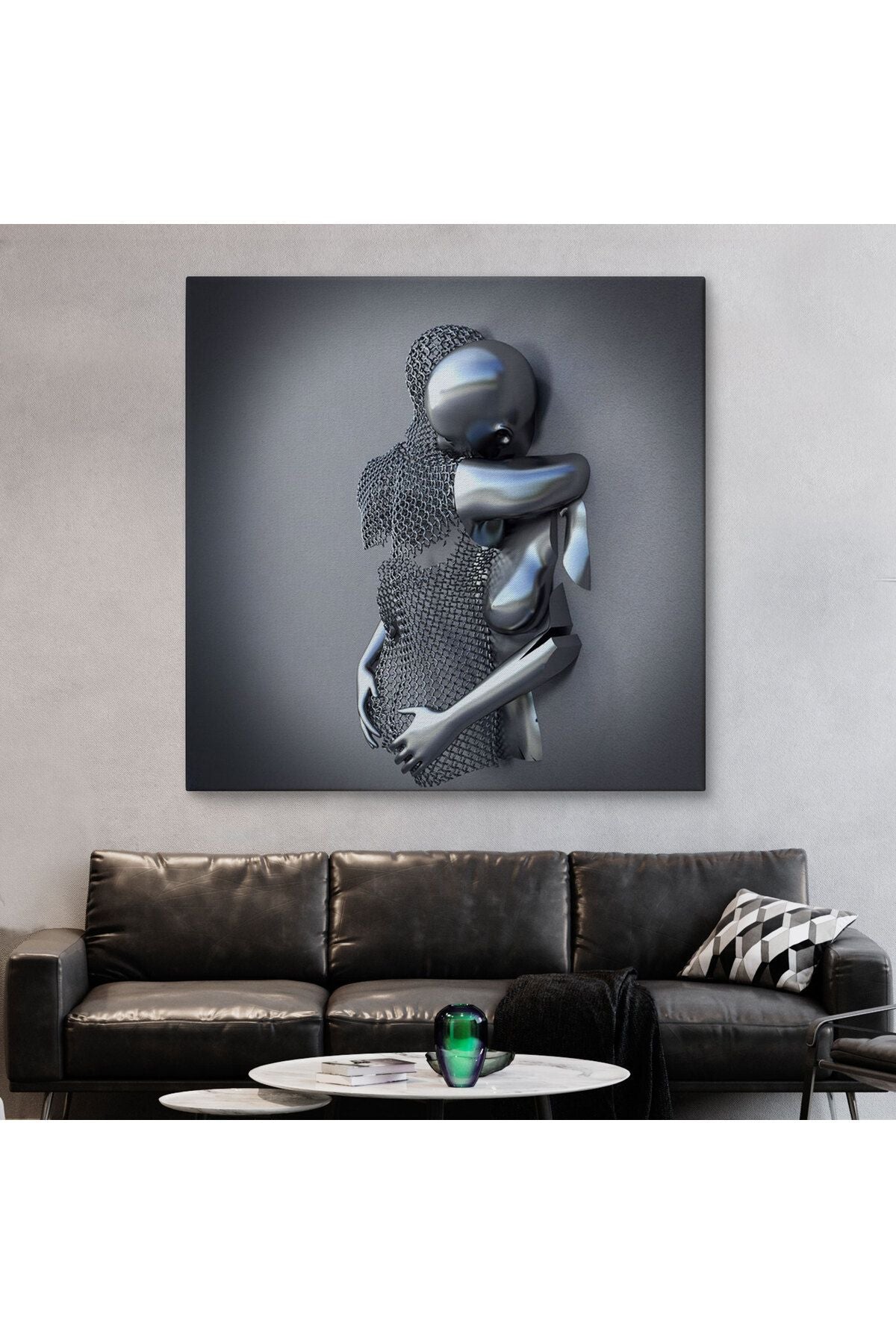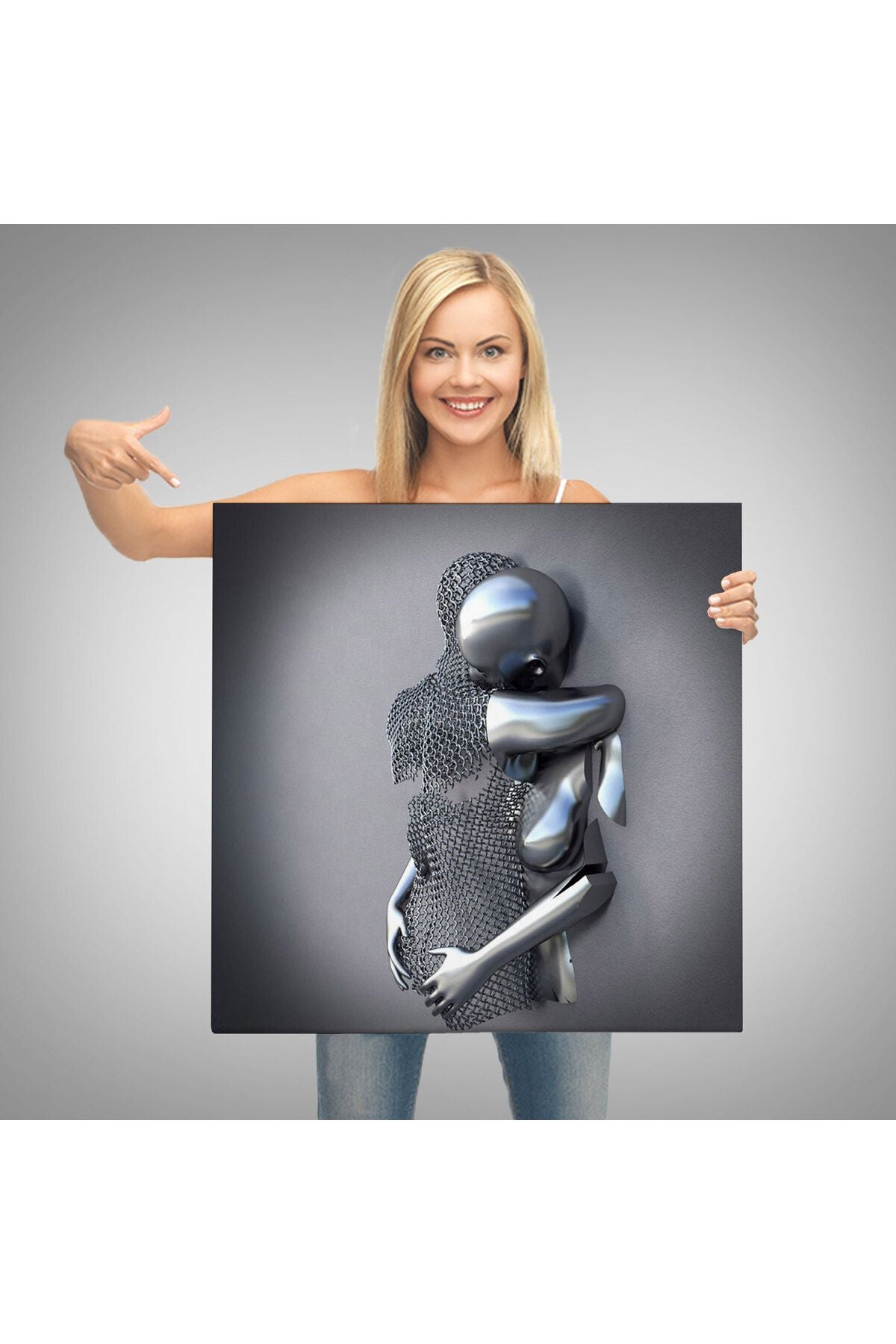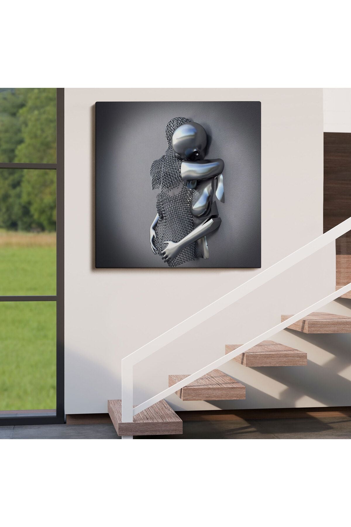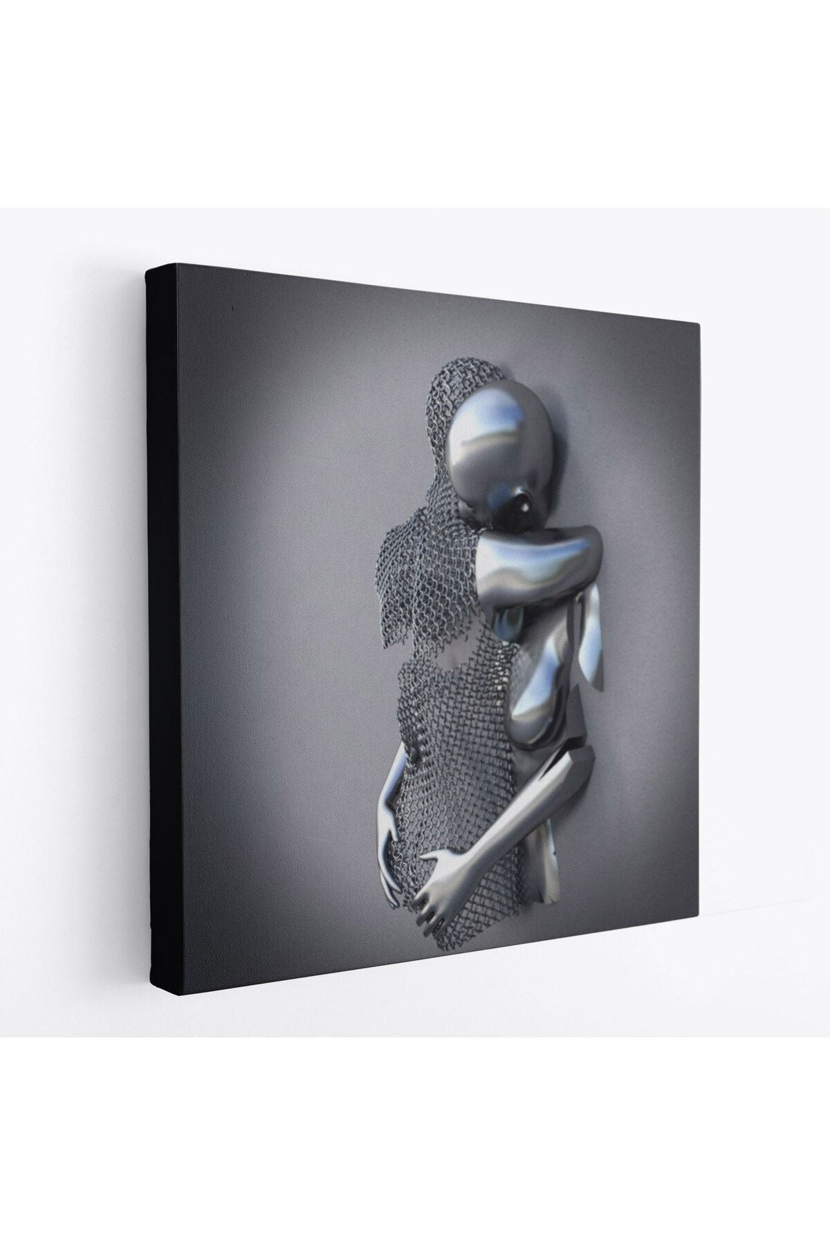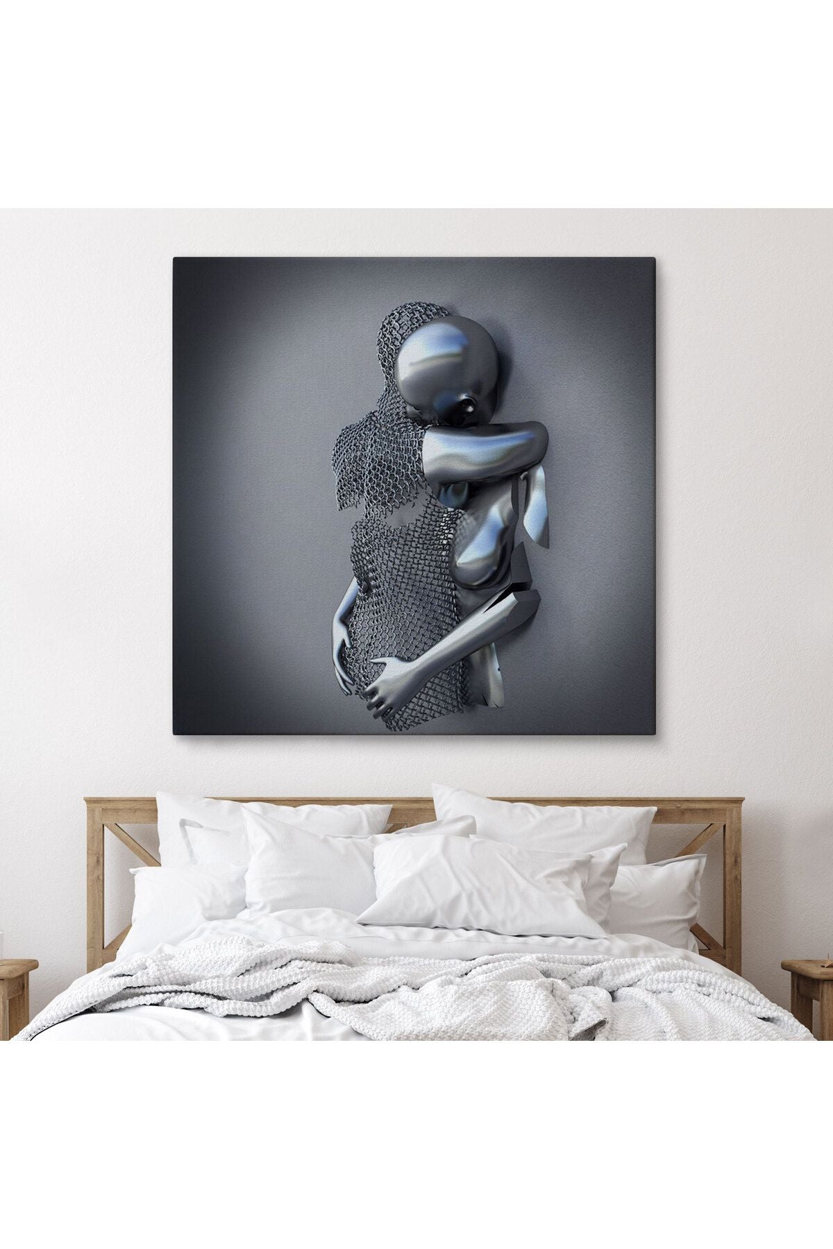 Kanvas Tablo, Gri ve Gümüş Metalik Efektli Modern Aşk Sanatı-5363