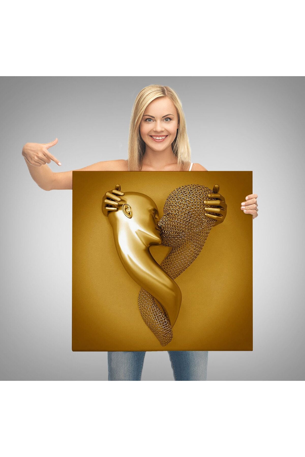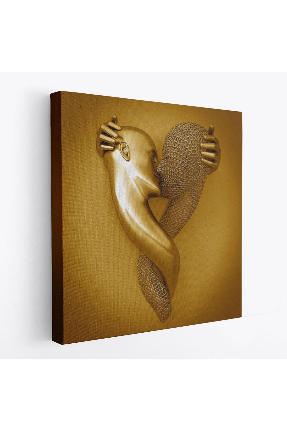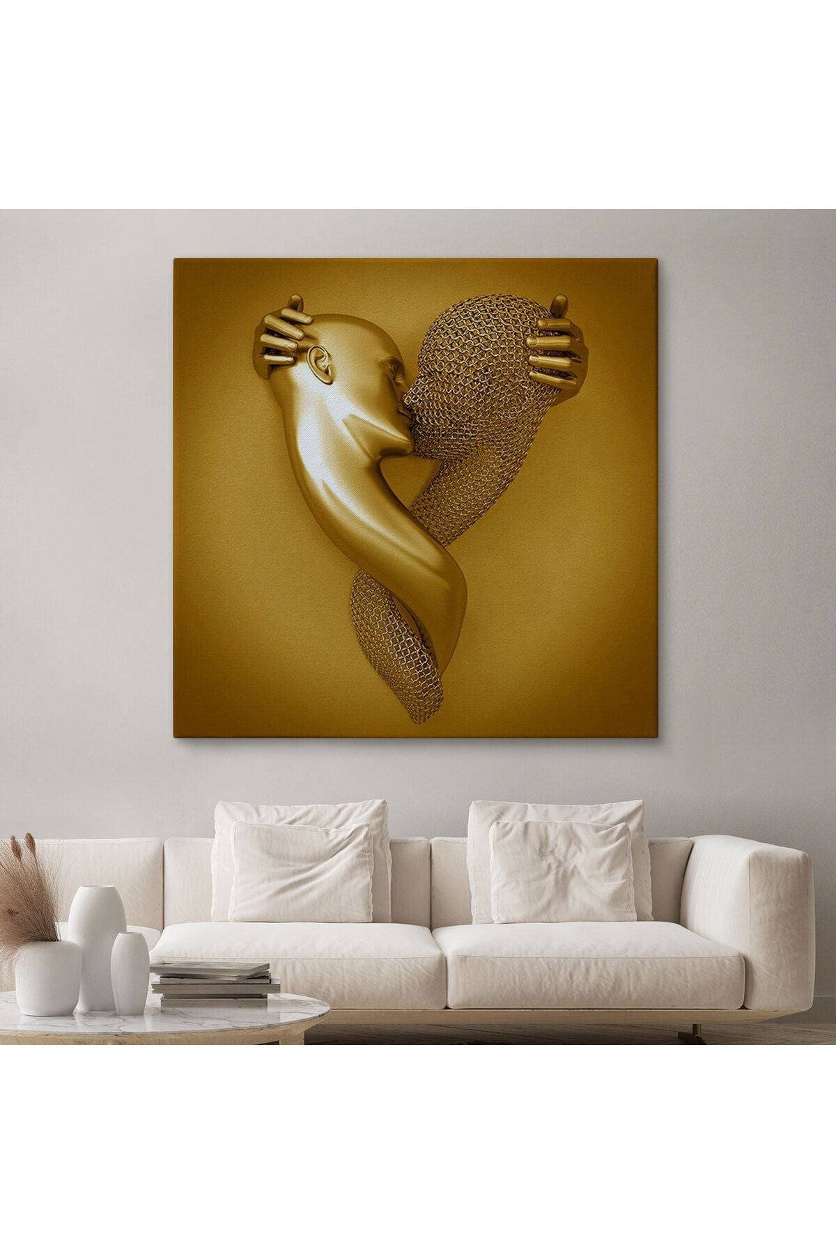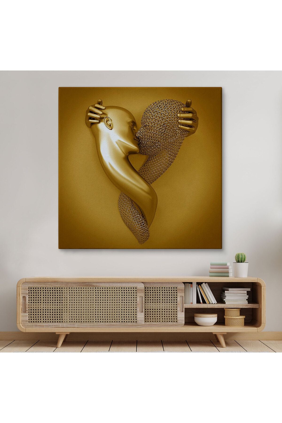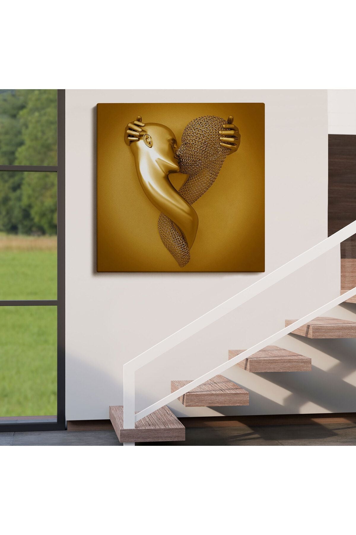 KanvasTablo, Aşk Sanatı Altın Duvar Dekoru, Altın Efektli 3D Kanvas Tablo-5367