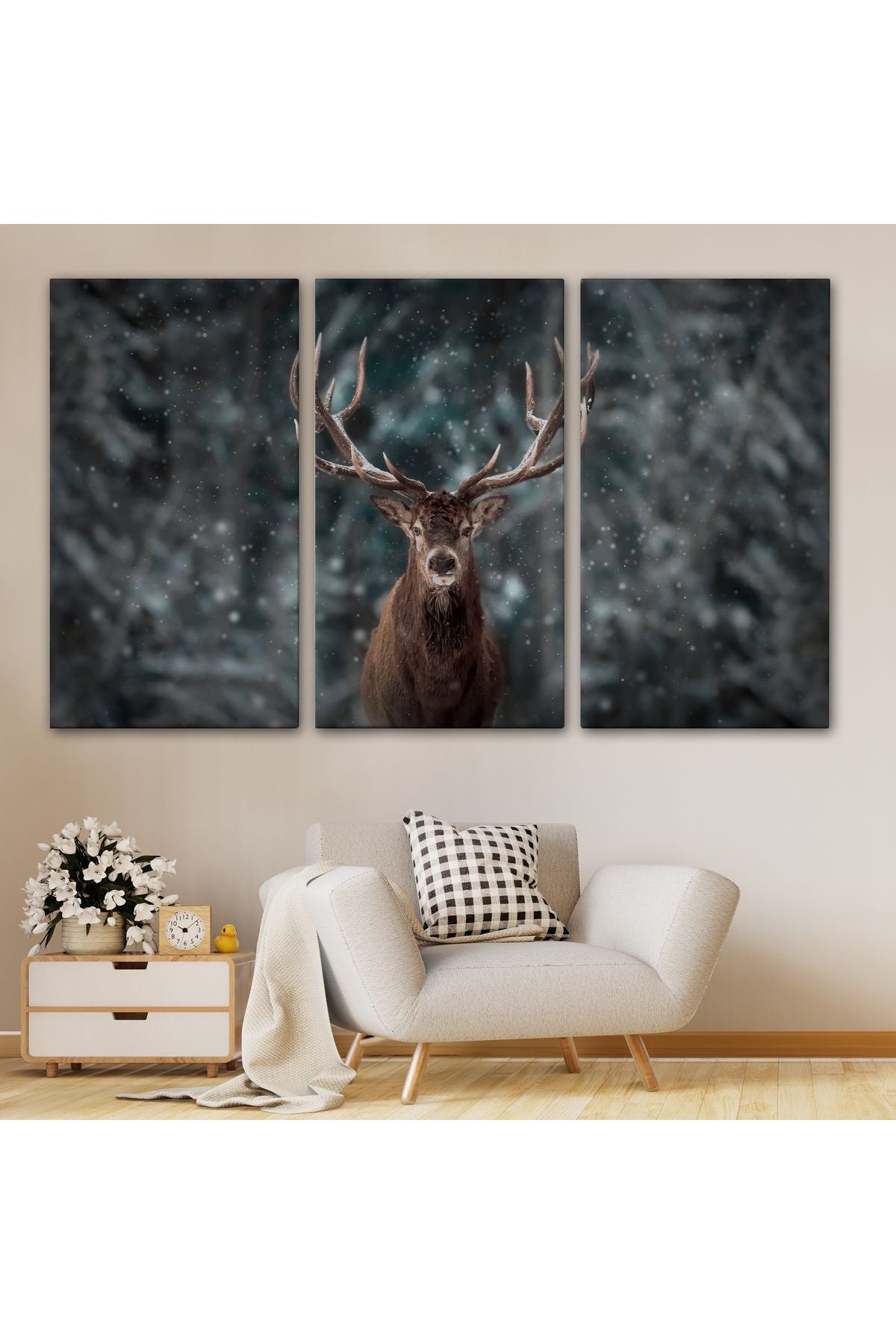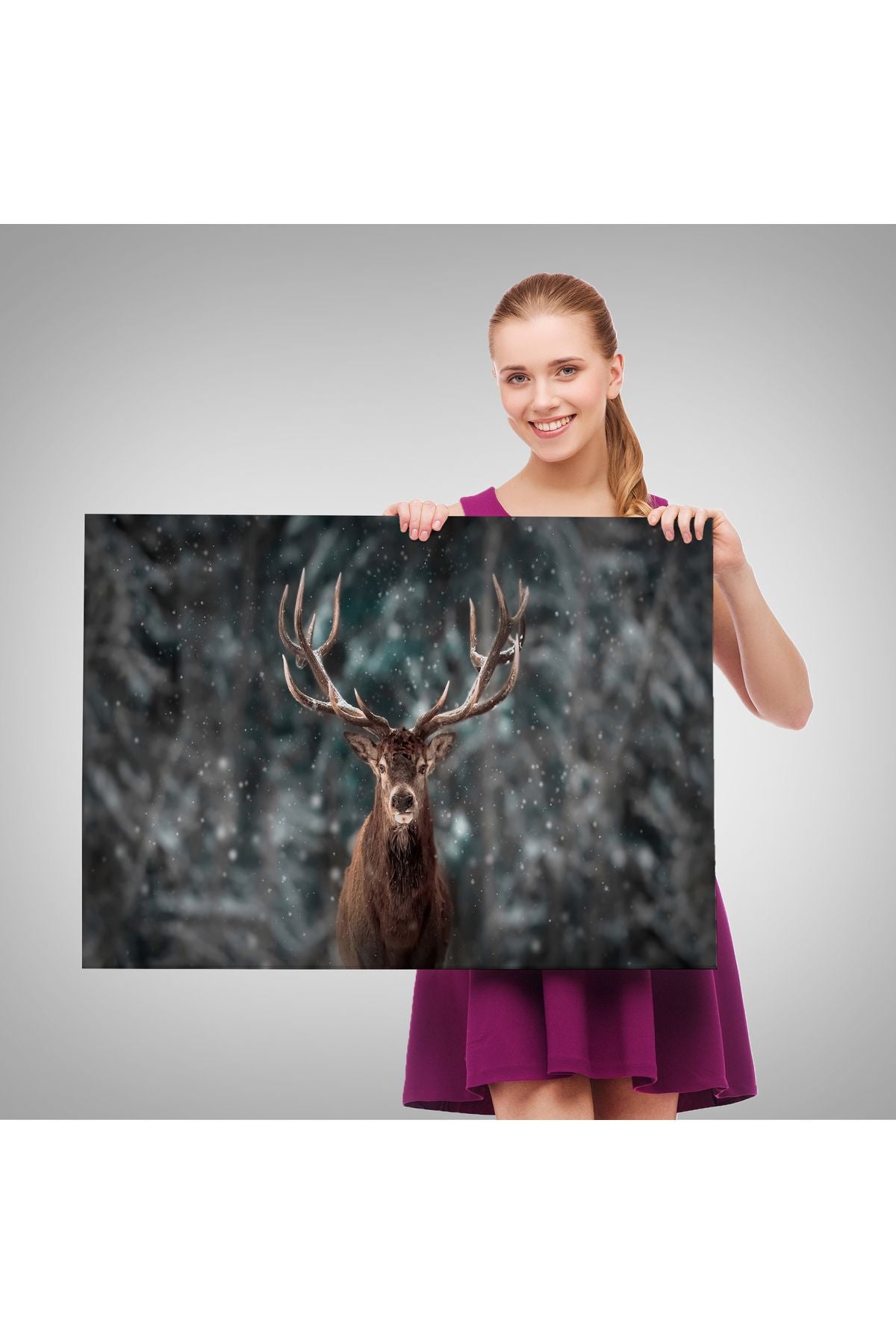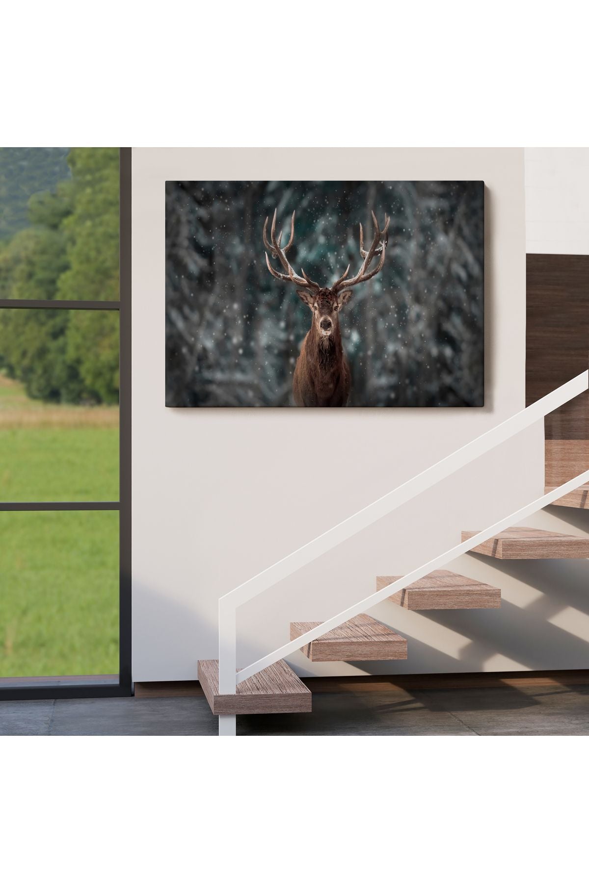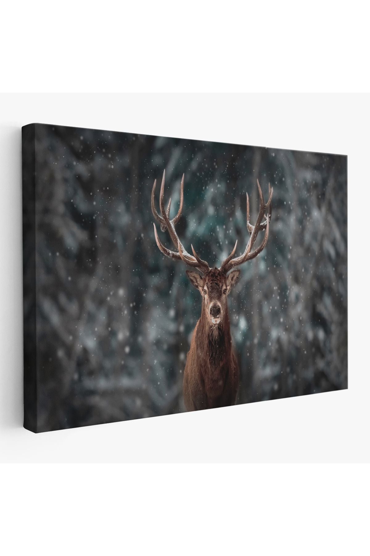 Ren Geyiği ve Kar Kanvas Tablo, Ren Geyiği Kış Ormanı Tablo-5370