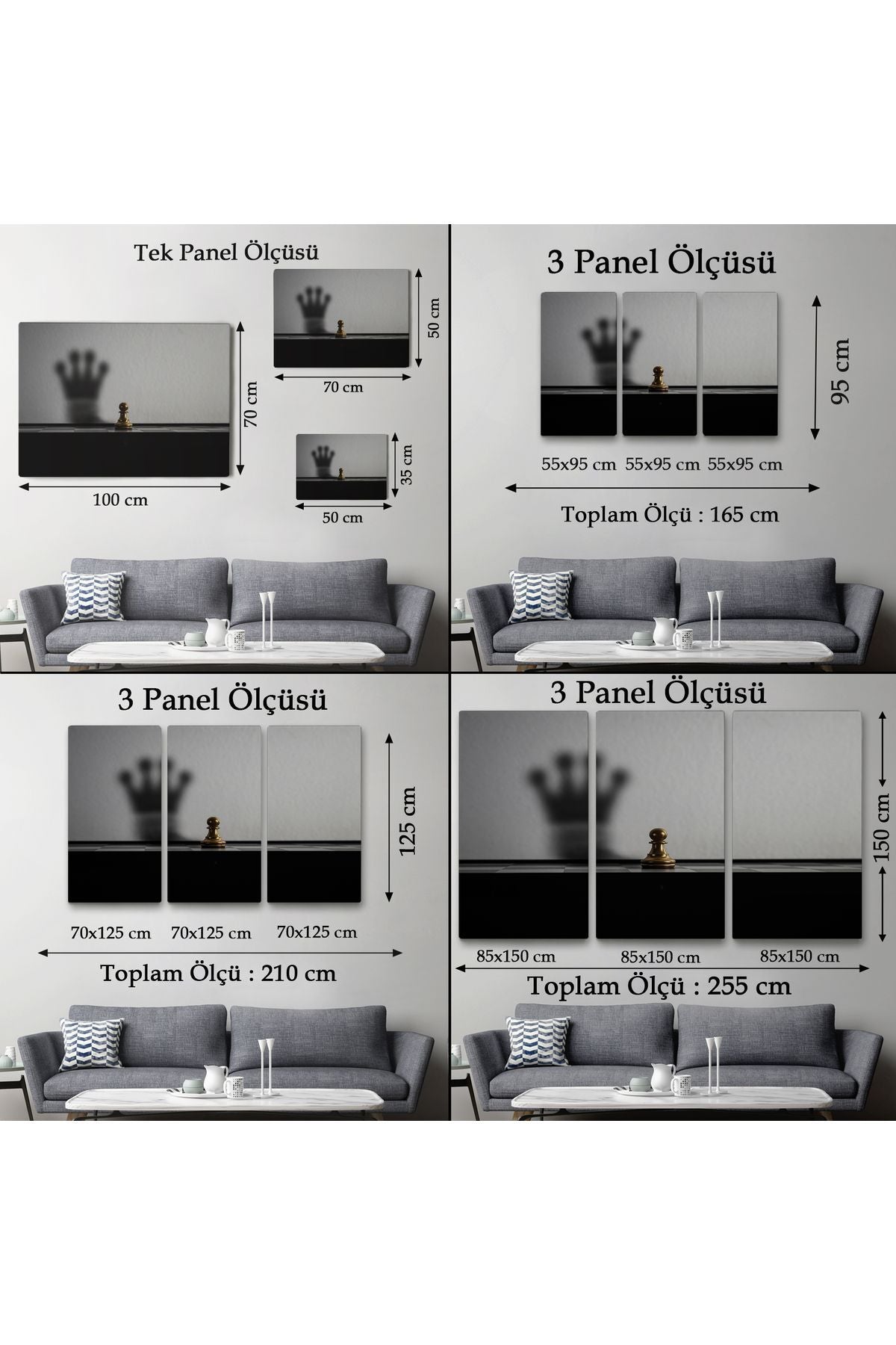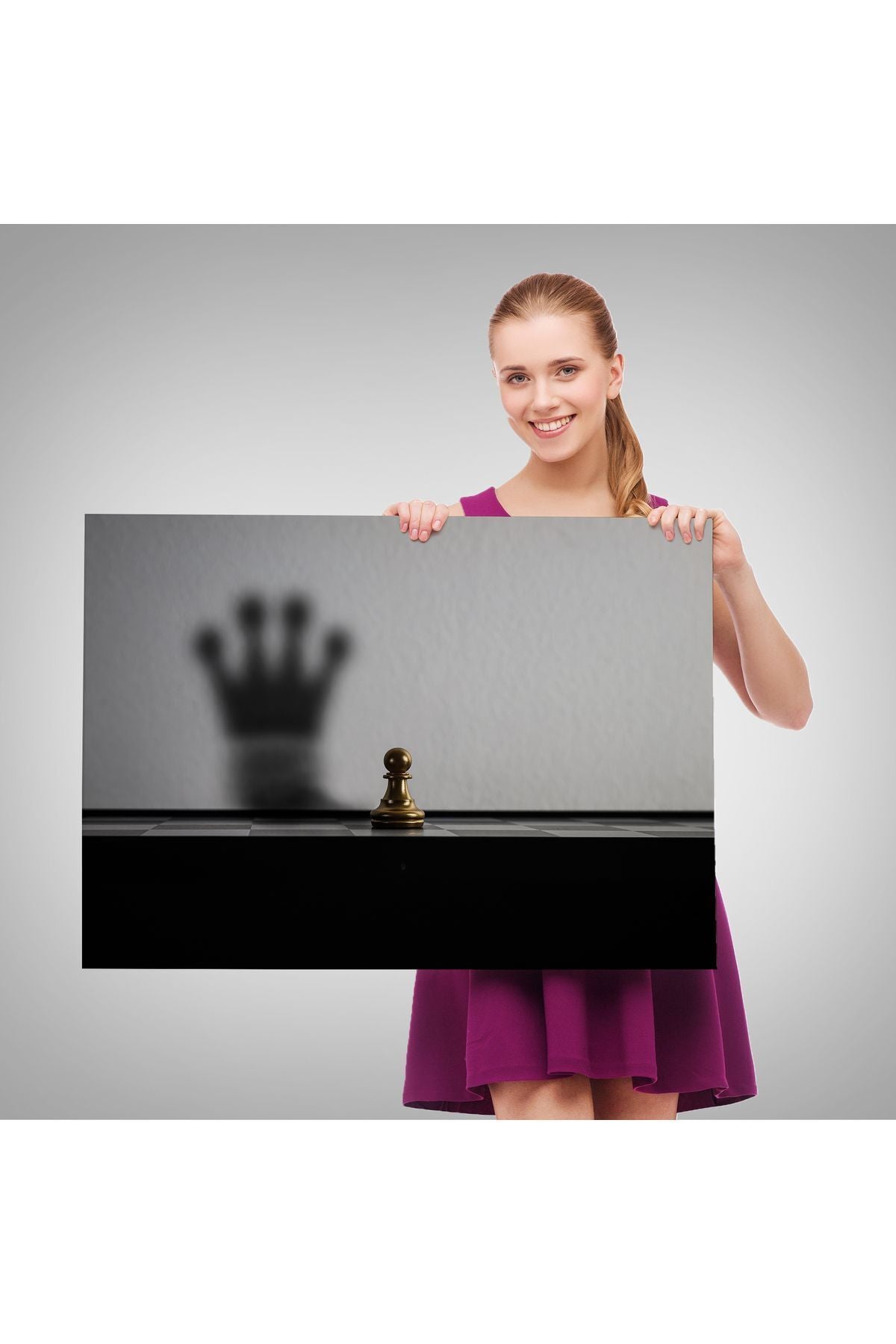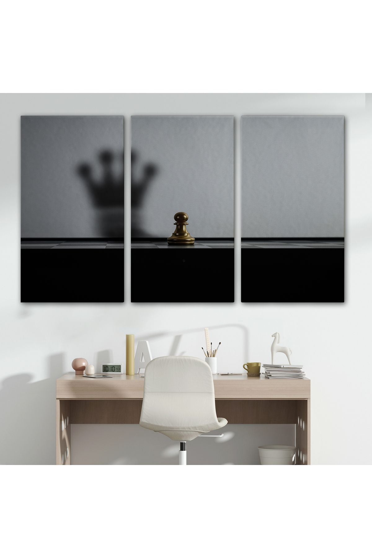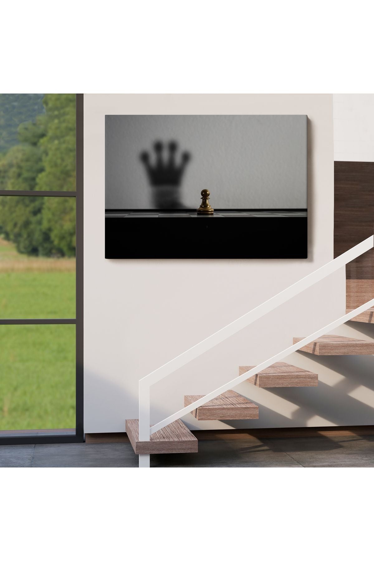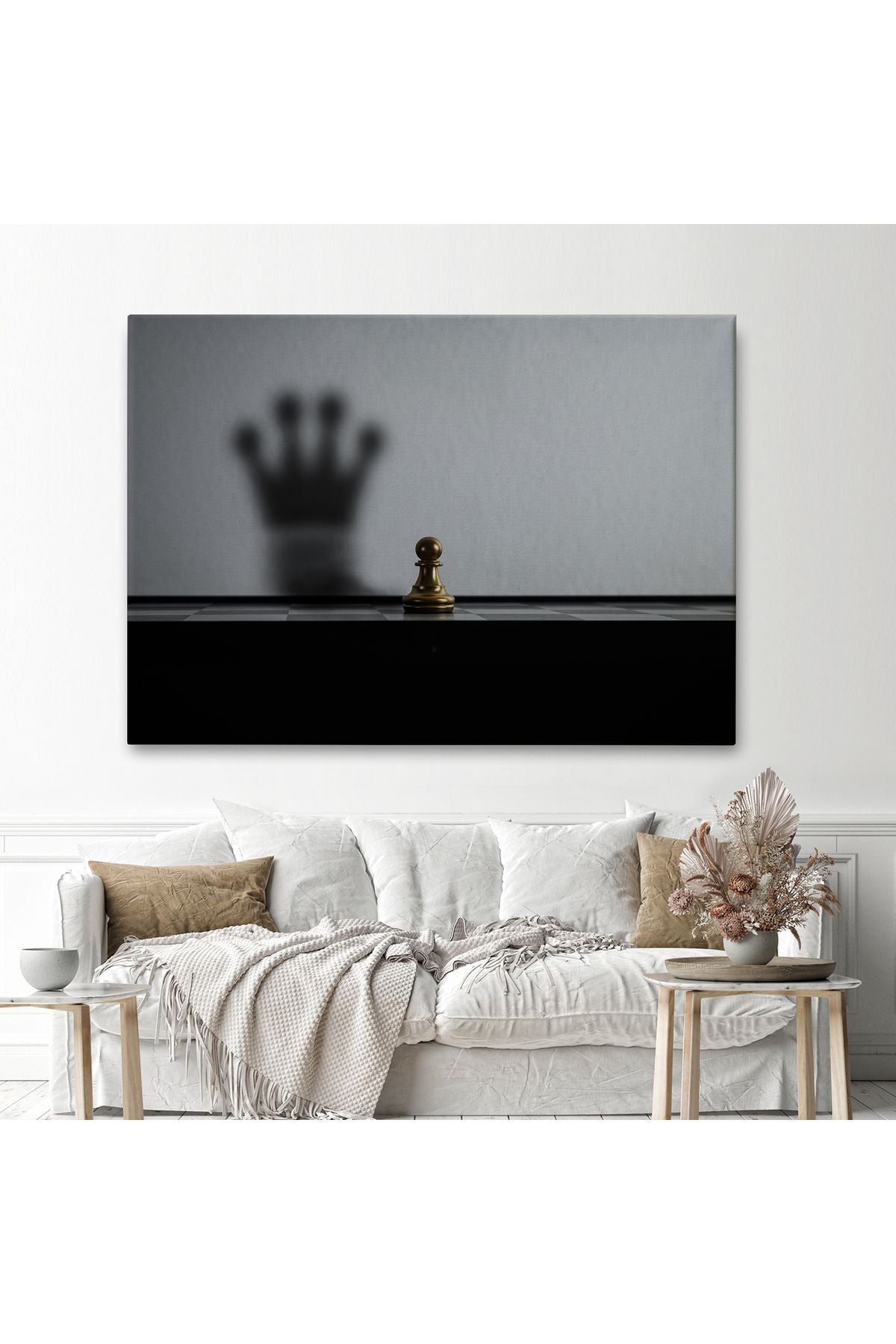 Satranç Gölgesi Taç Kanvas Duvar Sanatı, Yurt ve Ofis Dekoru-5390