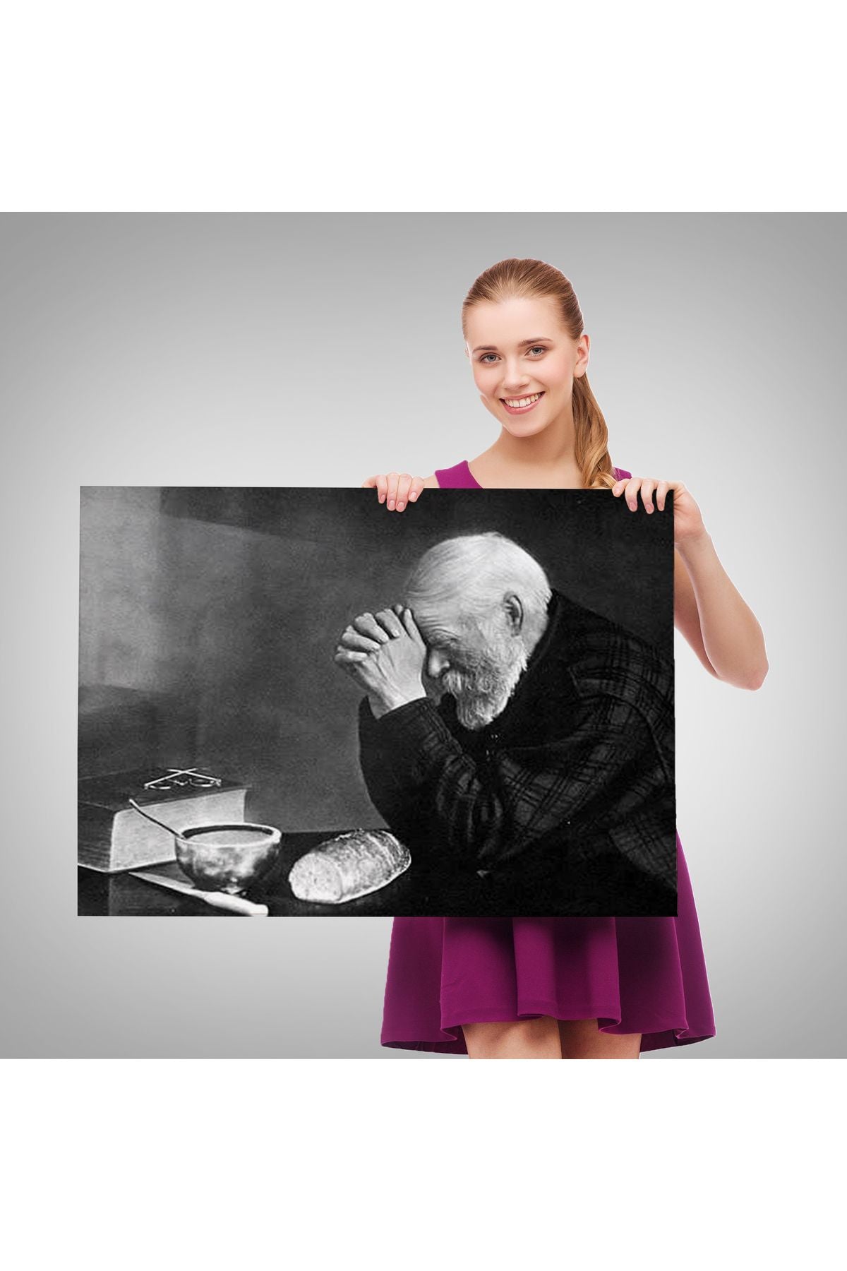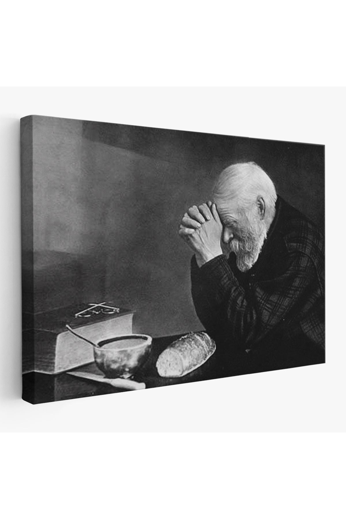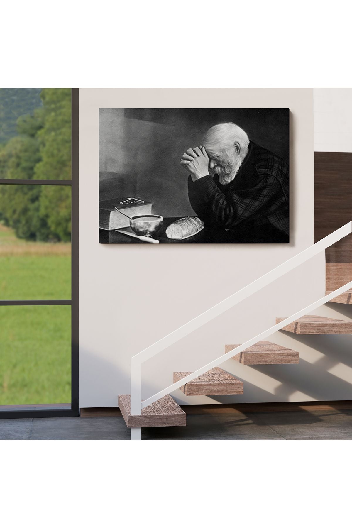 Eric Enstrom Grace Adam Ekmek Üzerinde Dua Ediyor Kanvas Tablo, Siyah Beyaz Baskı-5394