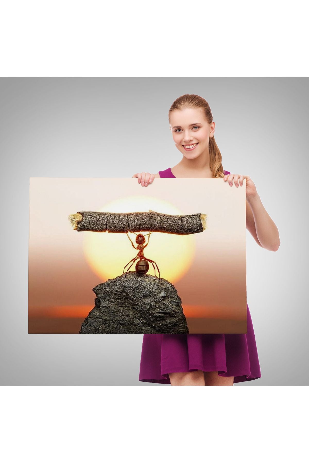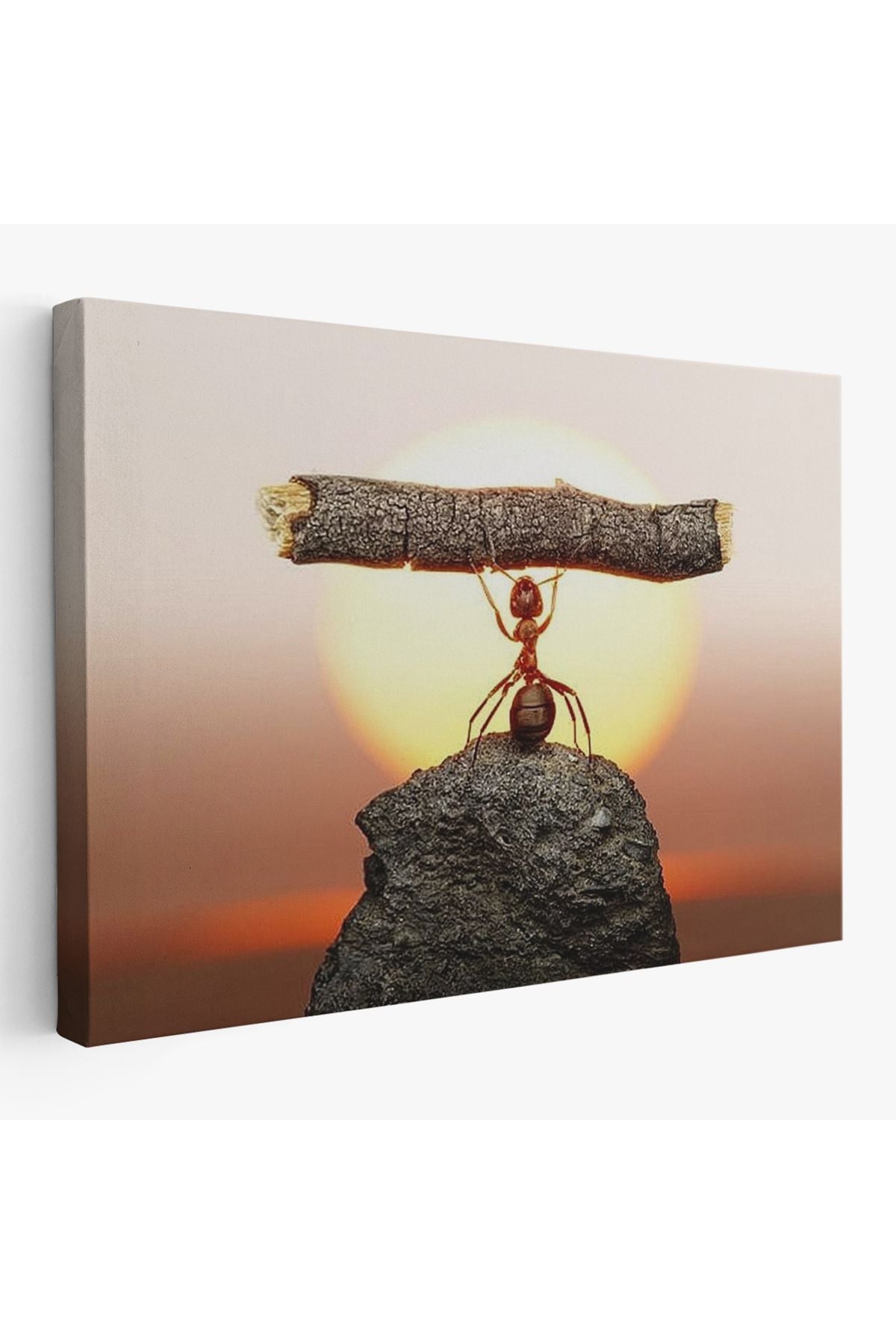Güçlü Karınca Kanvas Duvar Sanatı, Ağacı Kaldıran Karınca, Motivasyon Tablosu-5397