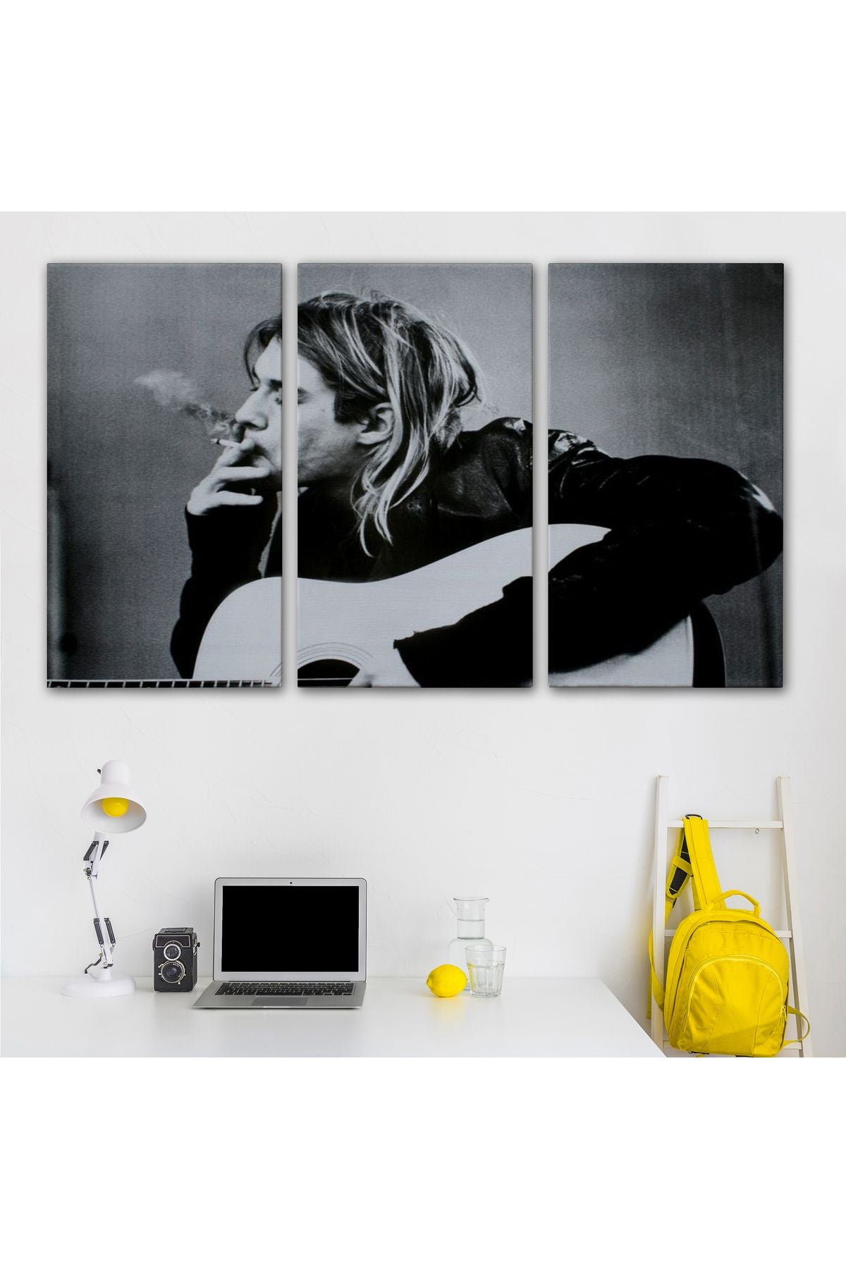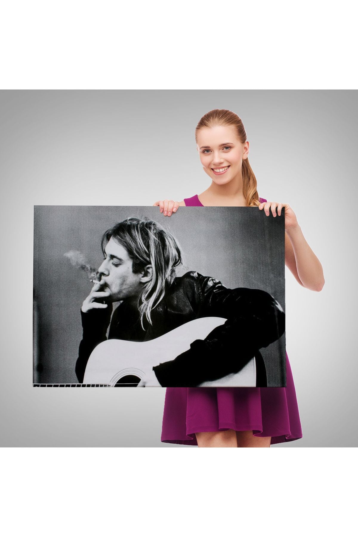 Kurt Cobain Sigara İçen Ünlü Baskı Duvar Sanatı Kanvas Tablo, Nirvana Baskı-5405