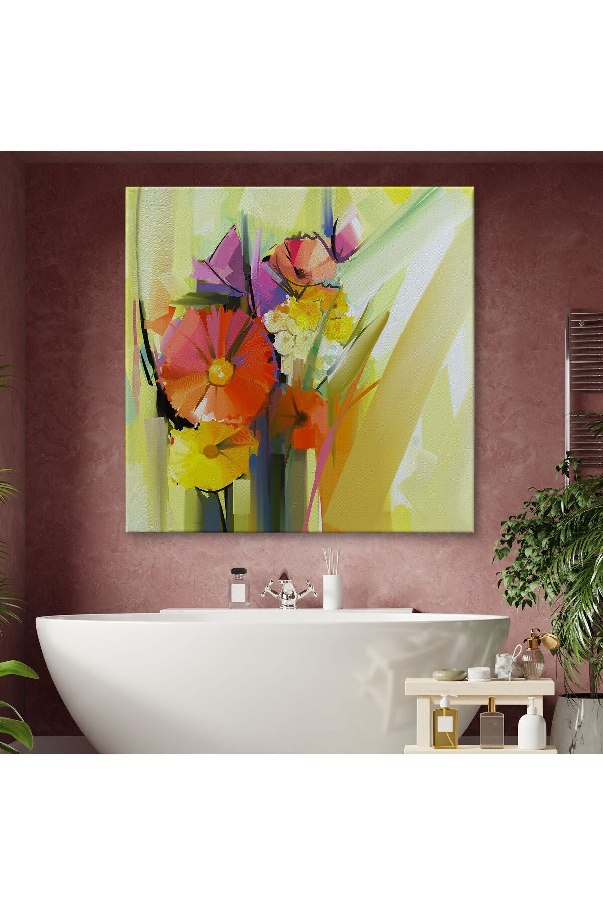 Soyut Çiçekler Yağlıboya Görünüm Dekoratif Kanvas Duvar Tablosu-5826