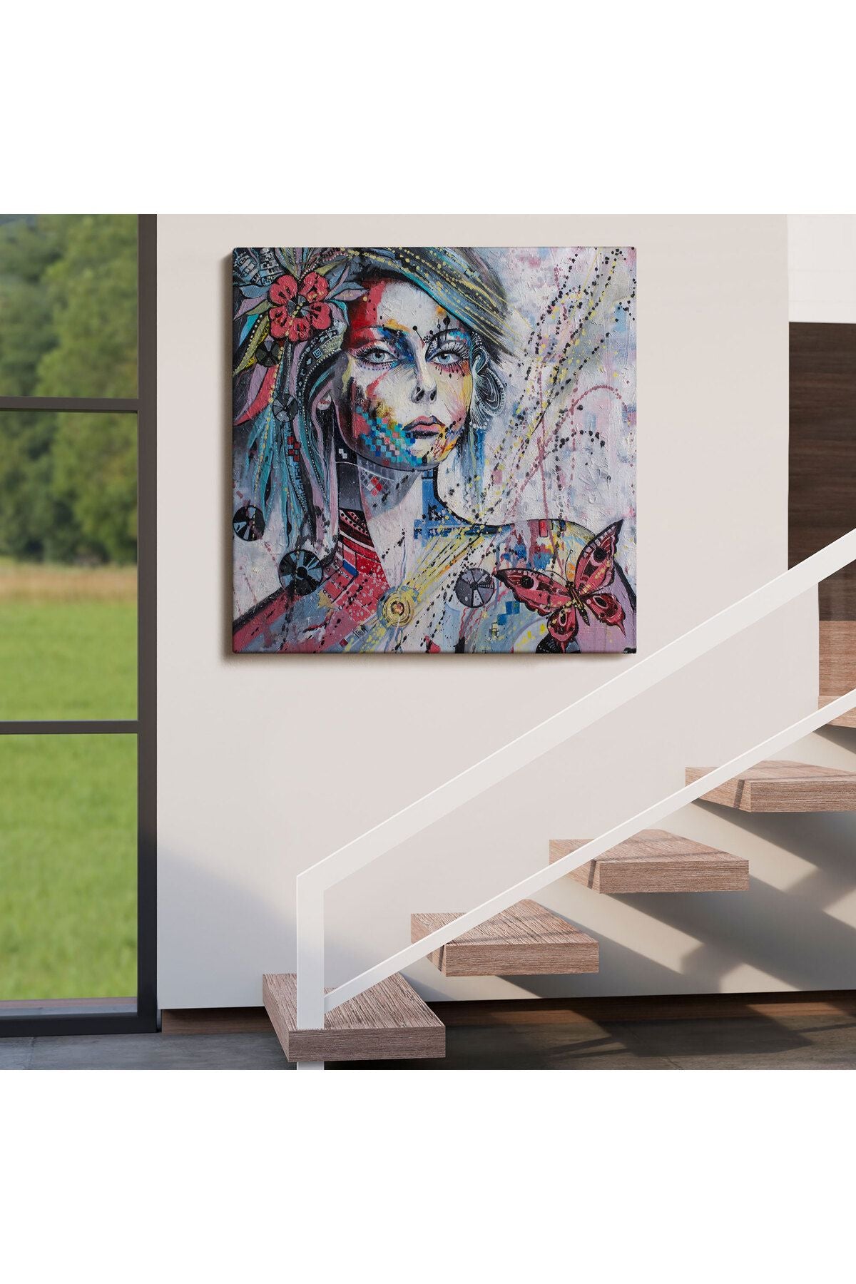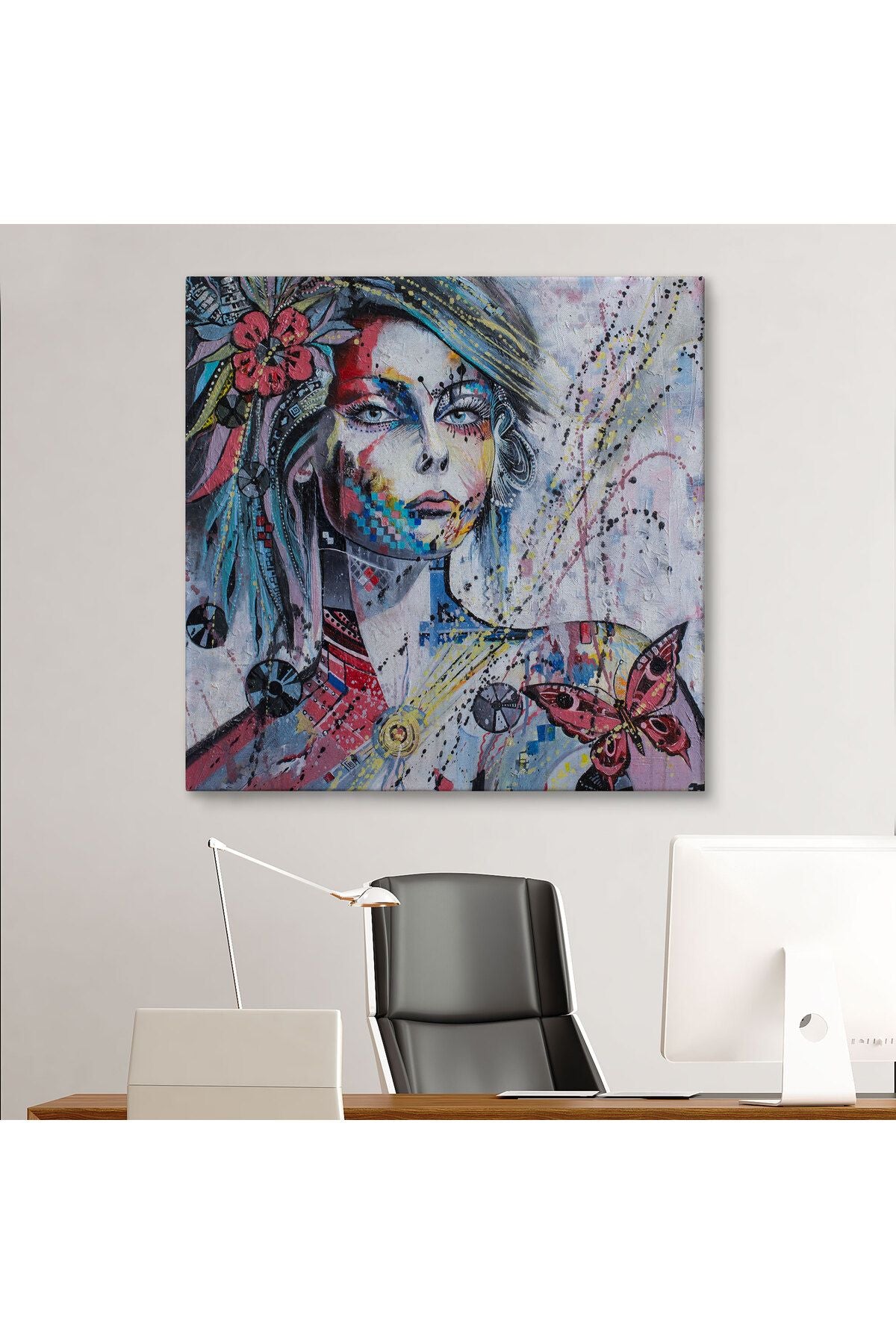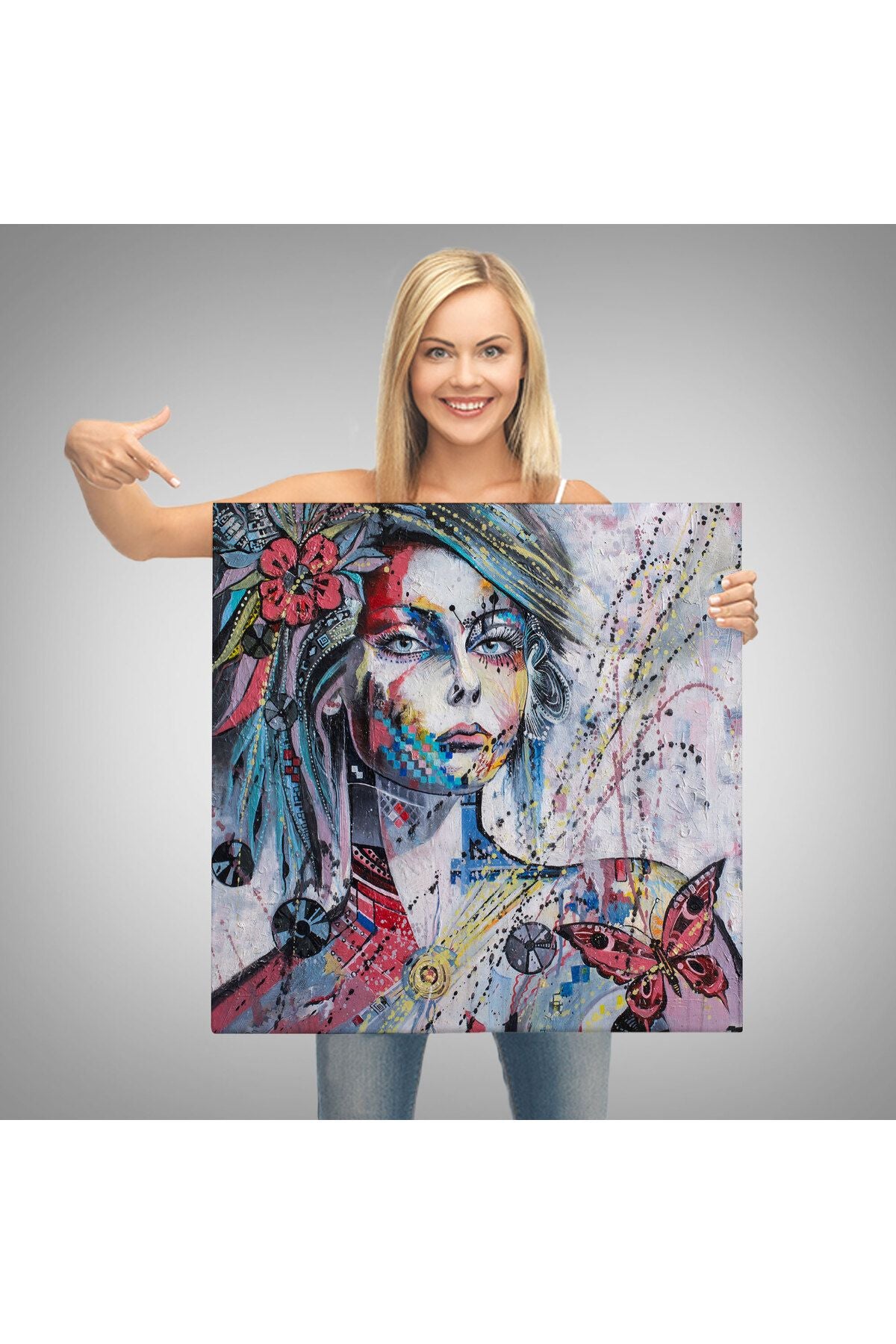 Çağdaş Tarz Kız Portresi Yağlıboya Görünüm Dekoratif Kanvas Duvar Tablosu-5829