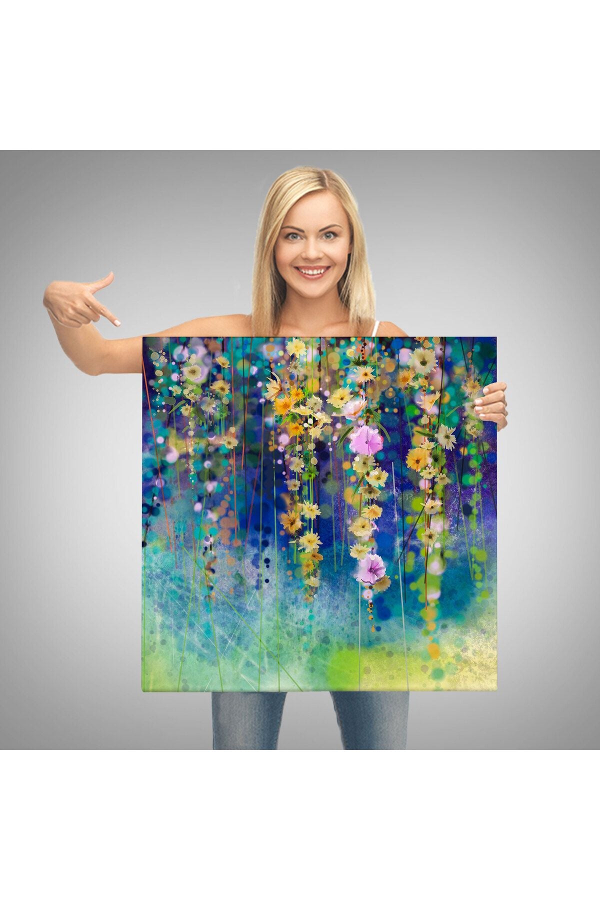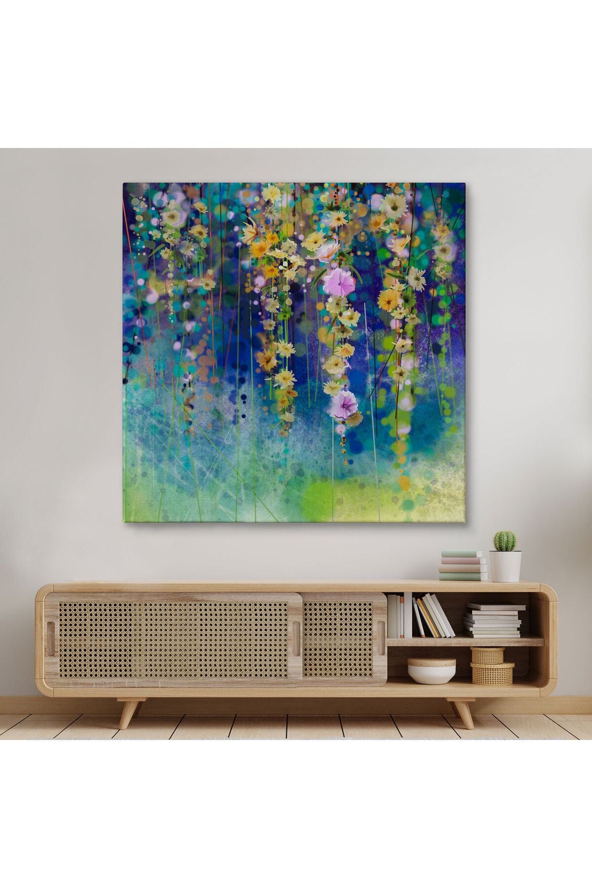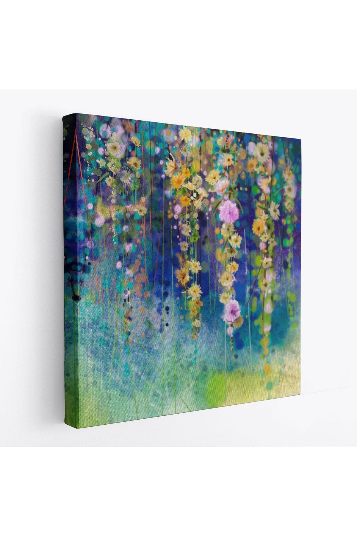 Soyut Çiçekler Suluboya Görünüm Dekoratif Kanvas Duvar Tablosu-5831