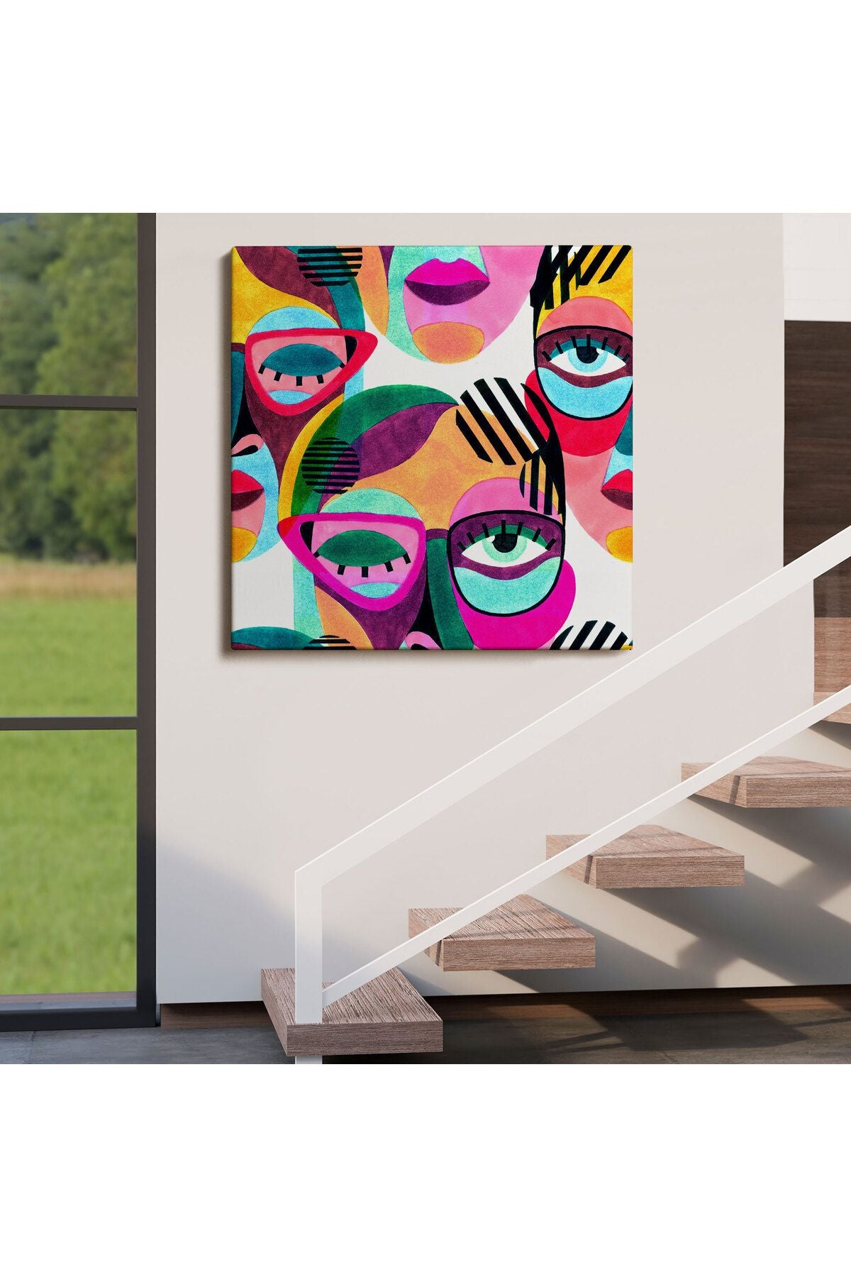 Modern Soyut Tarzda Gözlüklü Kadın Portresi Dekoratif Kanvas Duvar Tablosu-5841