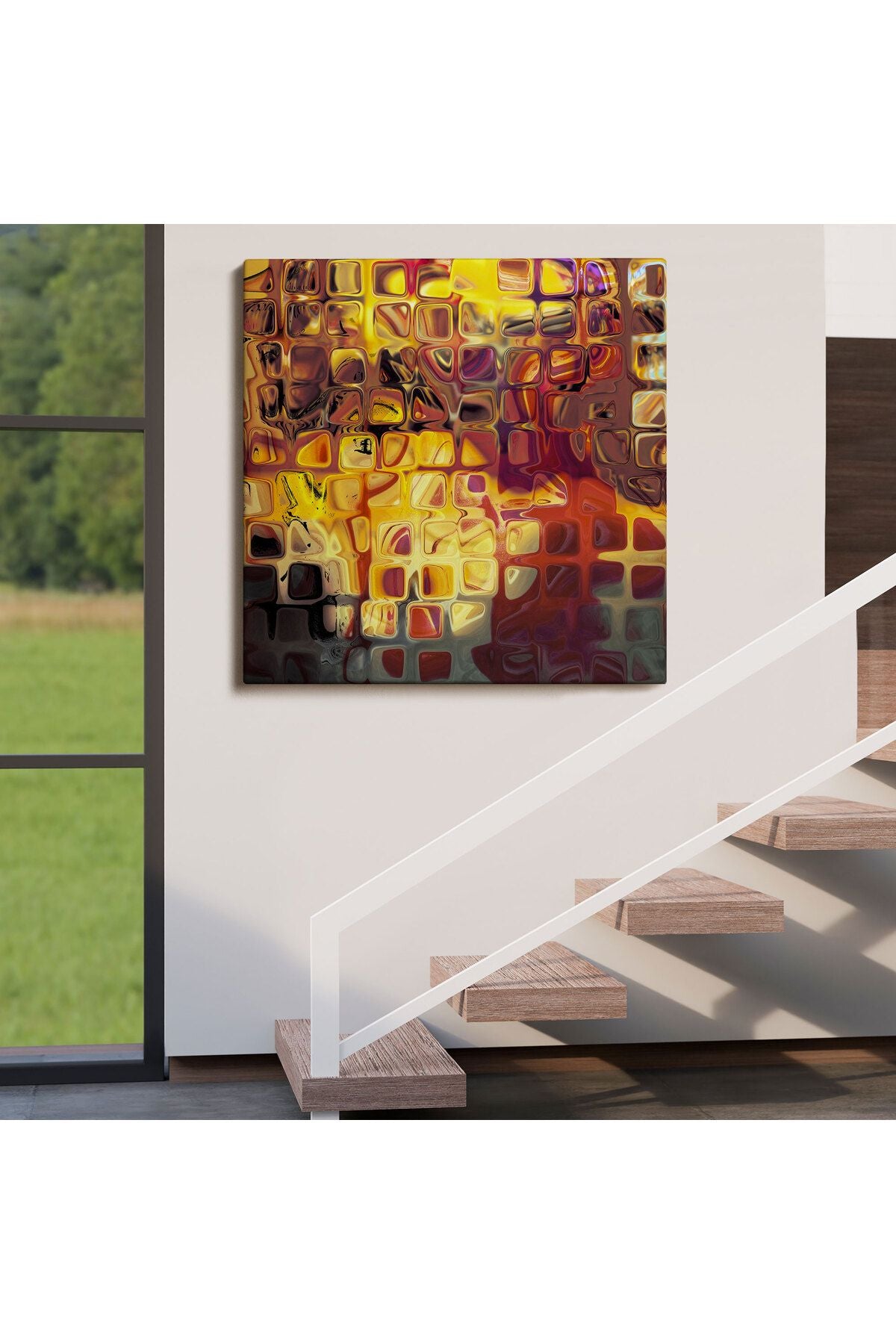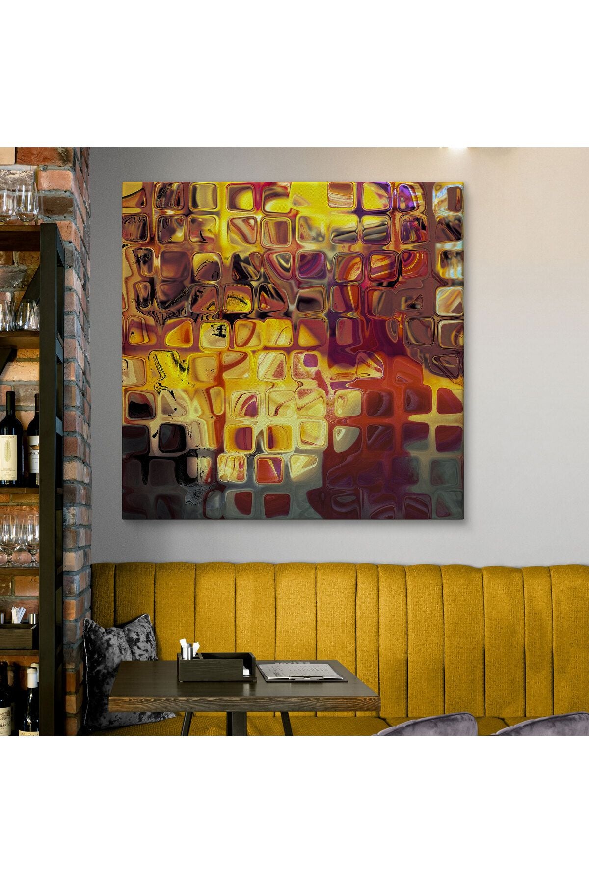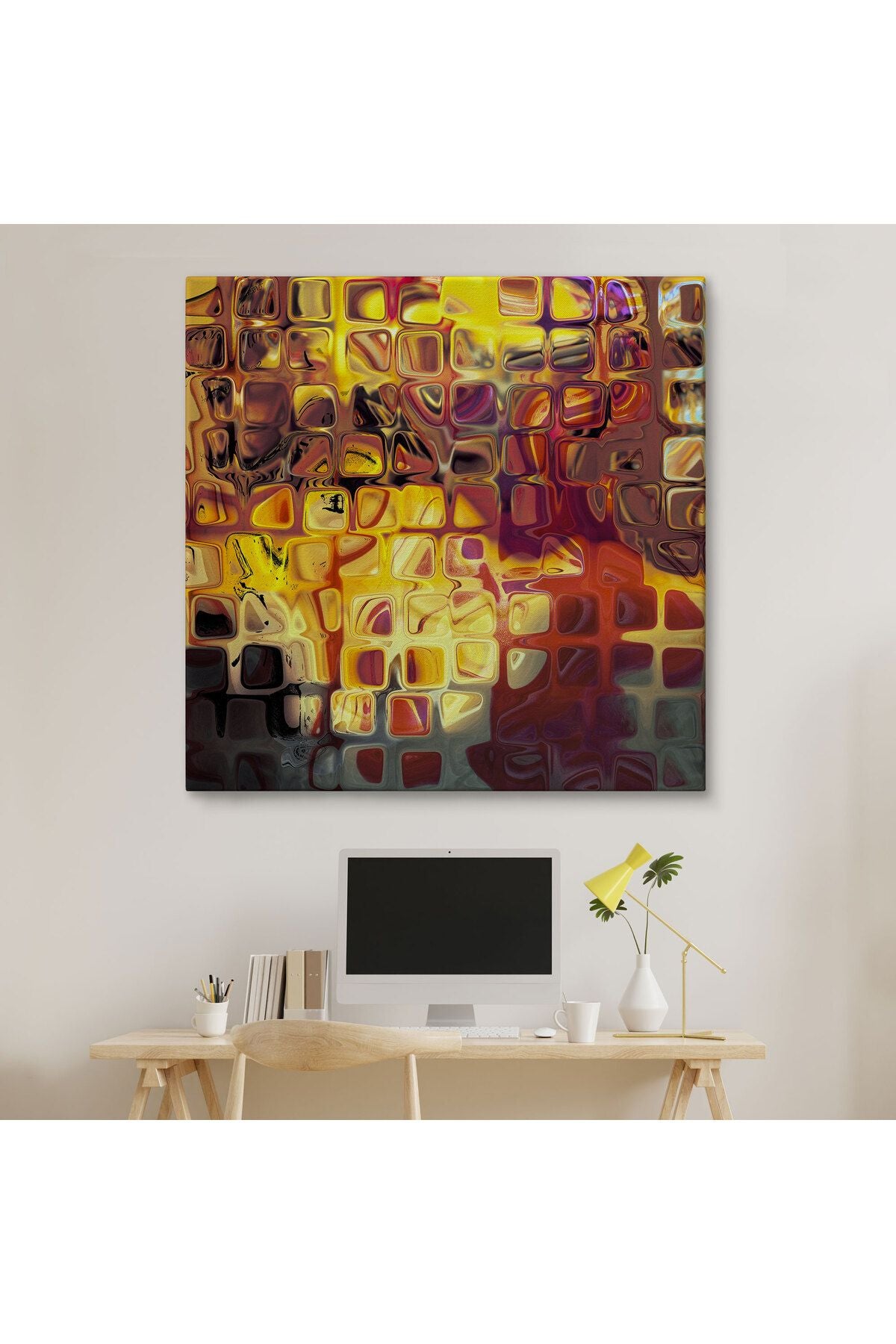 Sarı Buz Cam Kanvas Tablo-5884