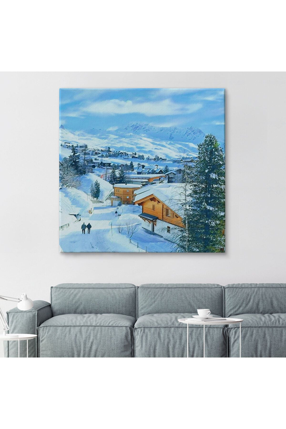 Karlı Dağ Köyü Kanvas Tablo-5912