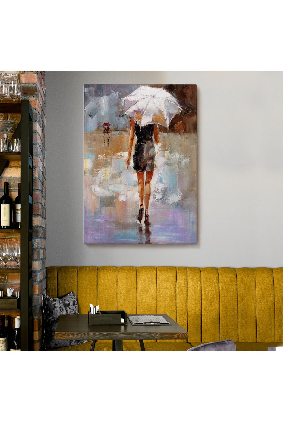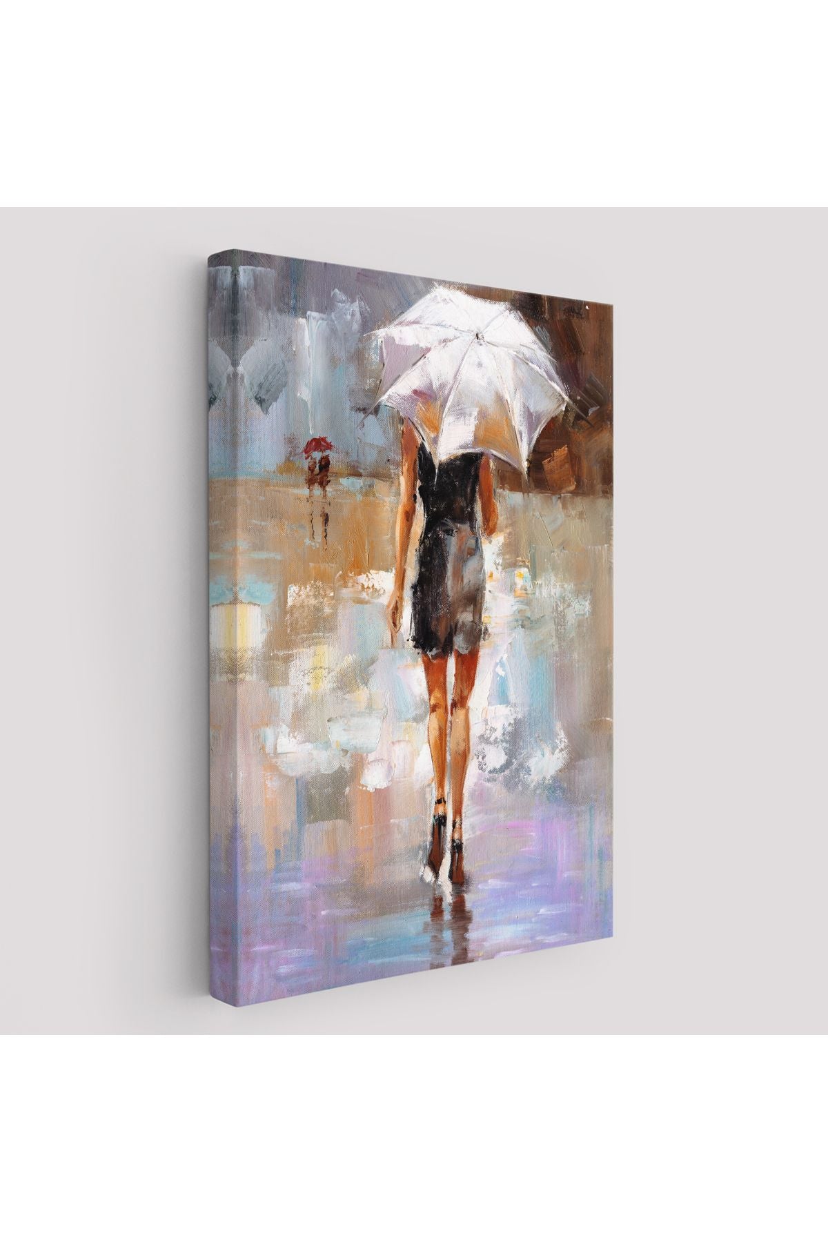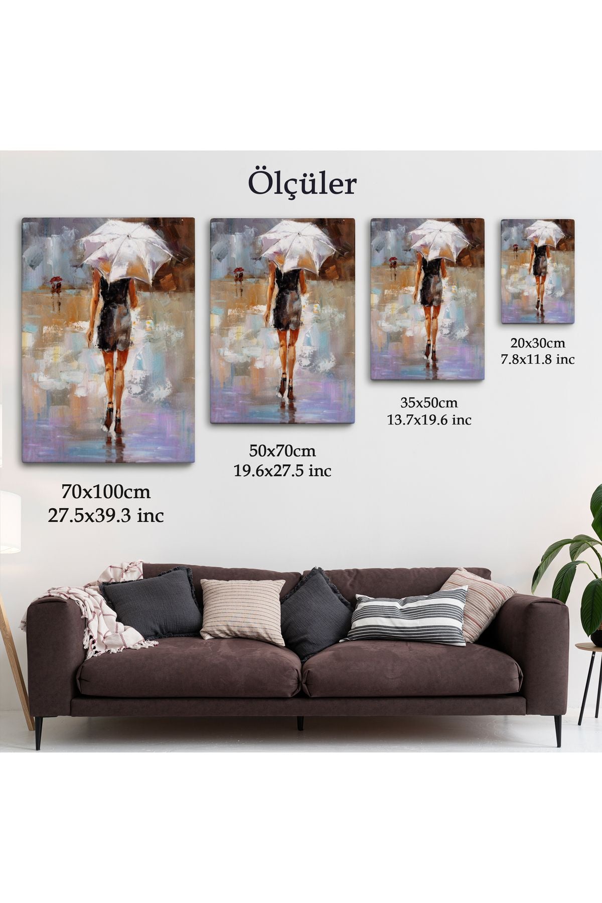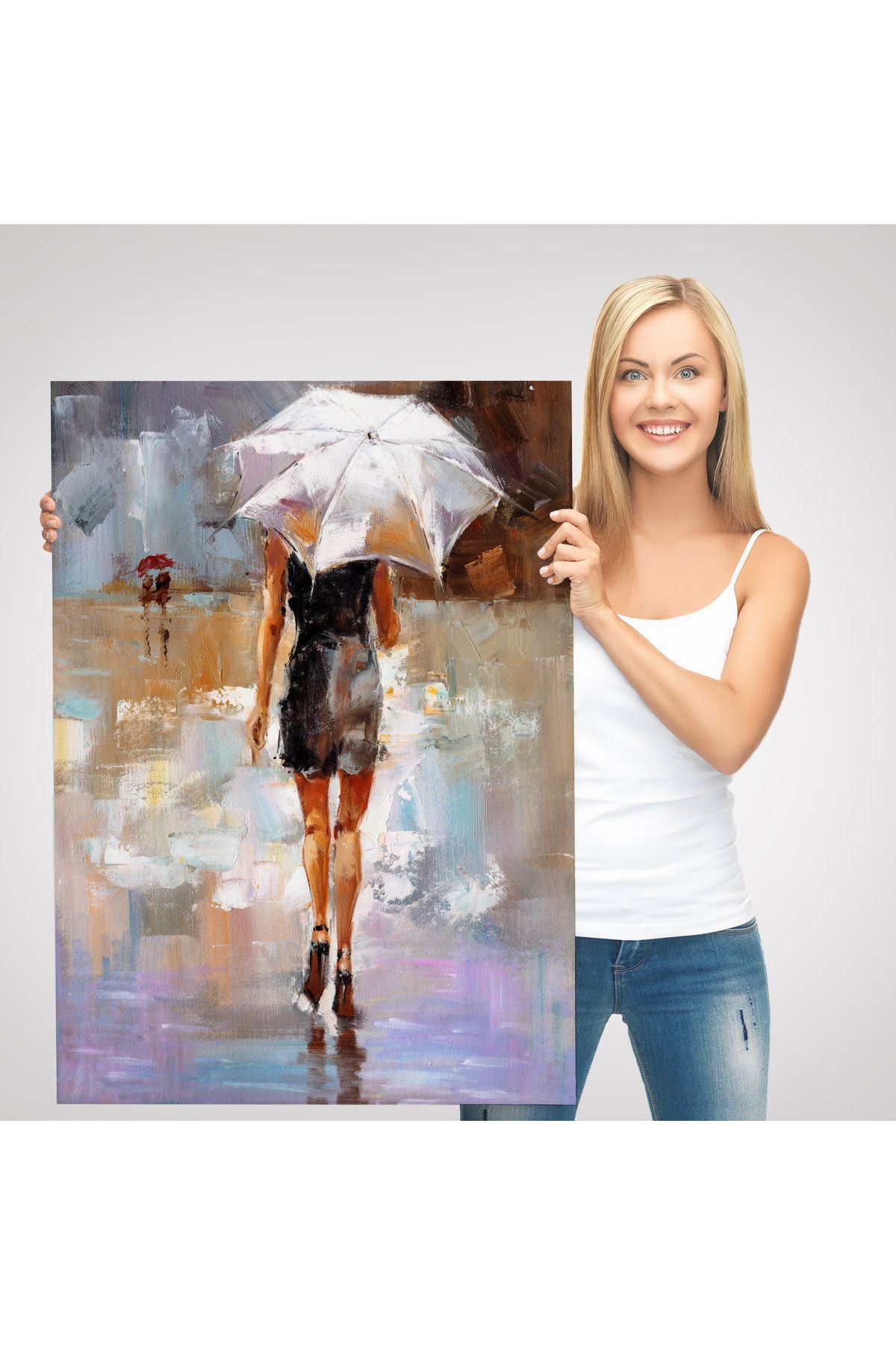 DB Yağmurda Yürüyen Kadın Yağlıboya Görünüm Dekoratif Kanvas Duvar Tablosu-5928