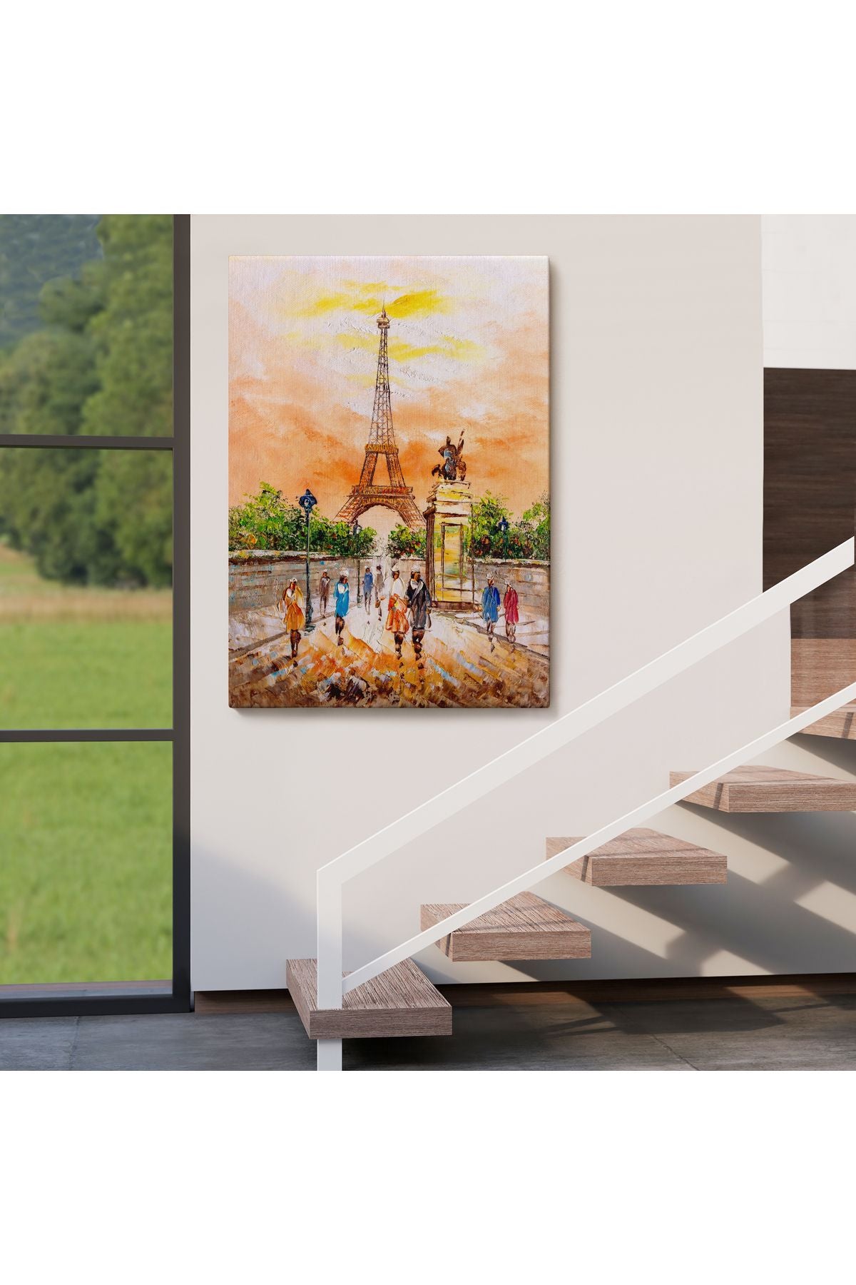 Eyfel Kulesi Manzaralı Yağlıboya Görünüm Dekoratif Kanvas Duvar Tablosu-5929