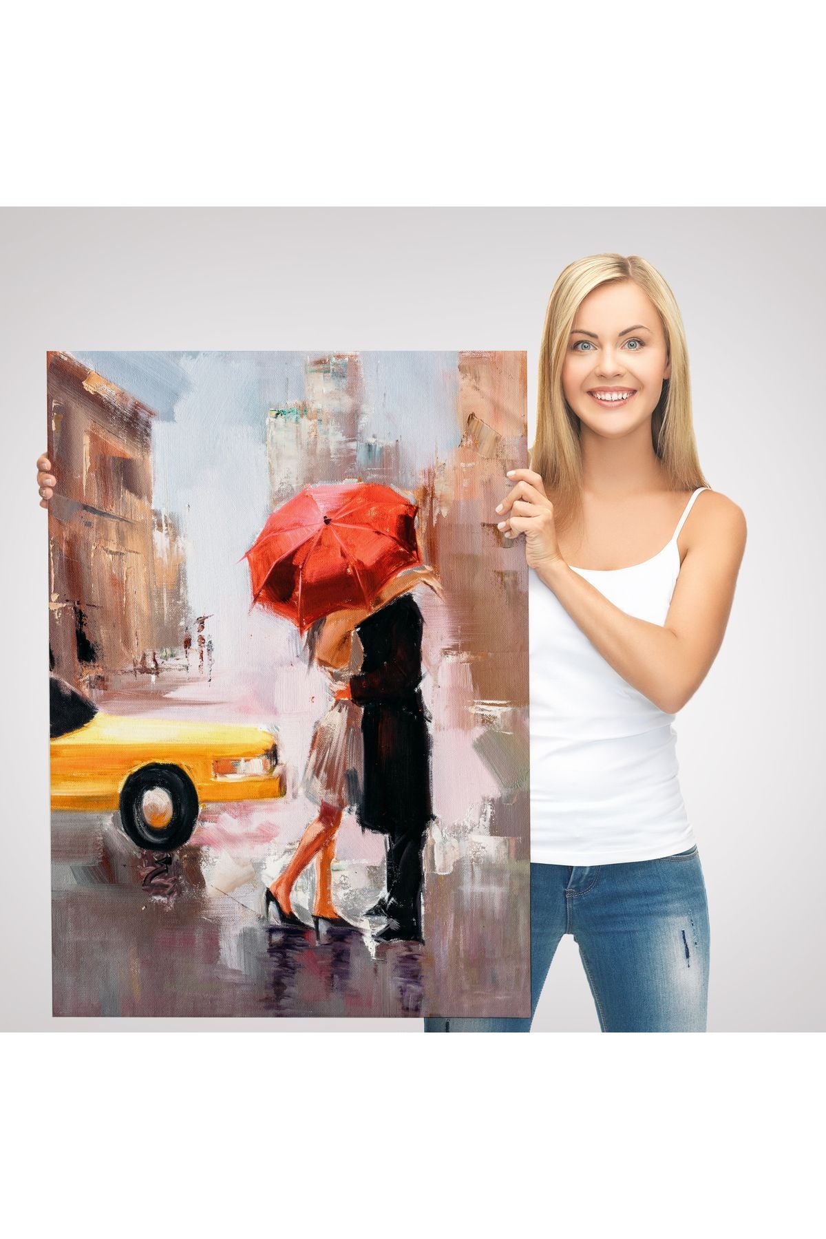 modagos068 Kavuşan Aşıklar Yağlıboya Görünüm Dekoratif Kanvas Duvar Tablosu-5930
