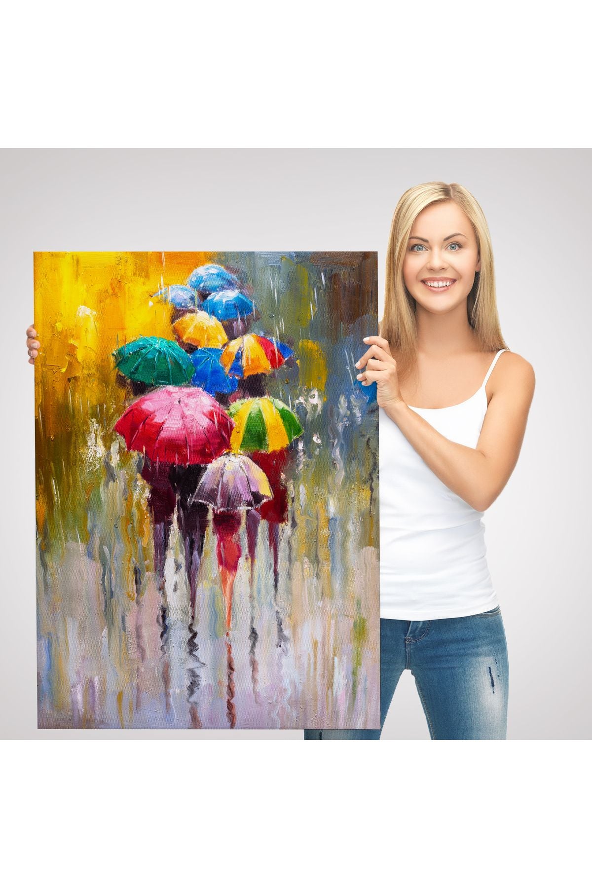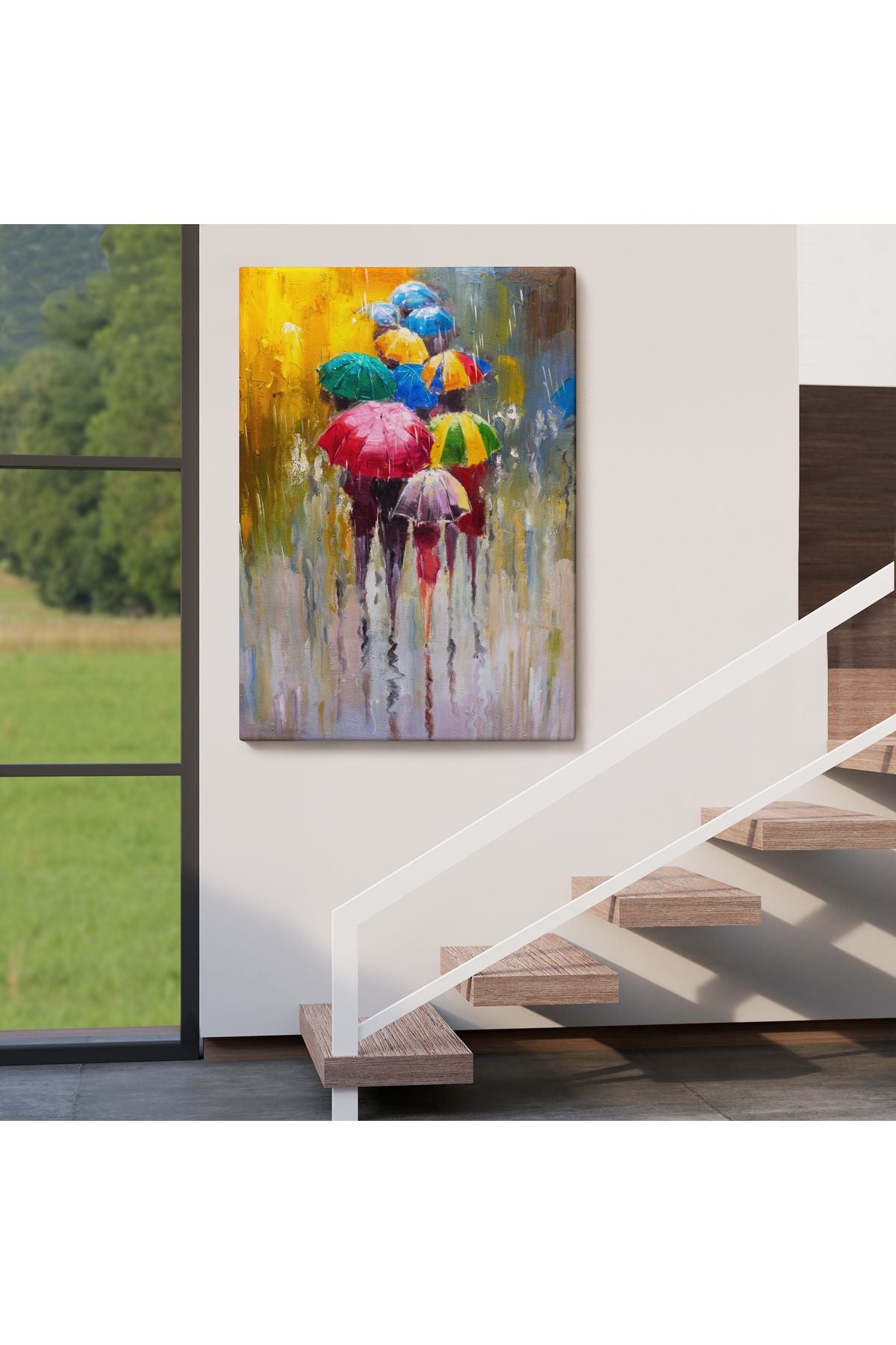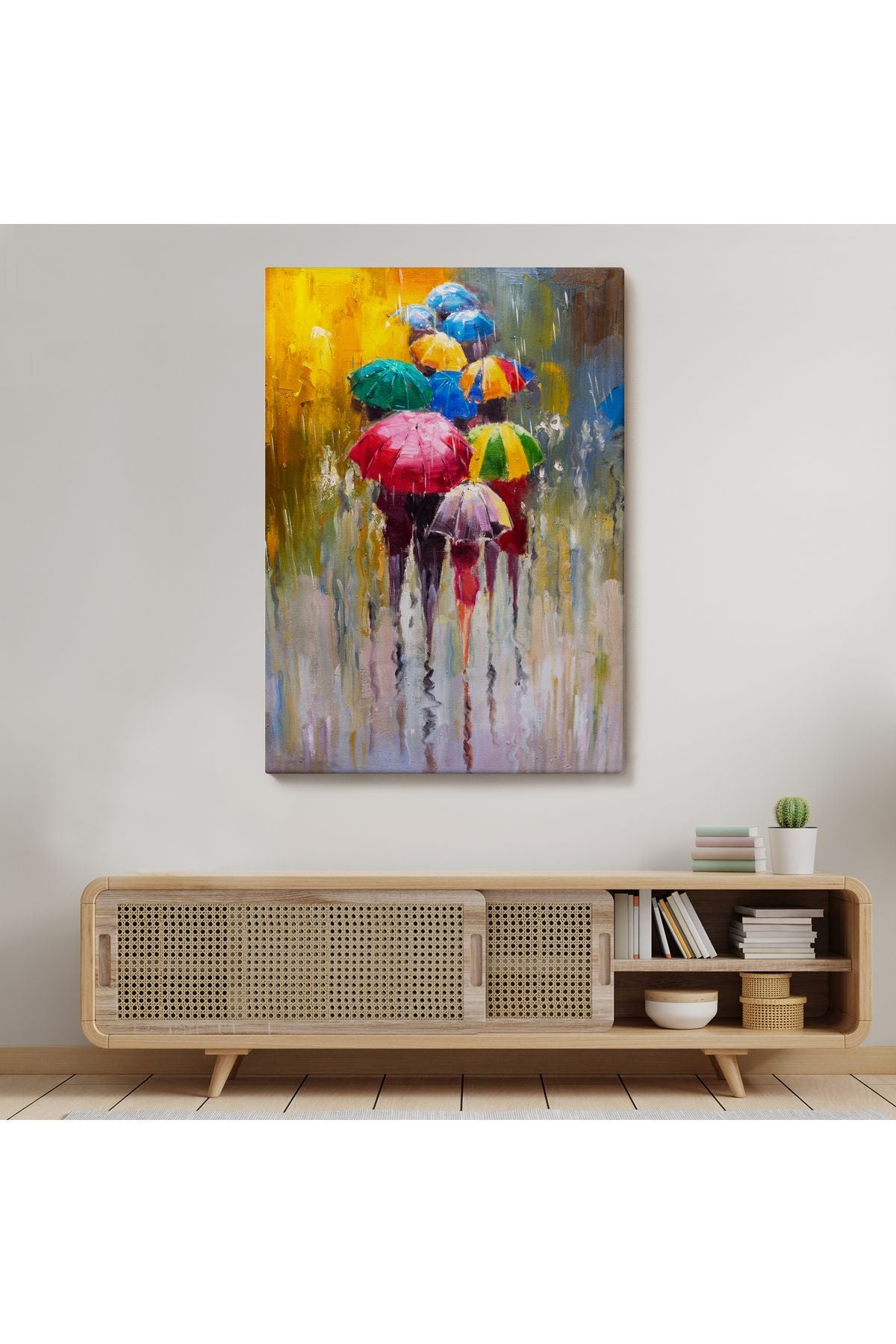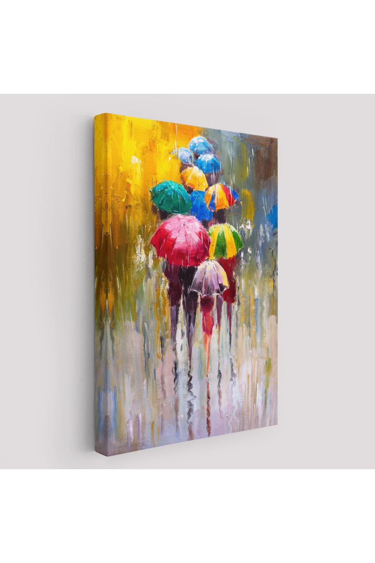Renkli Şemsiyeler Yağlıboya Görünüm Dekoratif Kanvas Duvar Tablosu -5932