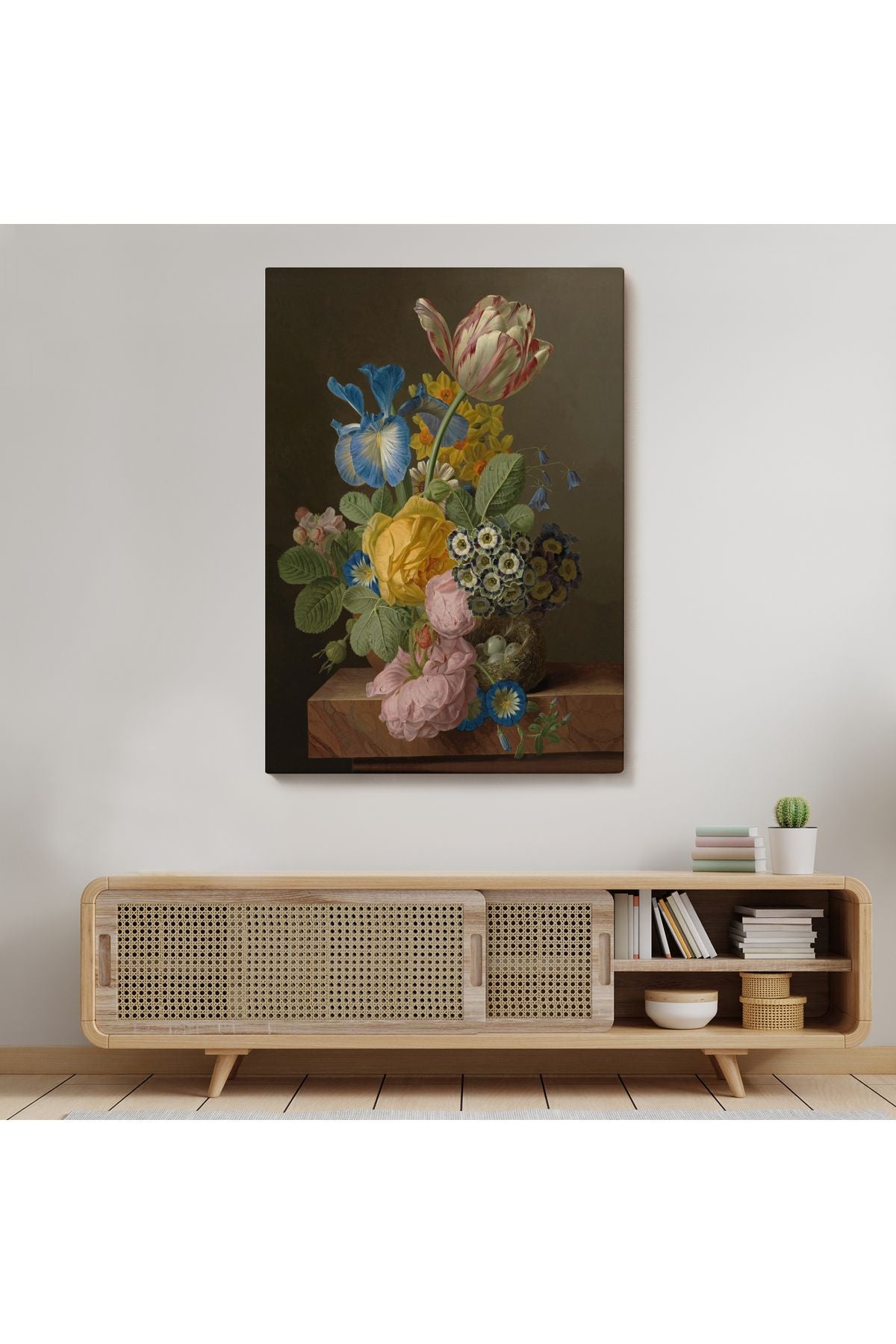 Doğal ahşap çerçeve ile gerilmiş şekilde, duvara asıma hazır şekilde gönderilir.