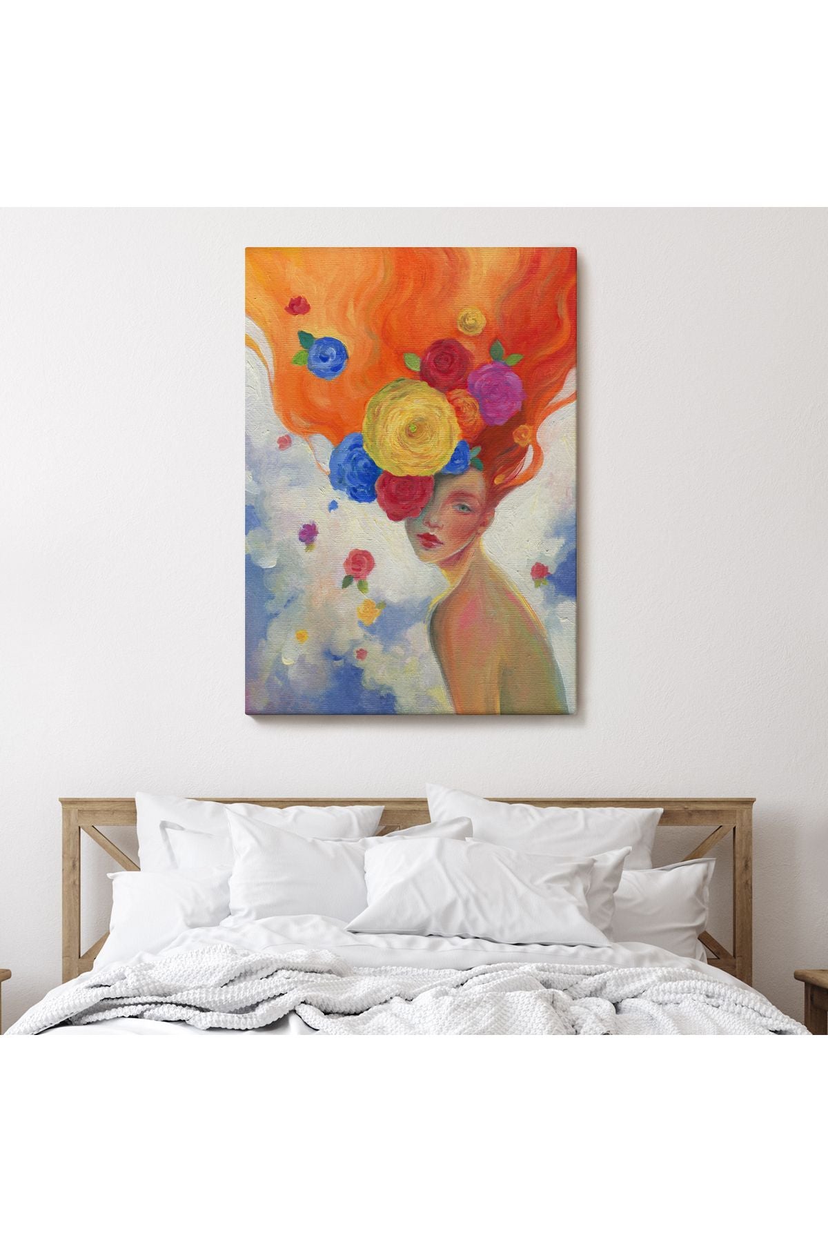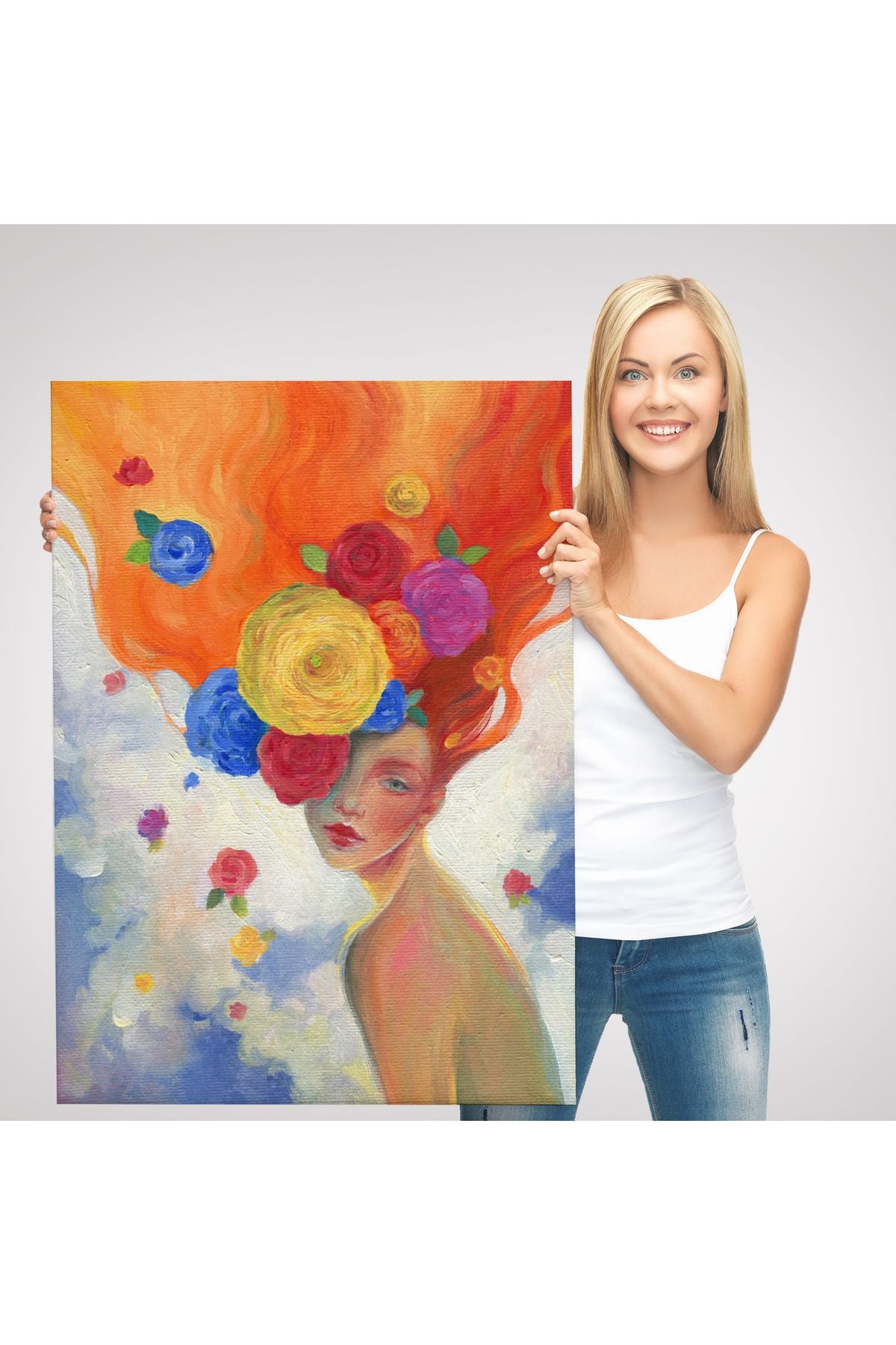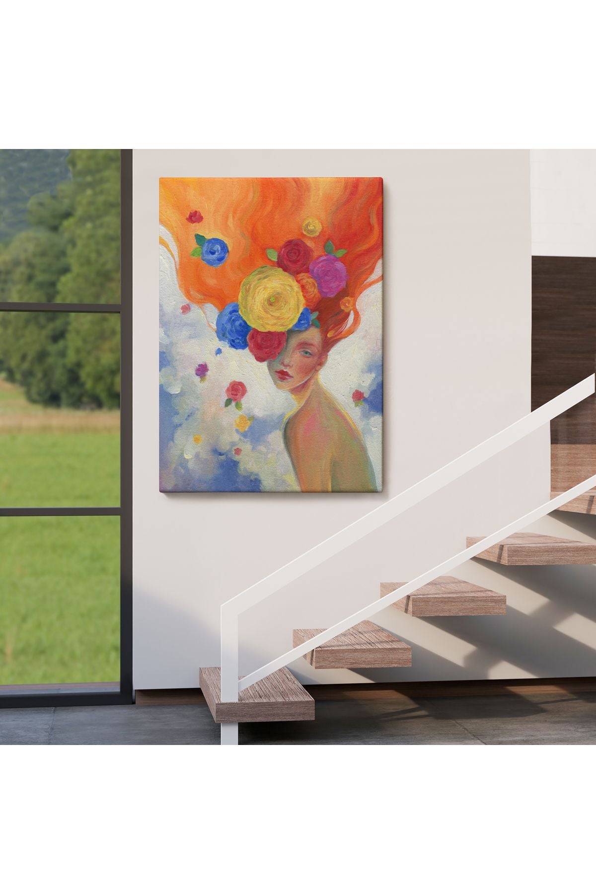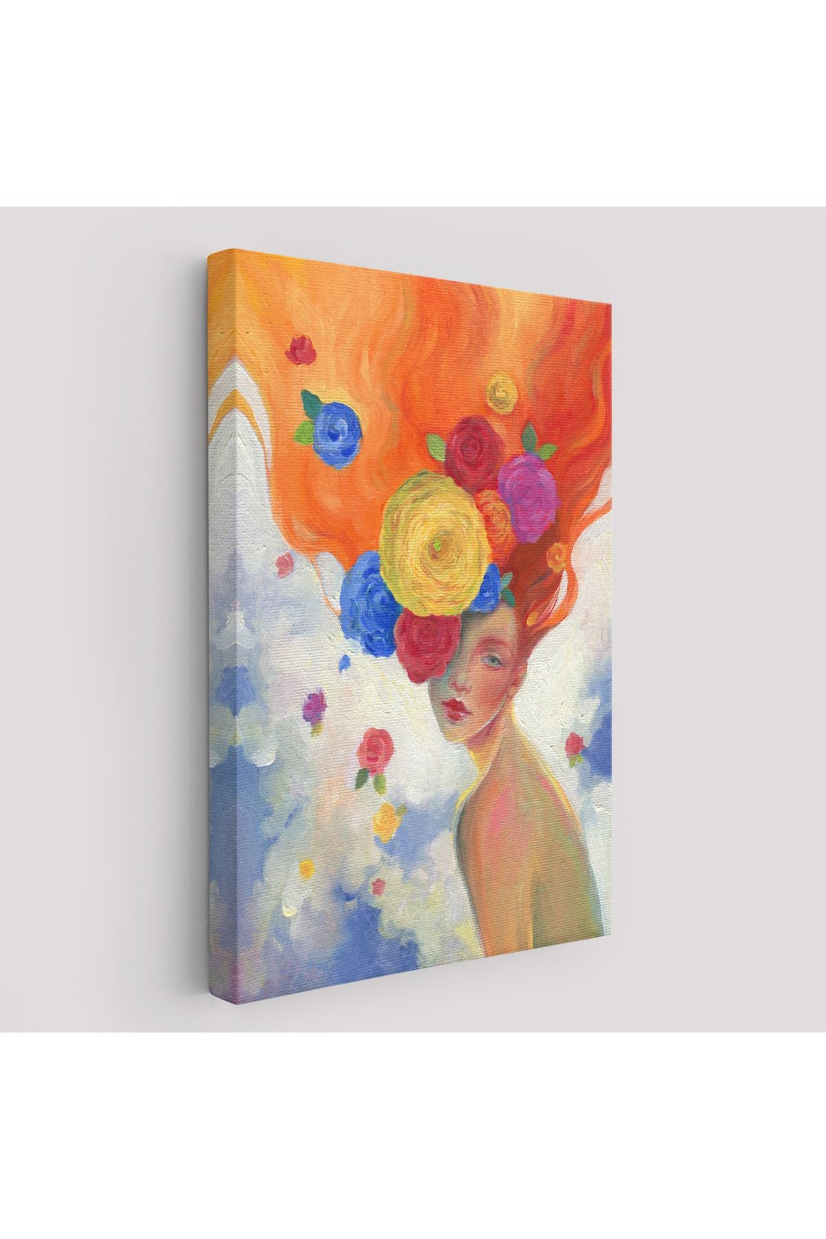 YB Çiçek Saçlı Kadın Yağlıboya Görünüm Dekoratif Kanvas Duvar Tablosu-5942
