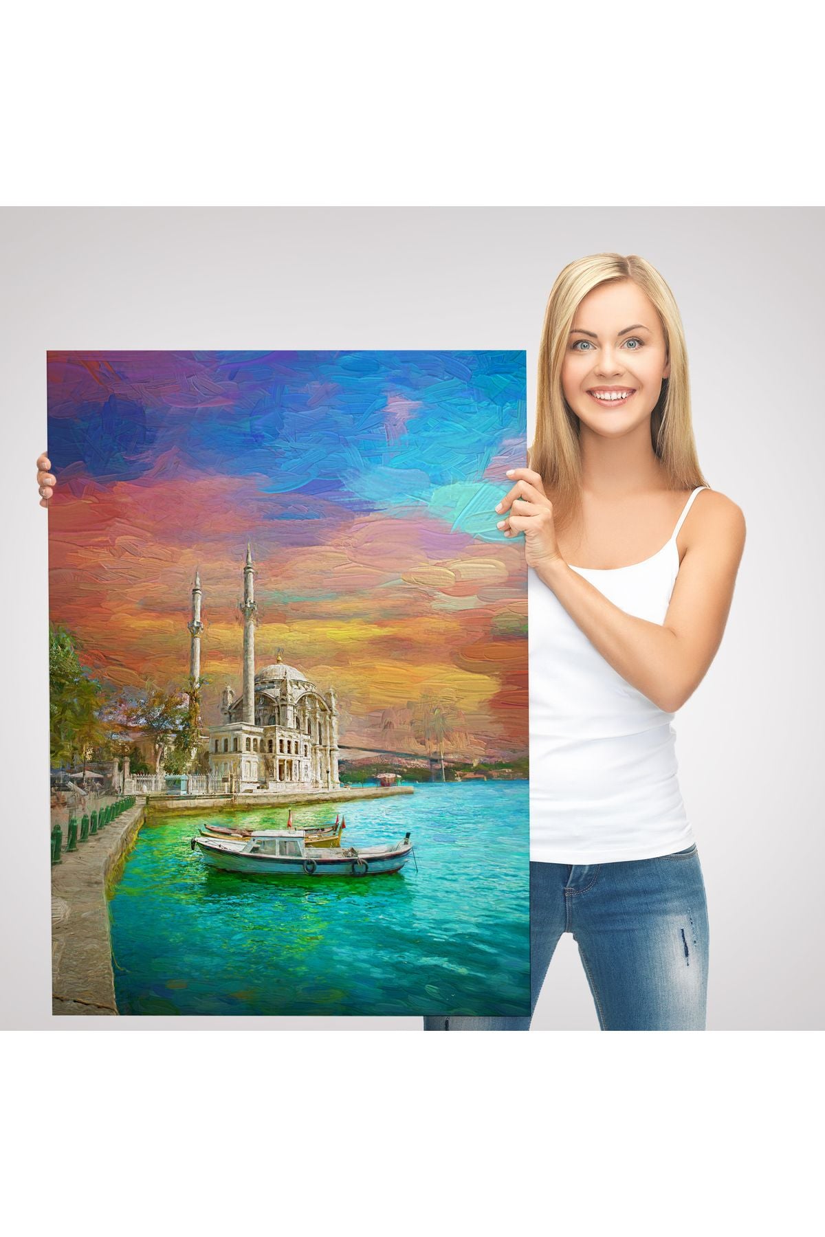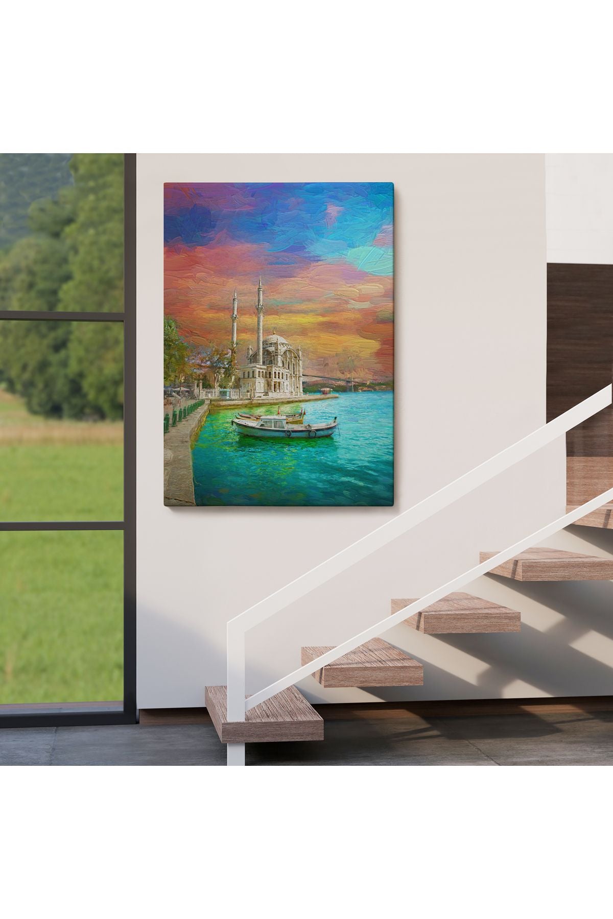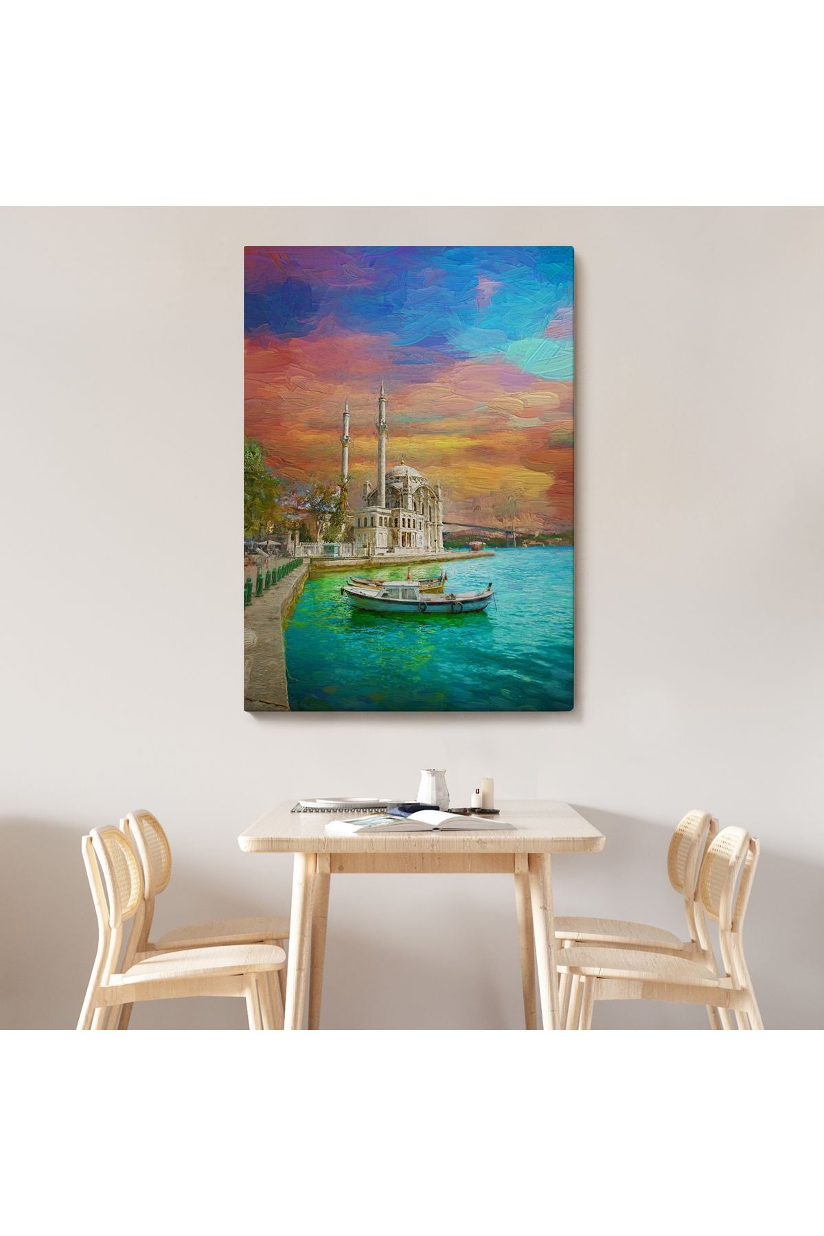 Ortaköy Cami Ve Boğaz Köprüsü Yağlıboya Görünüm Kanvas Duvar Tablosu-5946